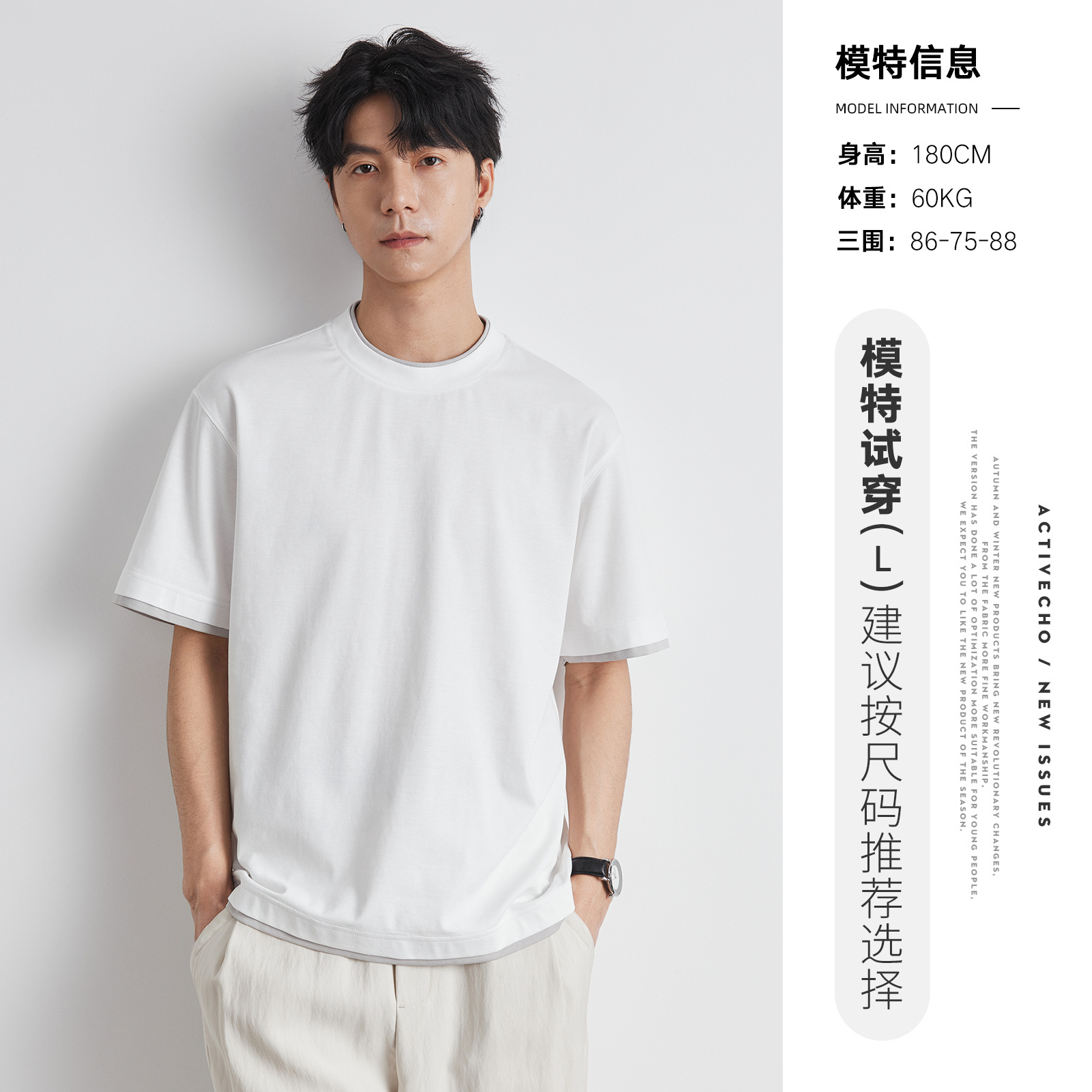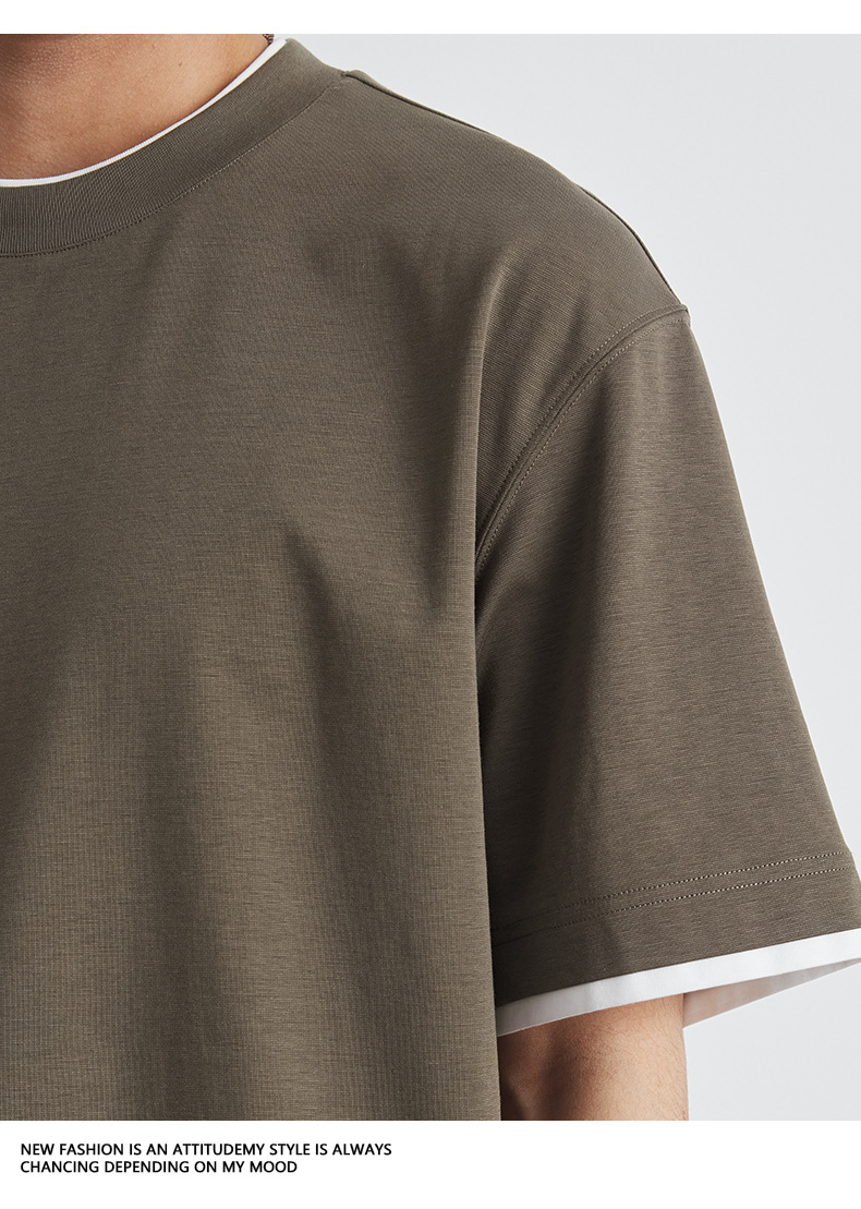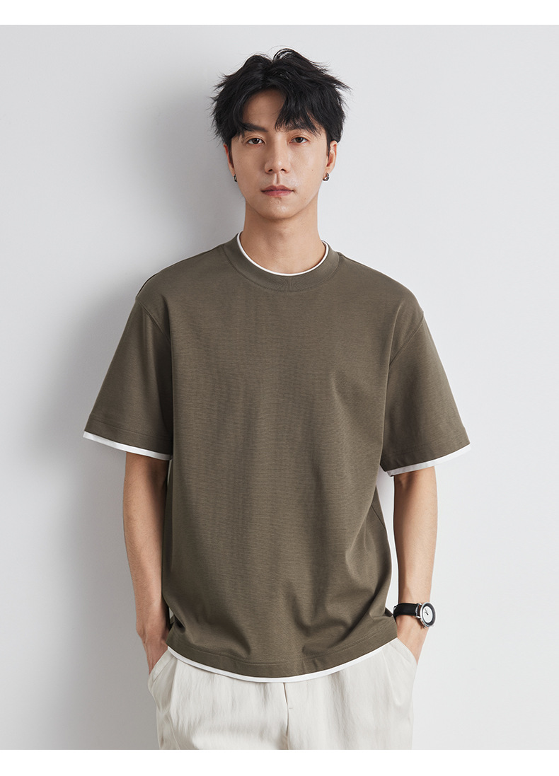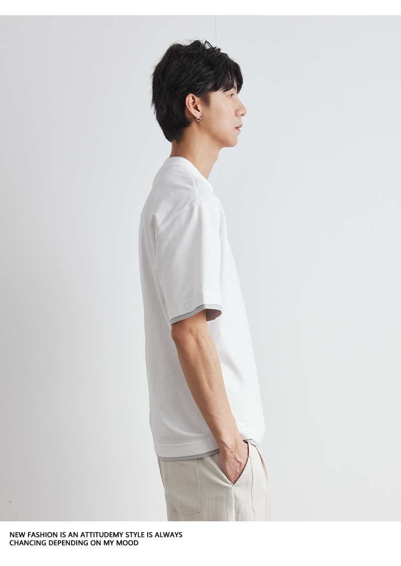 또한 남성용 가짜 투피스 반팔 티셔츠 2025 년 여름 새로운 고급 한국 패션 남성베이스 셔츠