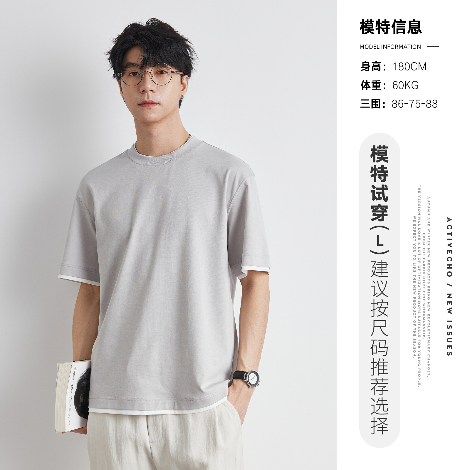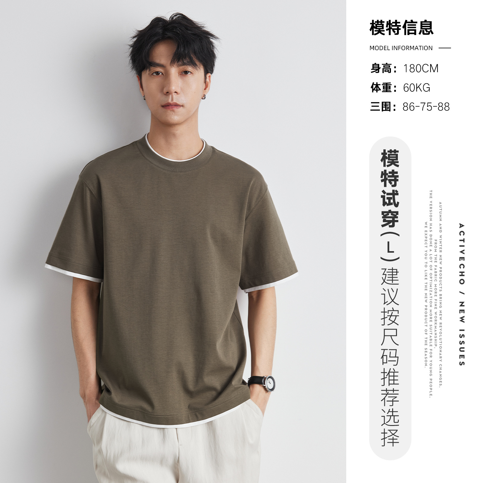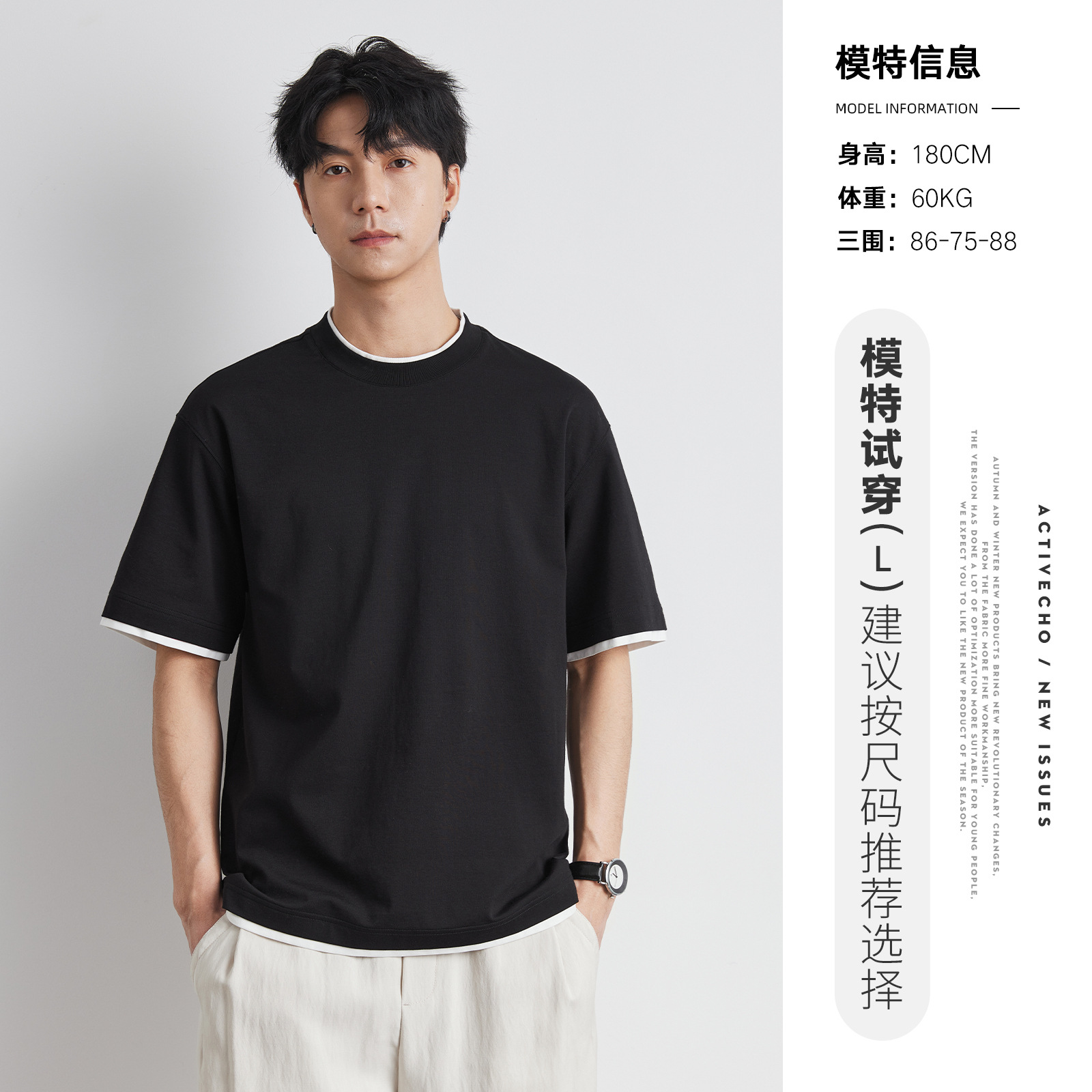 또한 남성용 가짜 투피스 반팔 티셔츠 2025 년 여름 새로운 고급 한국 패션 남성베이스 셔츠