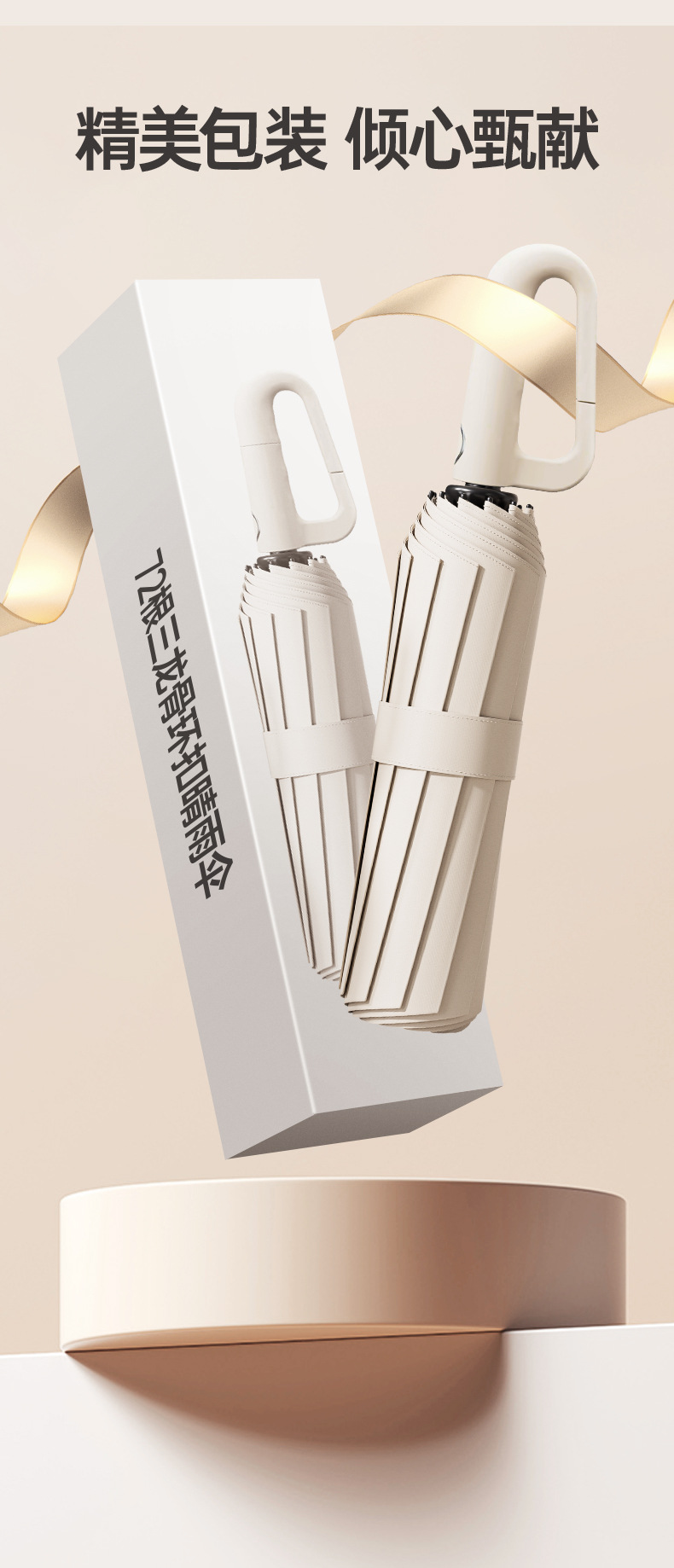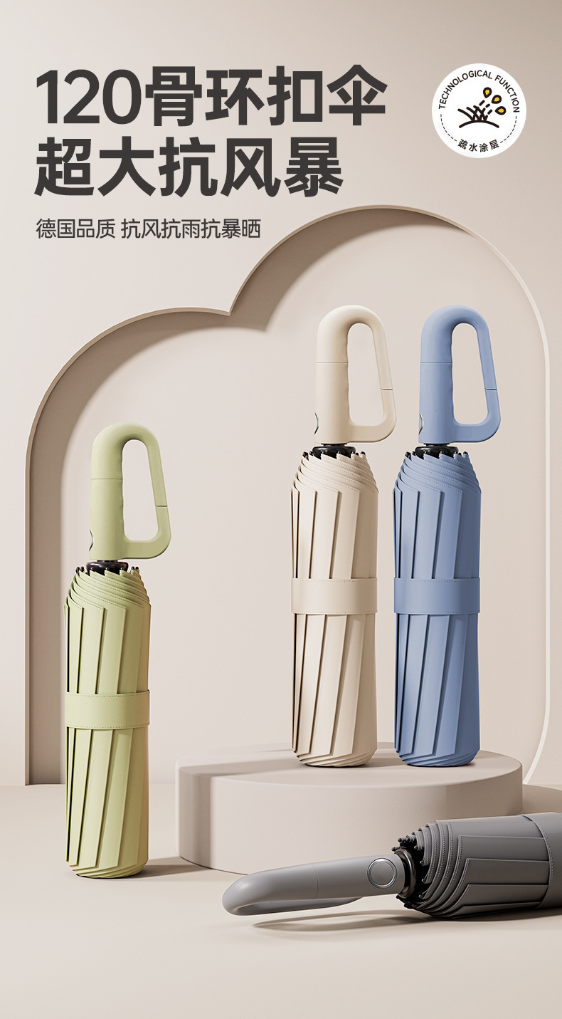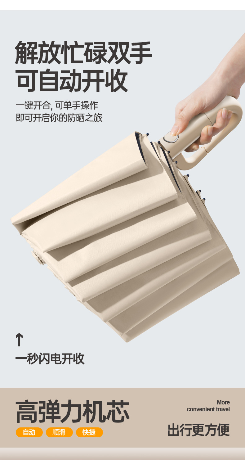 완전 자동 우산 24 뼈 대형 후크 학생 접이식 우산 햇살과 비오는 이중 목적 여성 차양 광고 우산 도매