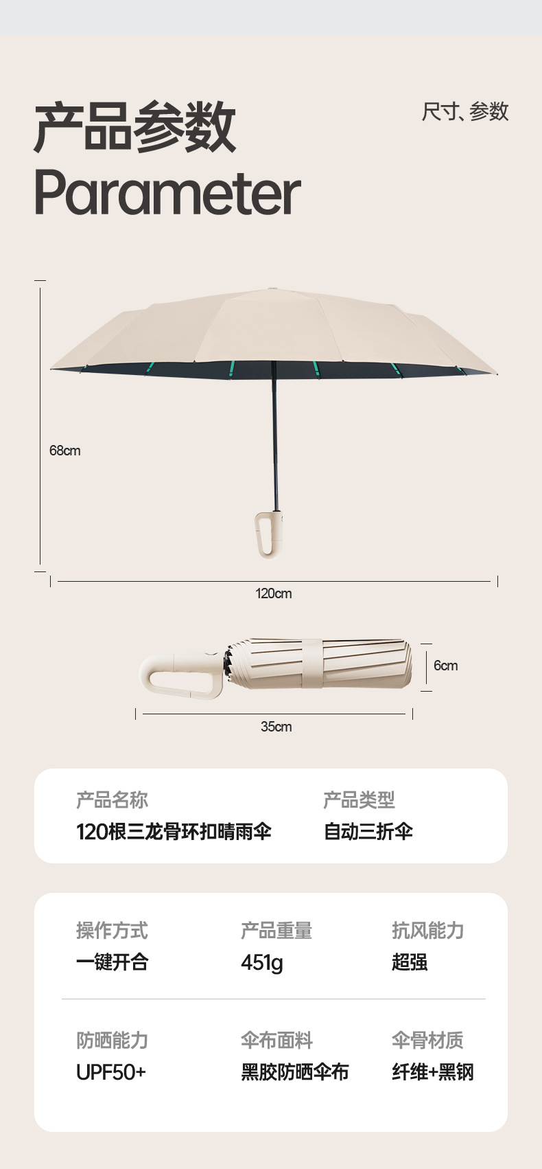 • [전자상거래 역우산] 100리브 오토매틱 [10×5×2 더블섹션 3본] 맑고 비가 오는 한여름 파우더