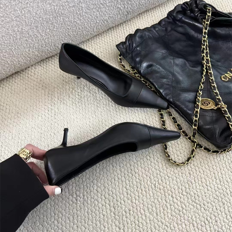 사교계 로우 힐 신발 2025 봄 새로운 올매치 우아한 뾰족한 스틸레토 힐 여성 싱글 슈즈 미드 힐 얕은 하이힐