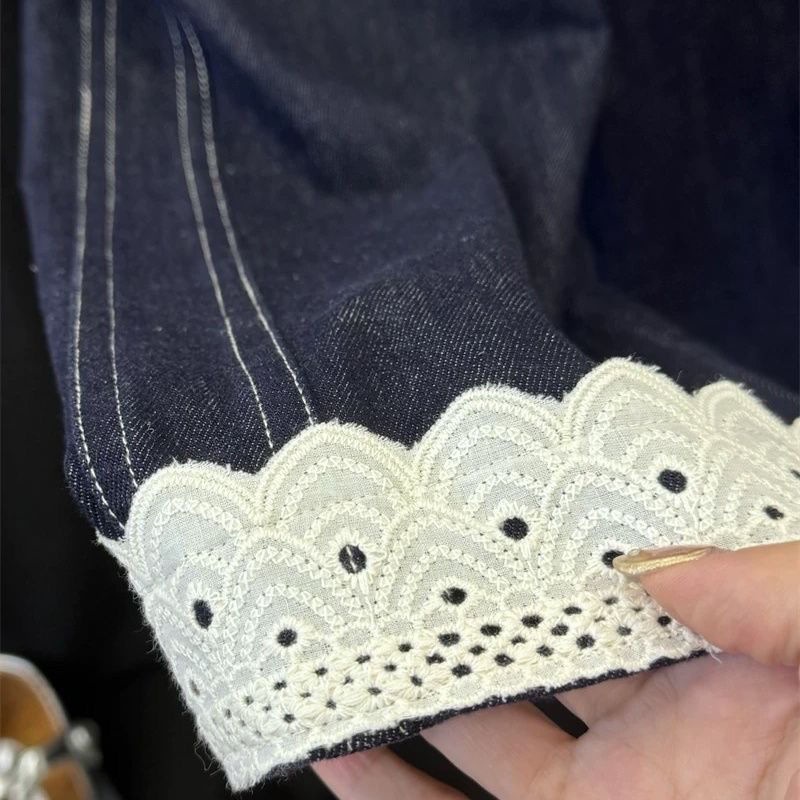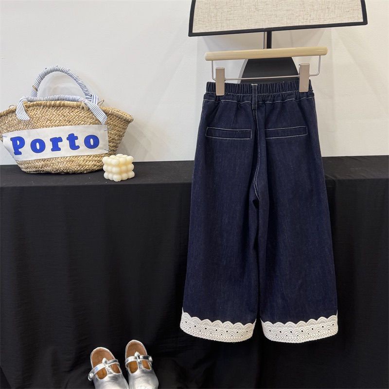 봄과 가을 여아 착용 청바지 아기의 서양식 어린이 성격 유행 온라인 인기있는 한국 스타일 레이스 레이스 유행 유행 넓은 다리 바지스토어 가기