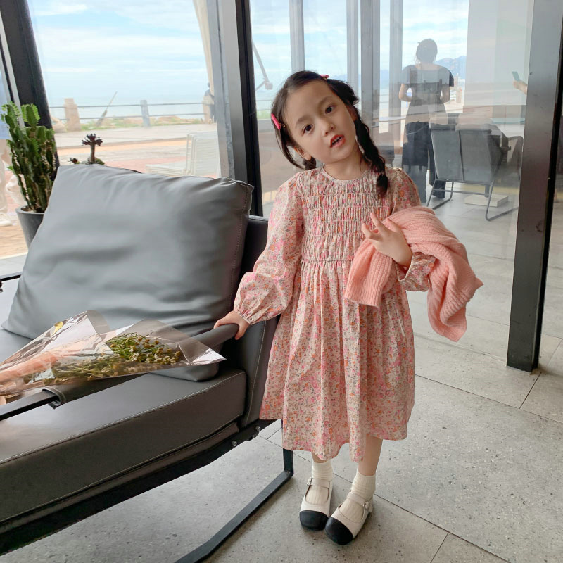 여자 스커트 꽃 주름진 달콤한 드레스 공주 스커트 24 가을 새로운 대외 무역 아동 의류 3-8 세스토어 가기