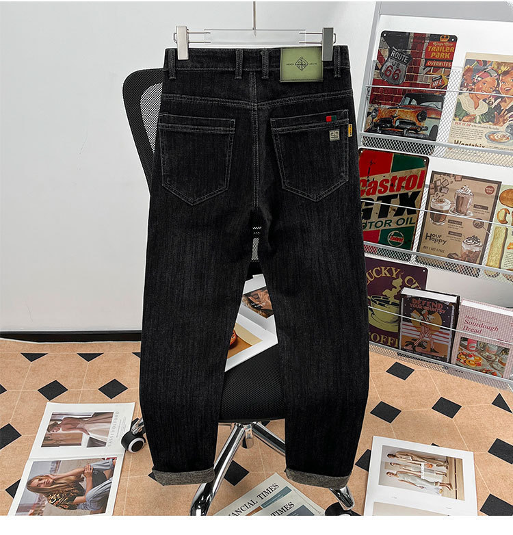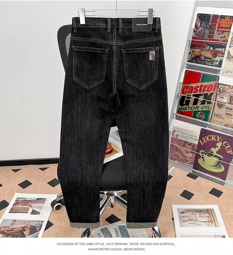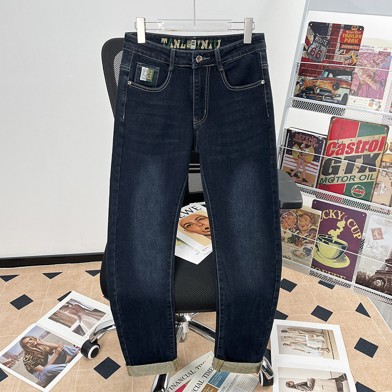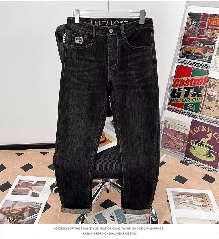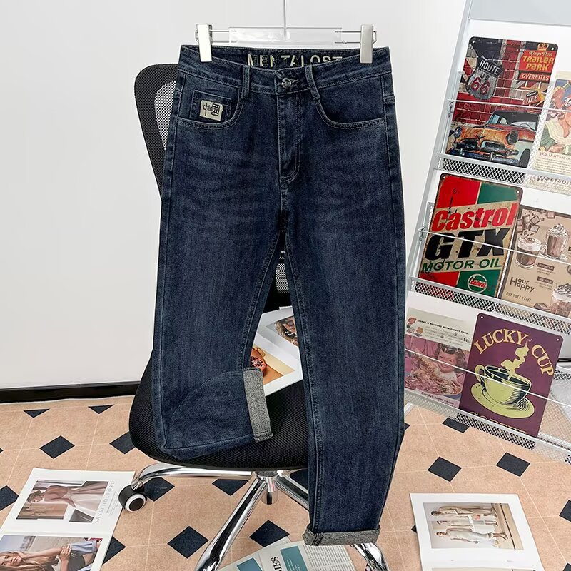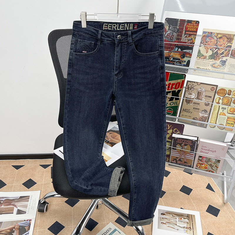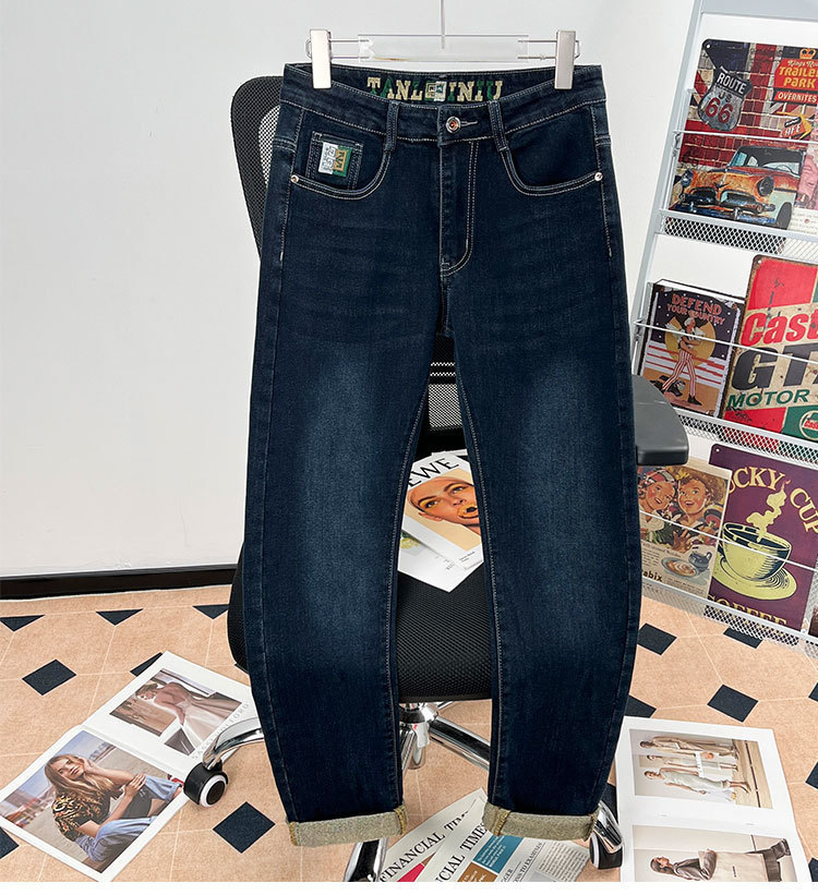 청바지 남성 봄과 가을 새로운 탄성 슬림 핏 작은 스트레이트 바지 한국 트렌디 하이 엔드 자수 캐주얼 긴 바지스토어 가기