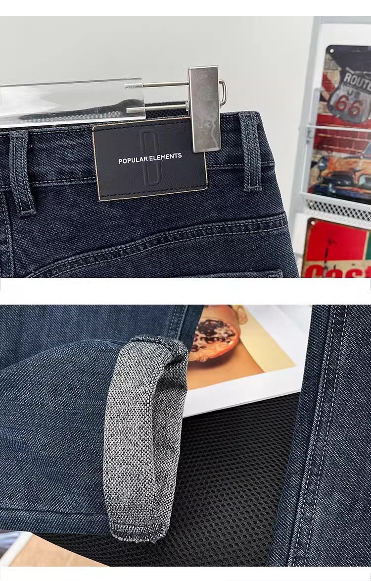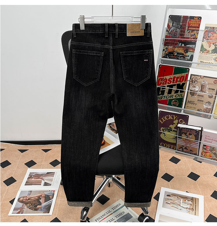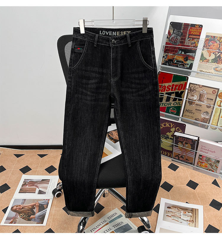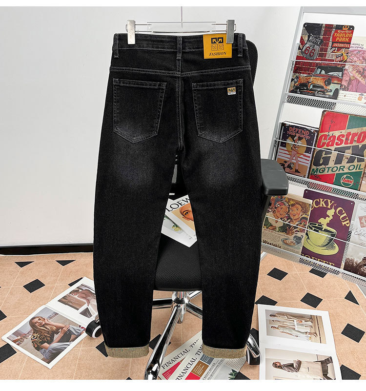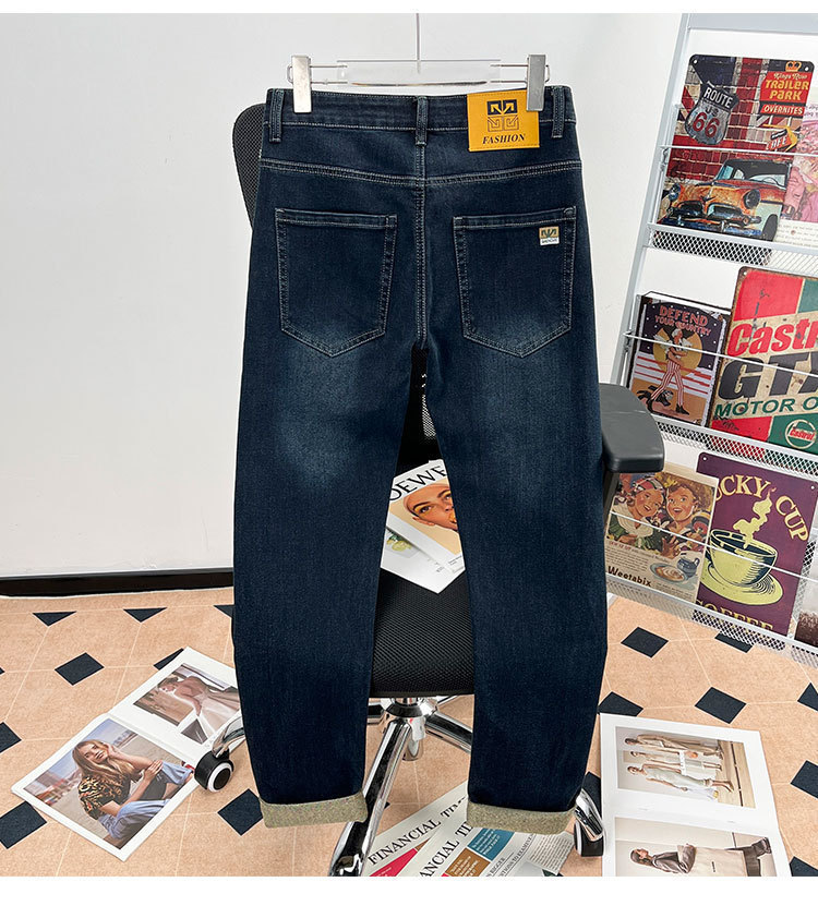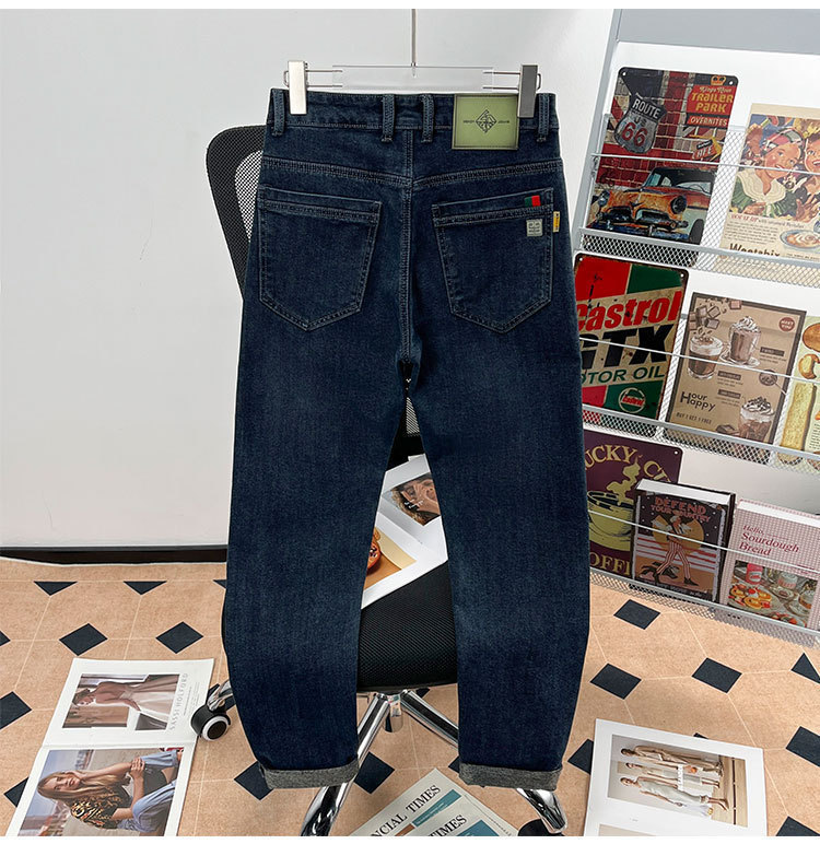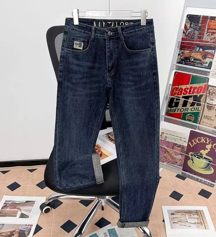 청바지 남성 봄과 가을 새로운 탄성 슬림 핏 작은 스트레이트 바지 한국 트렌디 하이 엔드 자수 캐주얼 긴 바지스토어 가기