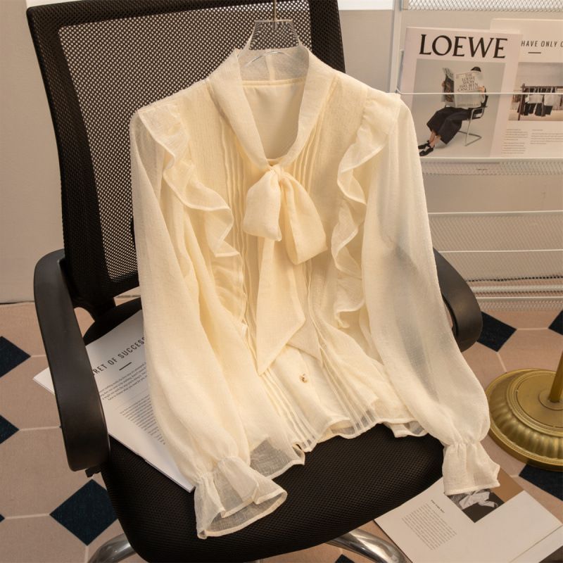 프랑스 쉬폰 셔츠 여성의 봄과 가을 2025 새로운 패션 디자인 센스 니쉬 탑 활 긴 소매 셔츠스토어 가기