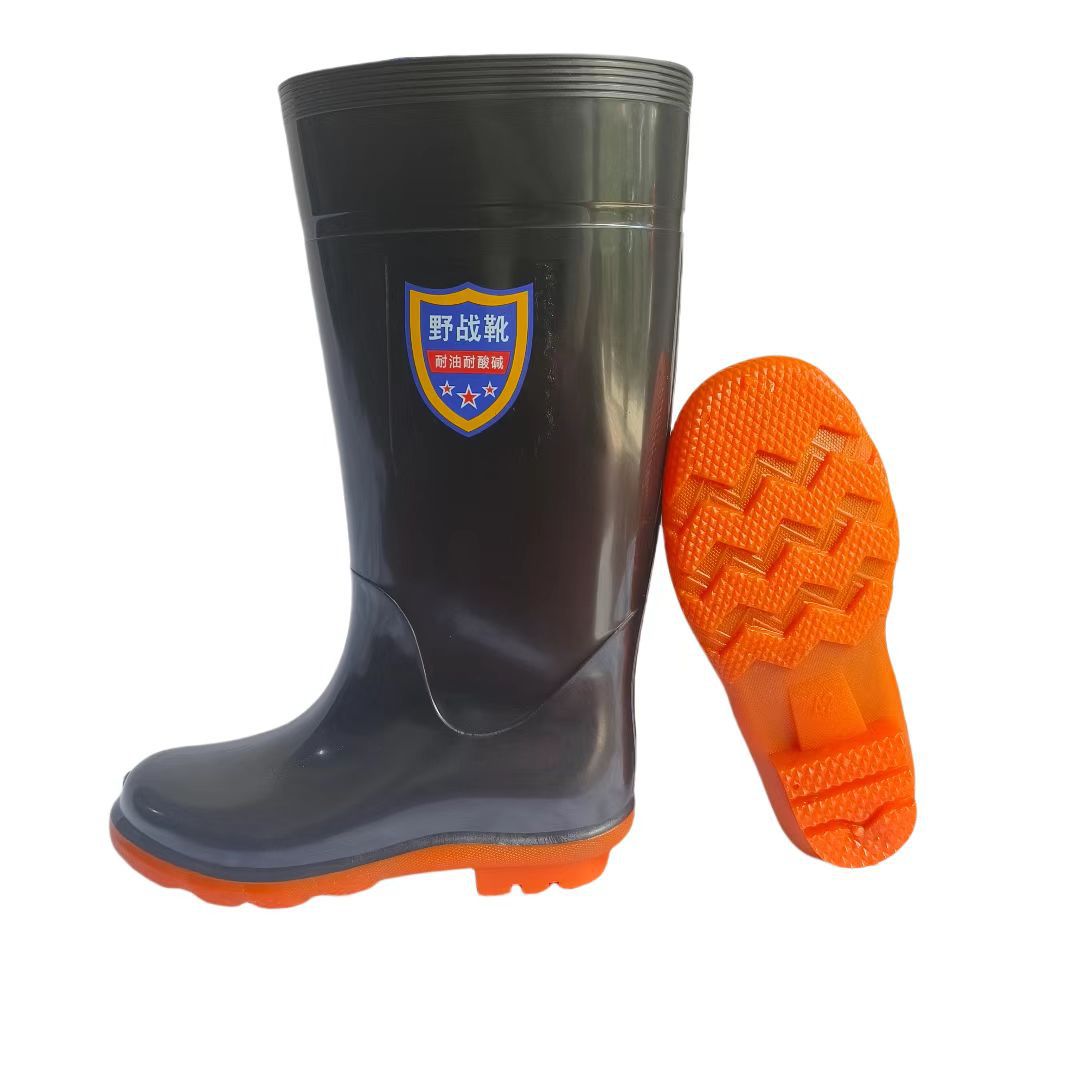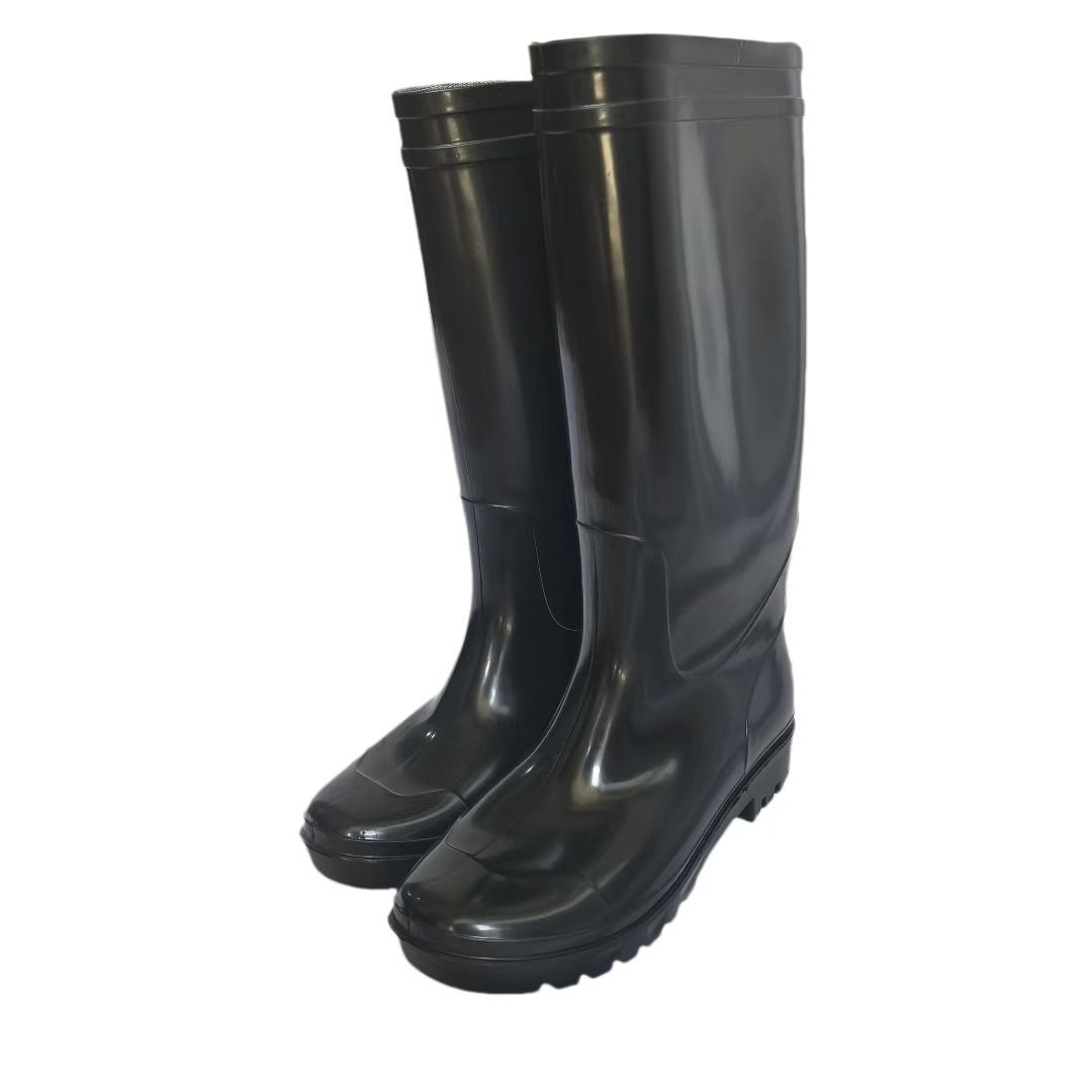 비 부츠 남성 야외 pvc 미끄럼 방지 방수 신발 검은 두꺼운 내마모성 노동 보호 주방 신발 고무 신발 제조 업체 도매스토어 가기