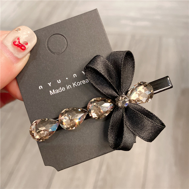 한국 이스트 게이트 헤드웨어 블랙 리본 활 덕 빌 클립 새로운 올 매치 라인스톤 뱅 클립 클립 사이드 클립 헤어핀