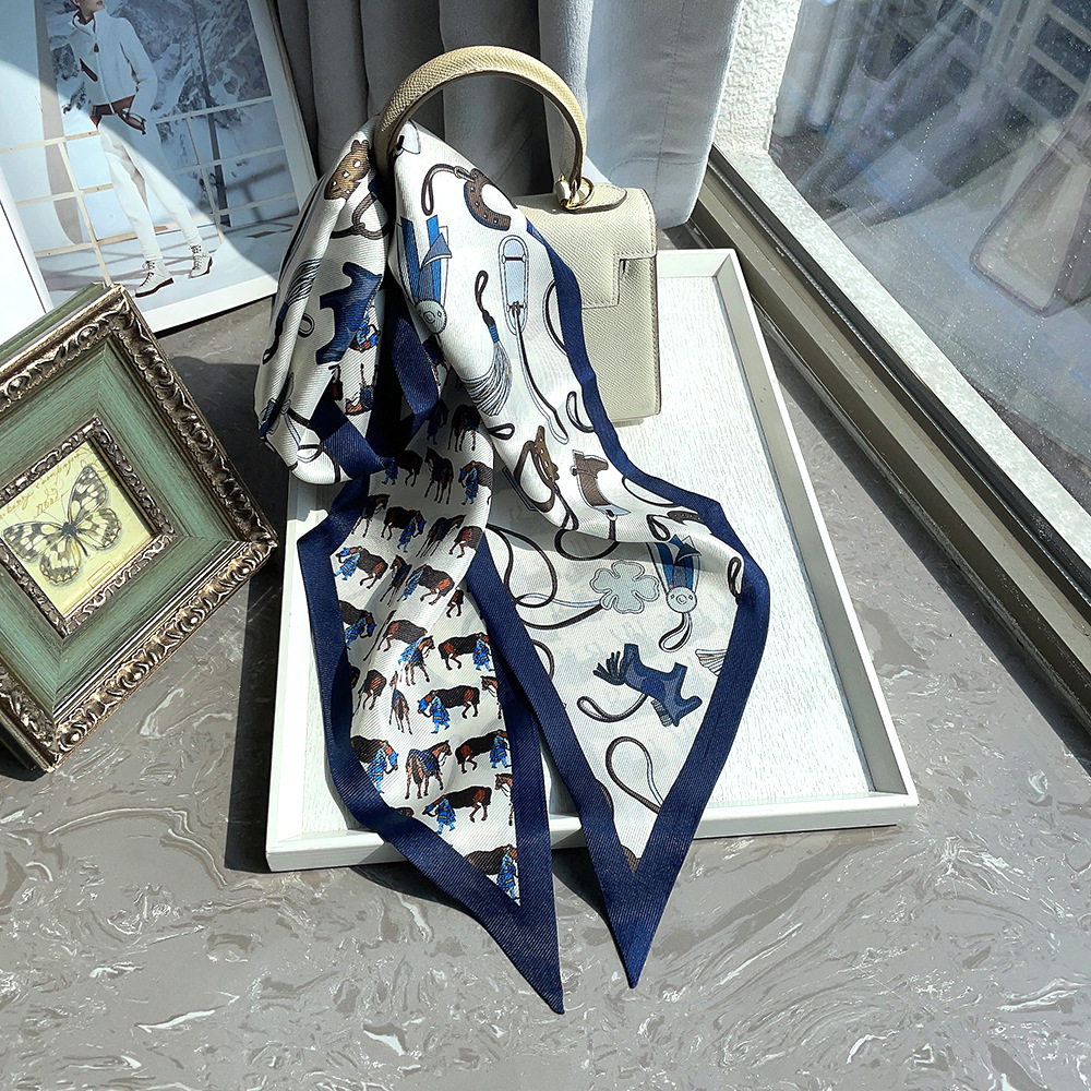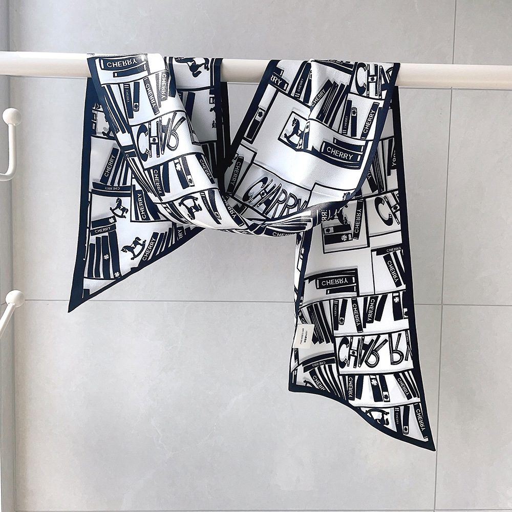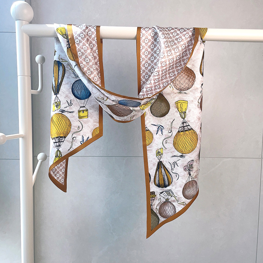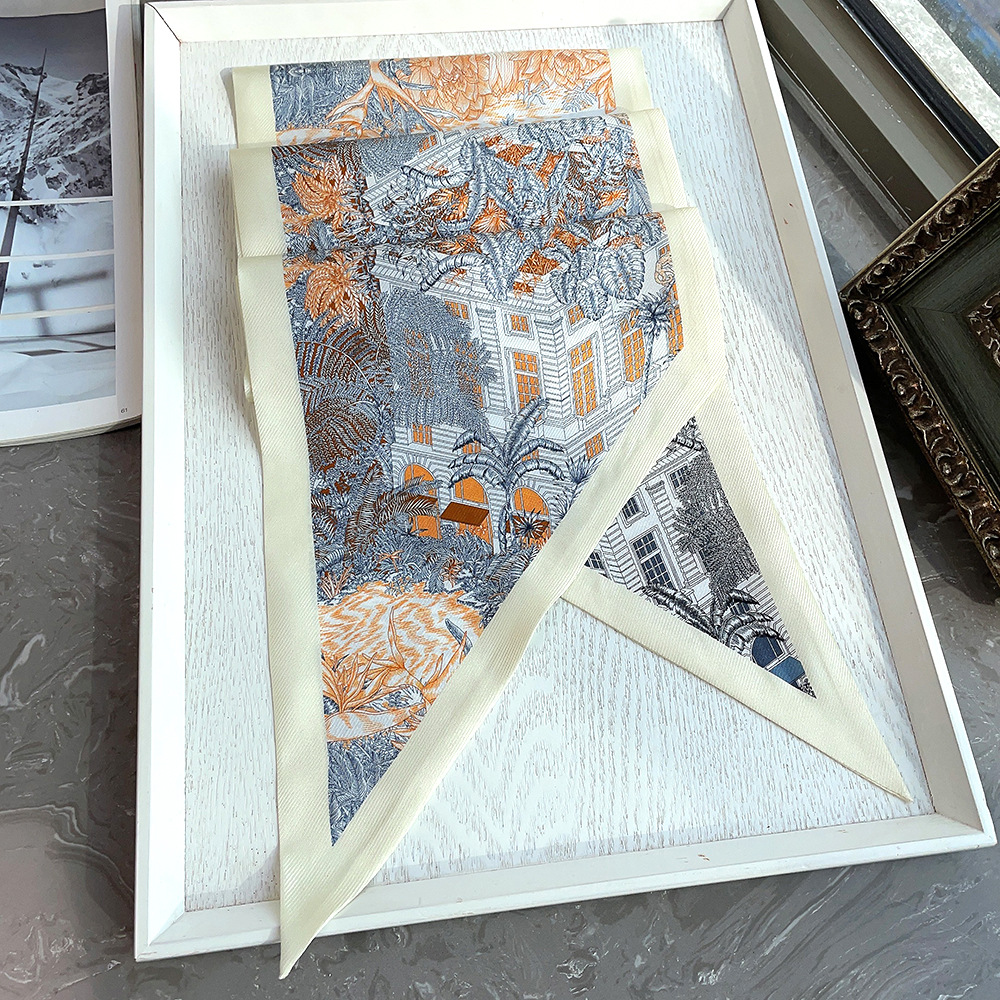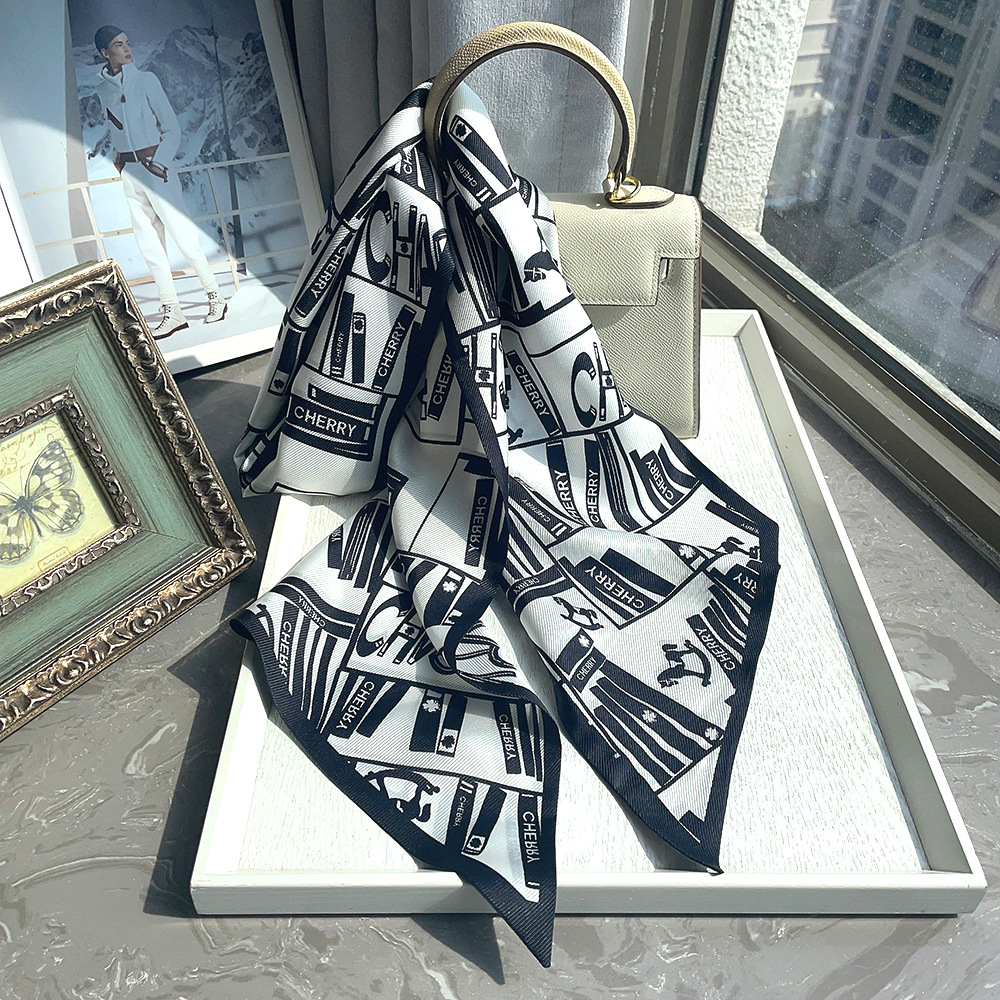 스프링 실크 트윌 롱 스트립 플로팅 대역폭 플래티넘 푸바오 베이지 스카프 다목적 멀 베리 실크 넥 사진 스카프스토어 가기
