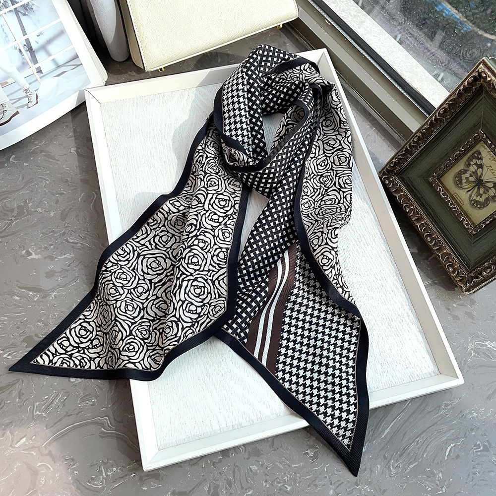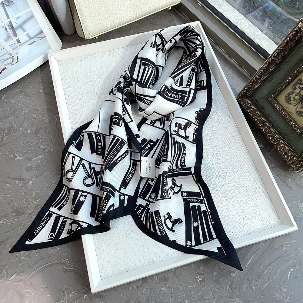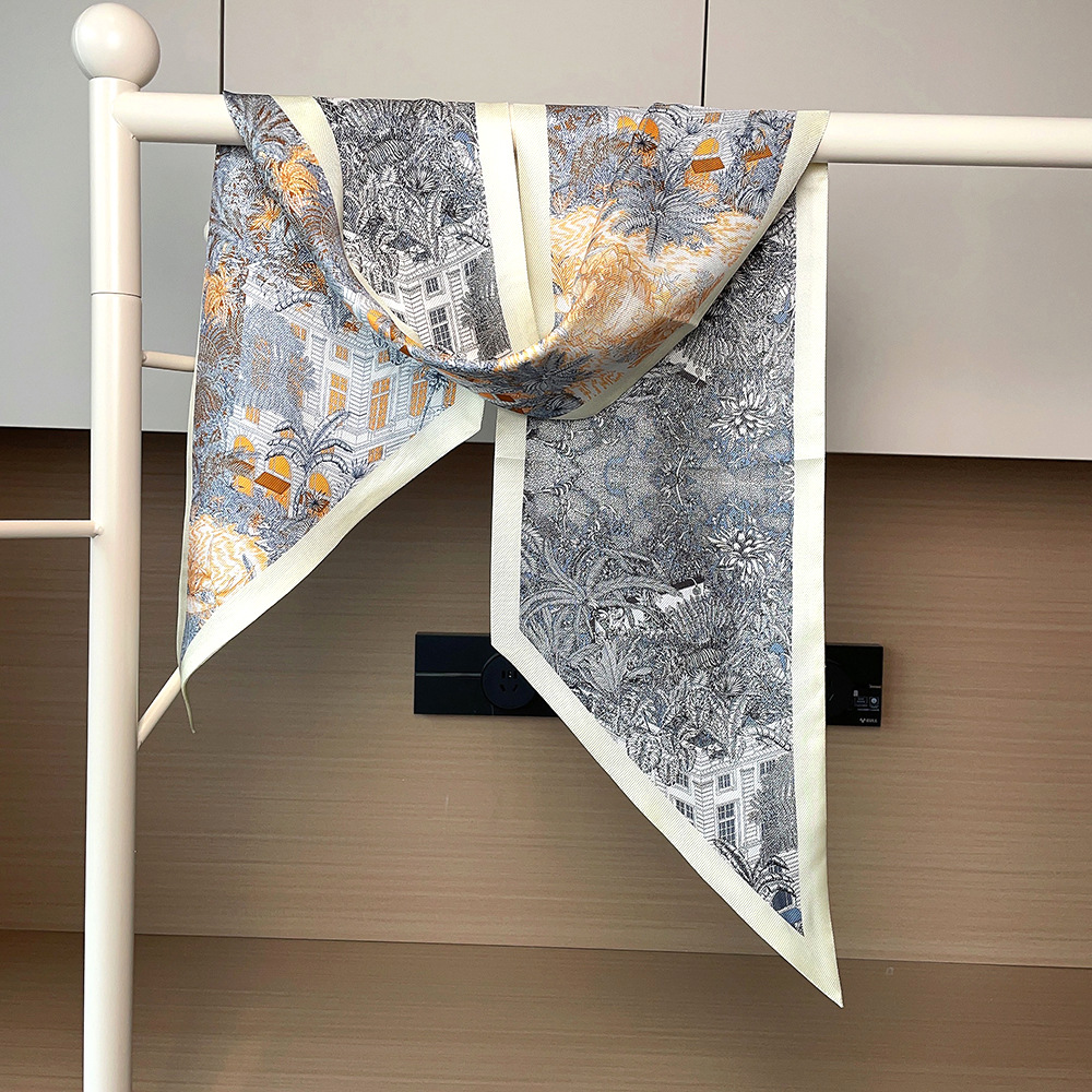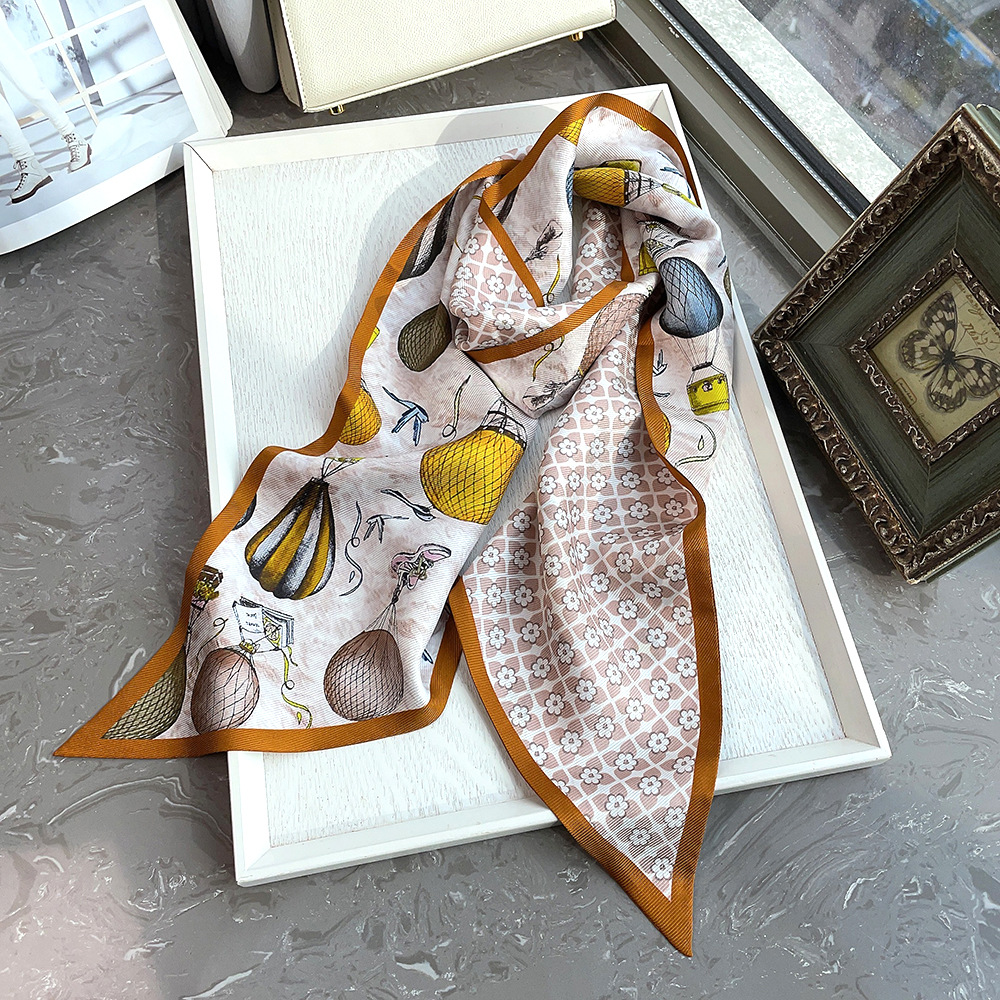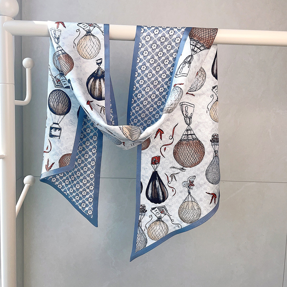 스프링 실크 트윌 롱 스트립 플로팅 대역폭 플래티넘 푸바오 베이지 스카프 다목적 멀 베리 실크 넥 사진 스카프스토어 가기