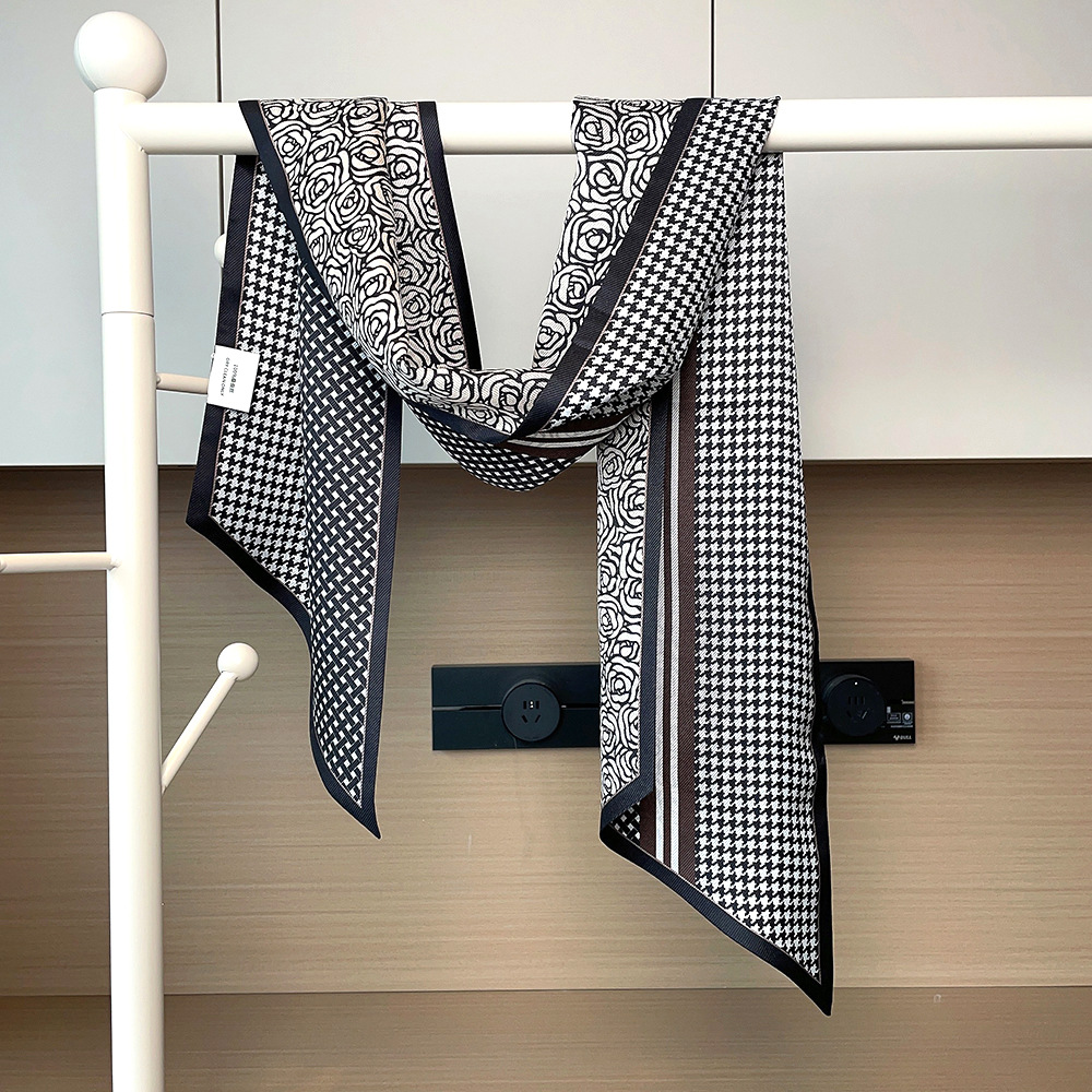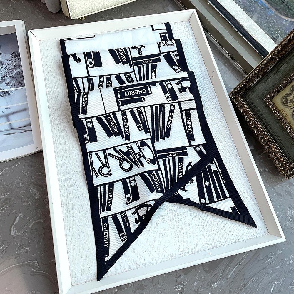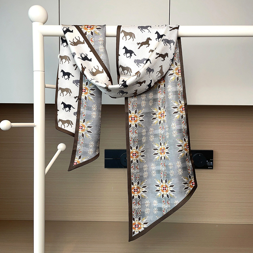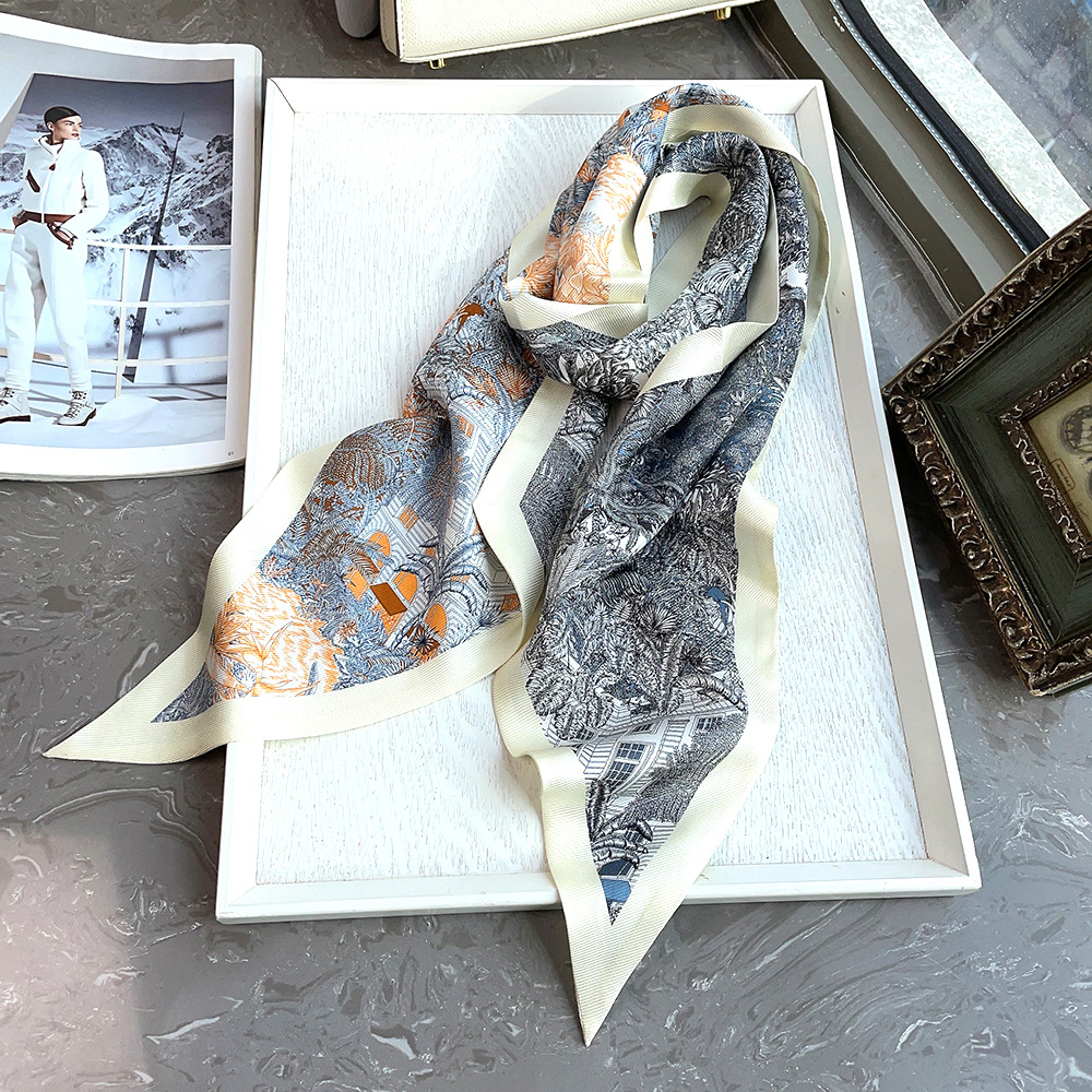 스프링 실크 트윌 롱 스트립 플로팅 대역폭 플래티넘 푸바오 베이지 스카프 다목적 멀 베리 실크 넥 사진 스카프스토어 가기