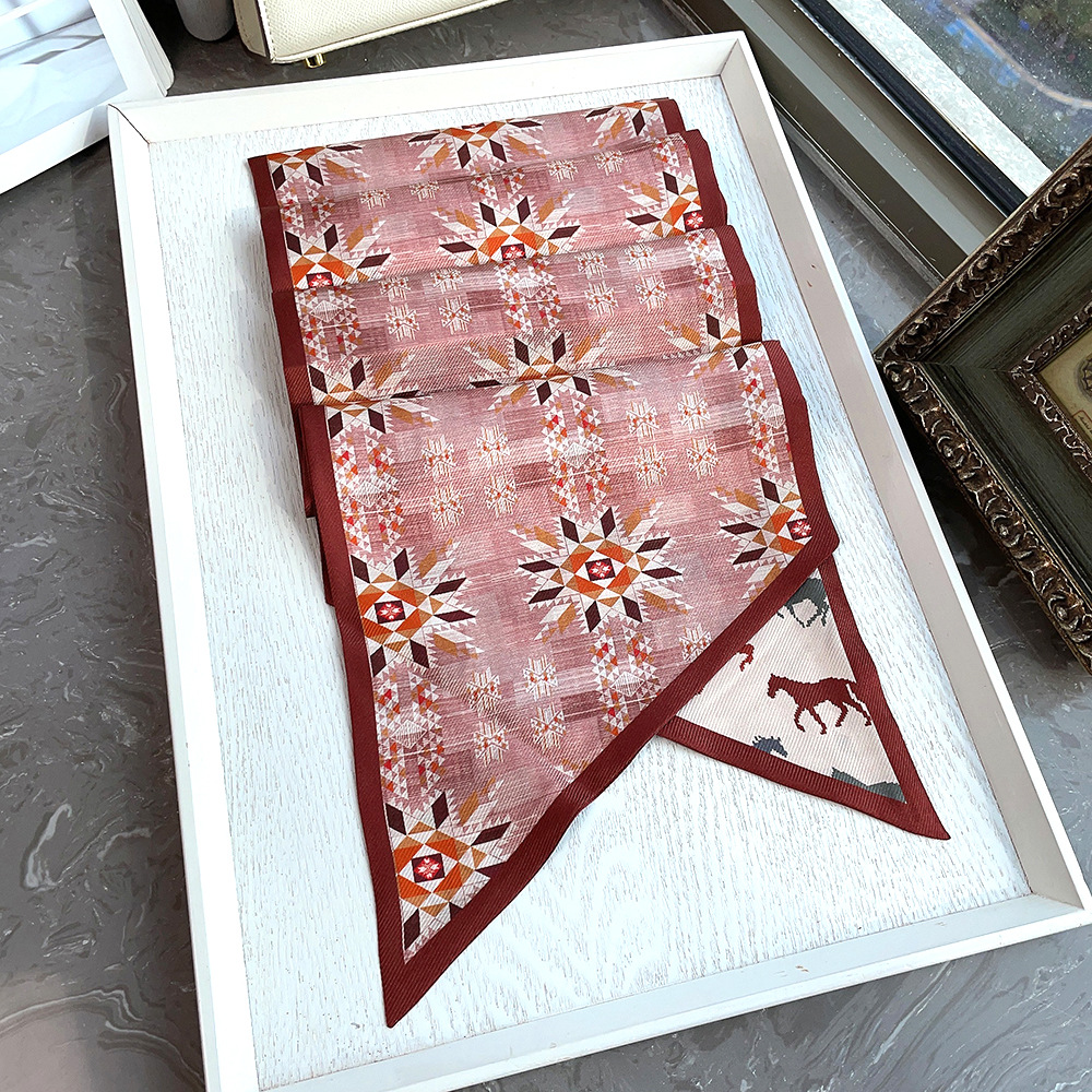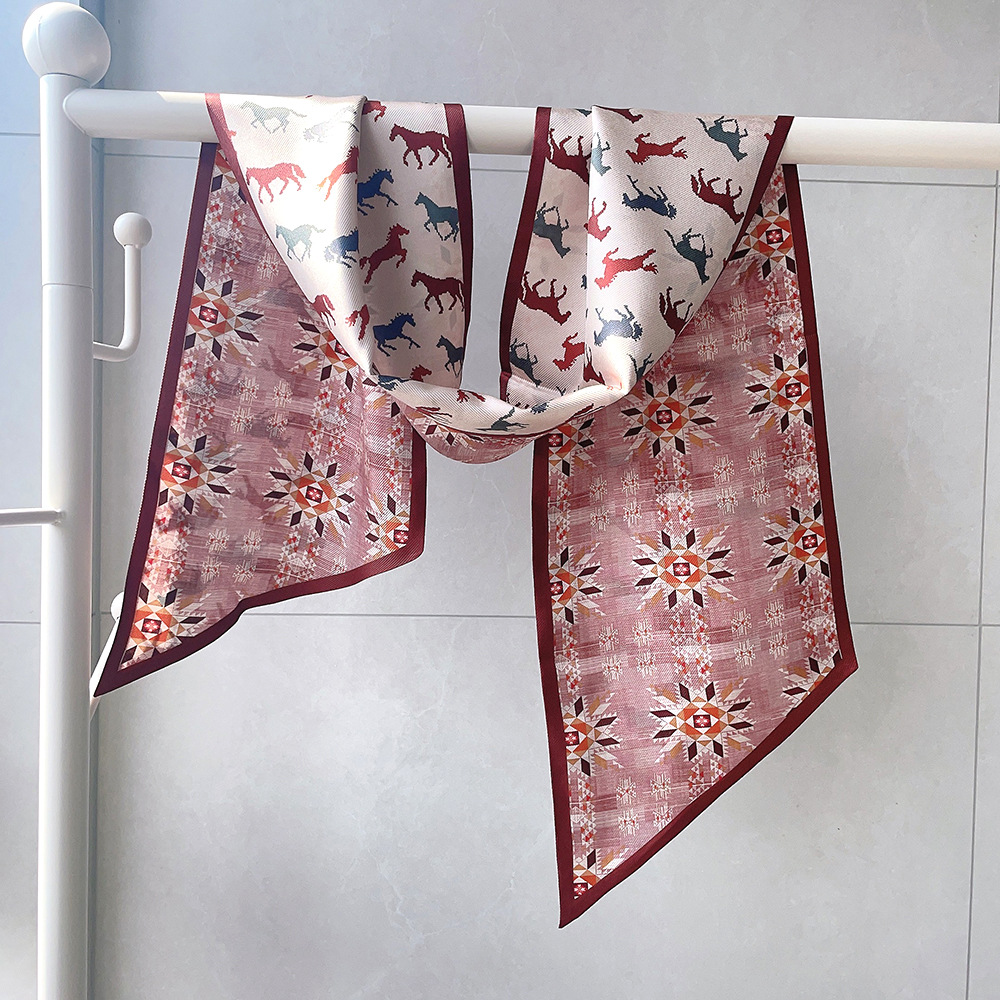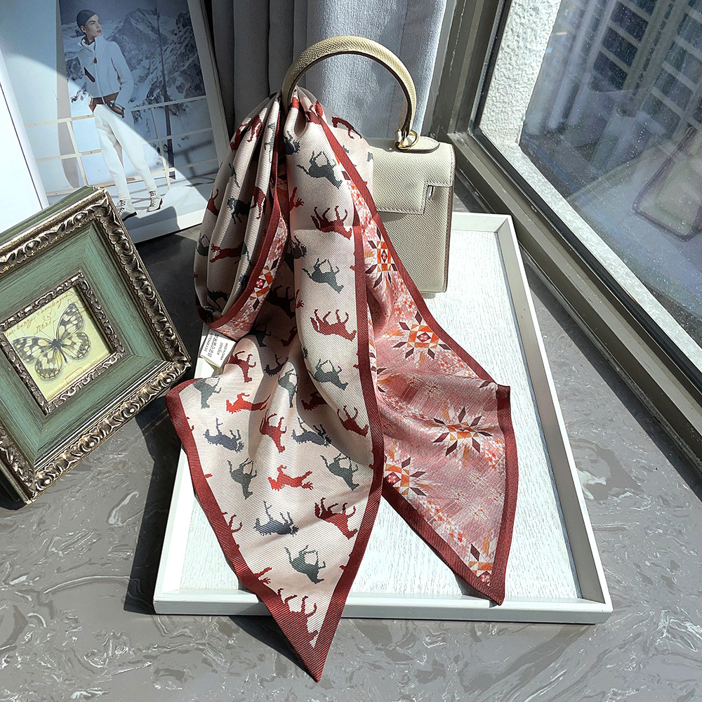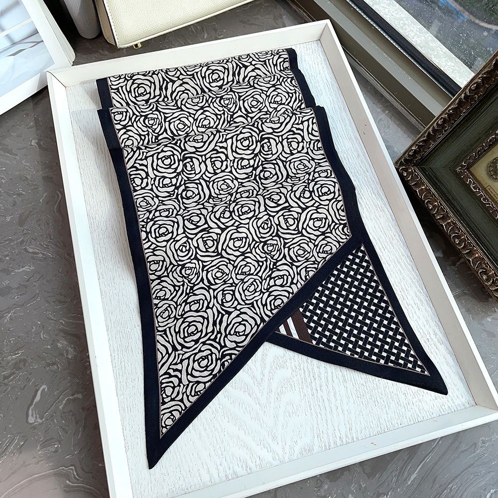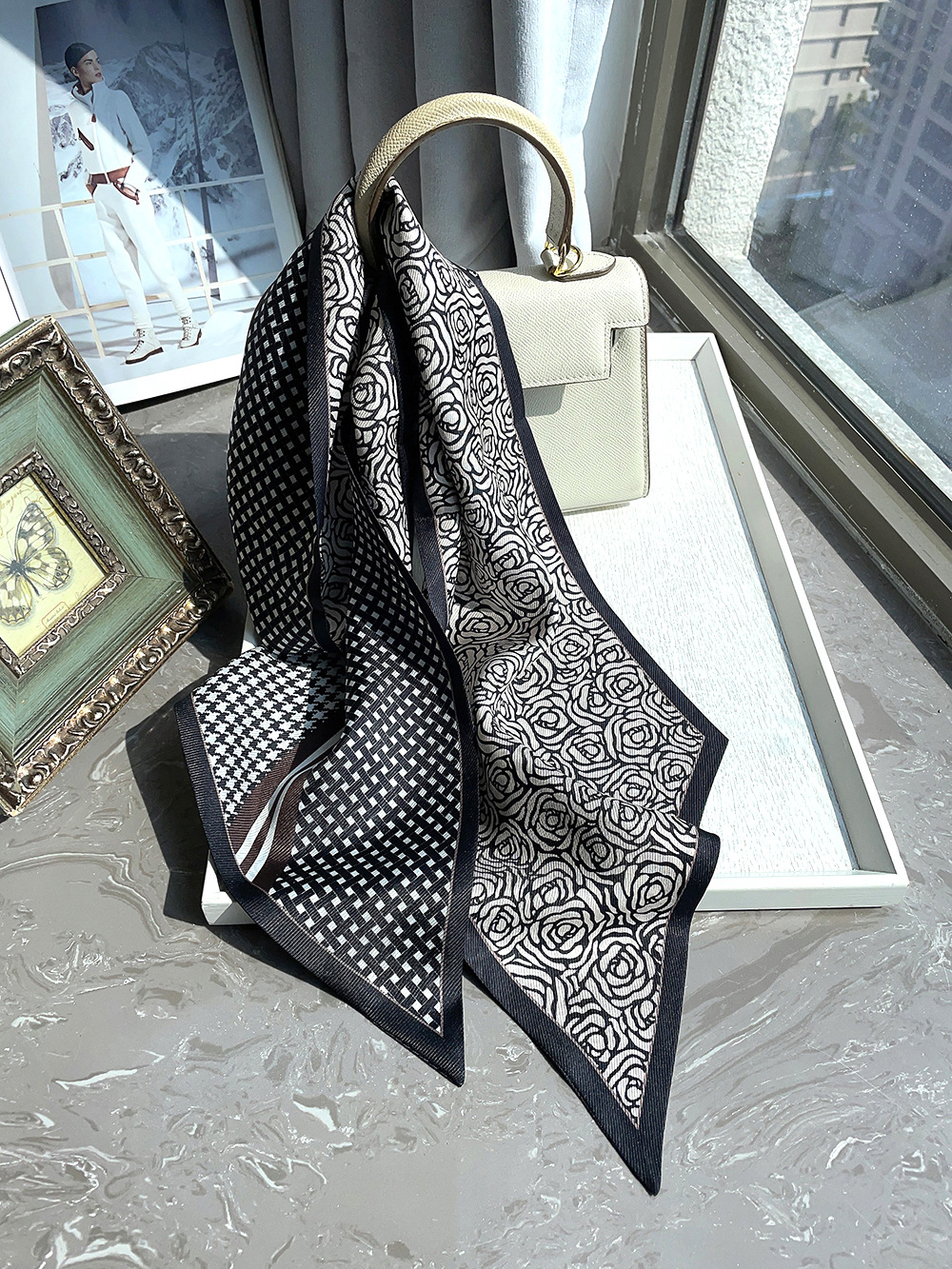 스프링 실크 트윌 롱 스트립 플로팅 대역폭 플래티넘 푸바오 베이지 스카프 다목적 멀 베리 실크 넥 사진 스카프스토어 가기