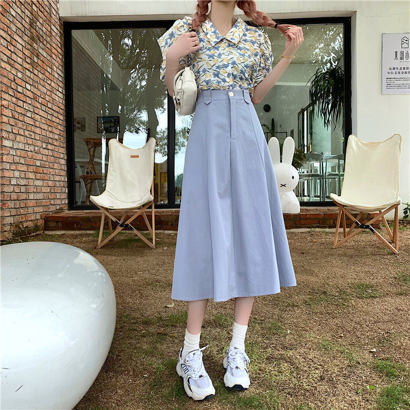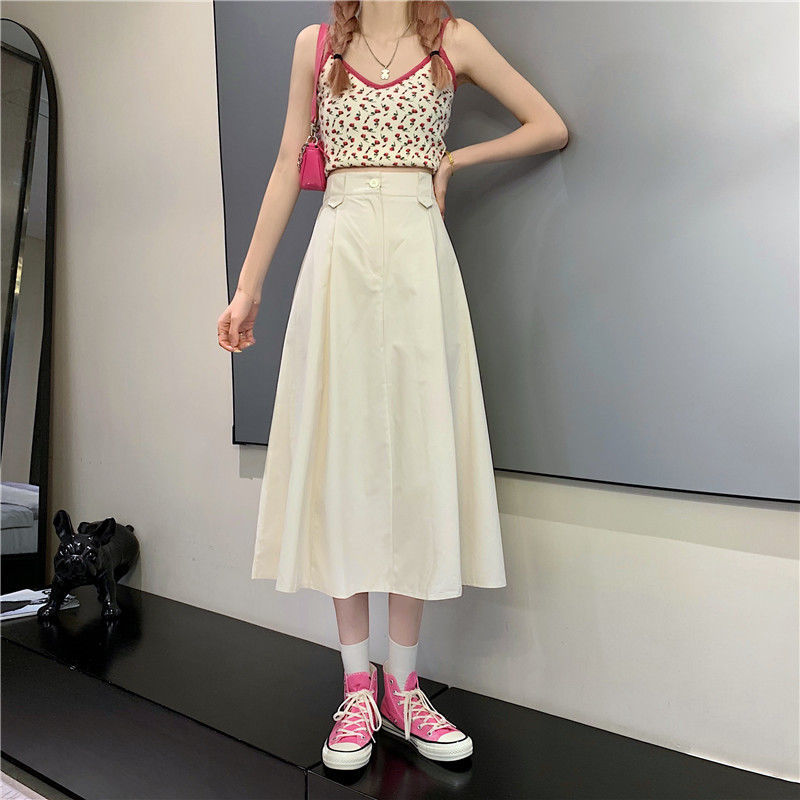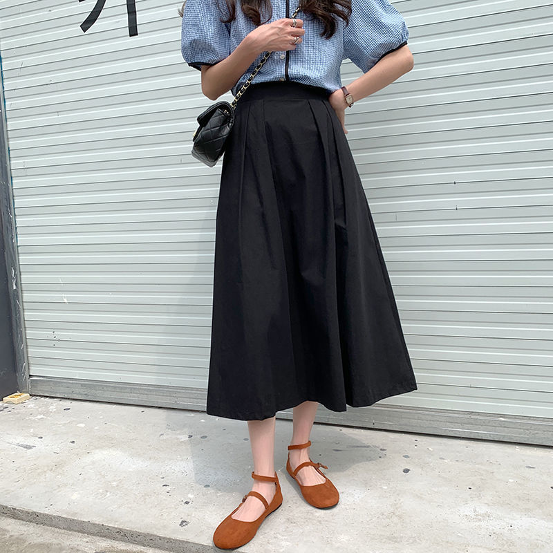 여자 치마 여름 2025 새로운 패션 플러스 사이즈 통통녀 높은 허리 슬리밍 작은 올 매치 우아한 A 라인 우산 치마