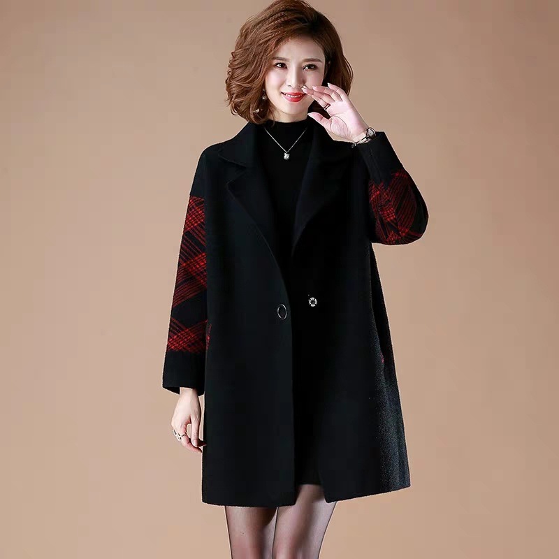 2025 새로운 어머니 봄 고급 중년 여성의 봄과 가을 서양식 코트 중년 여성 패션 격자 무늬 코트스토어 가기