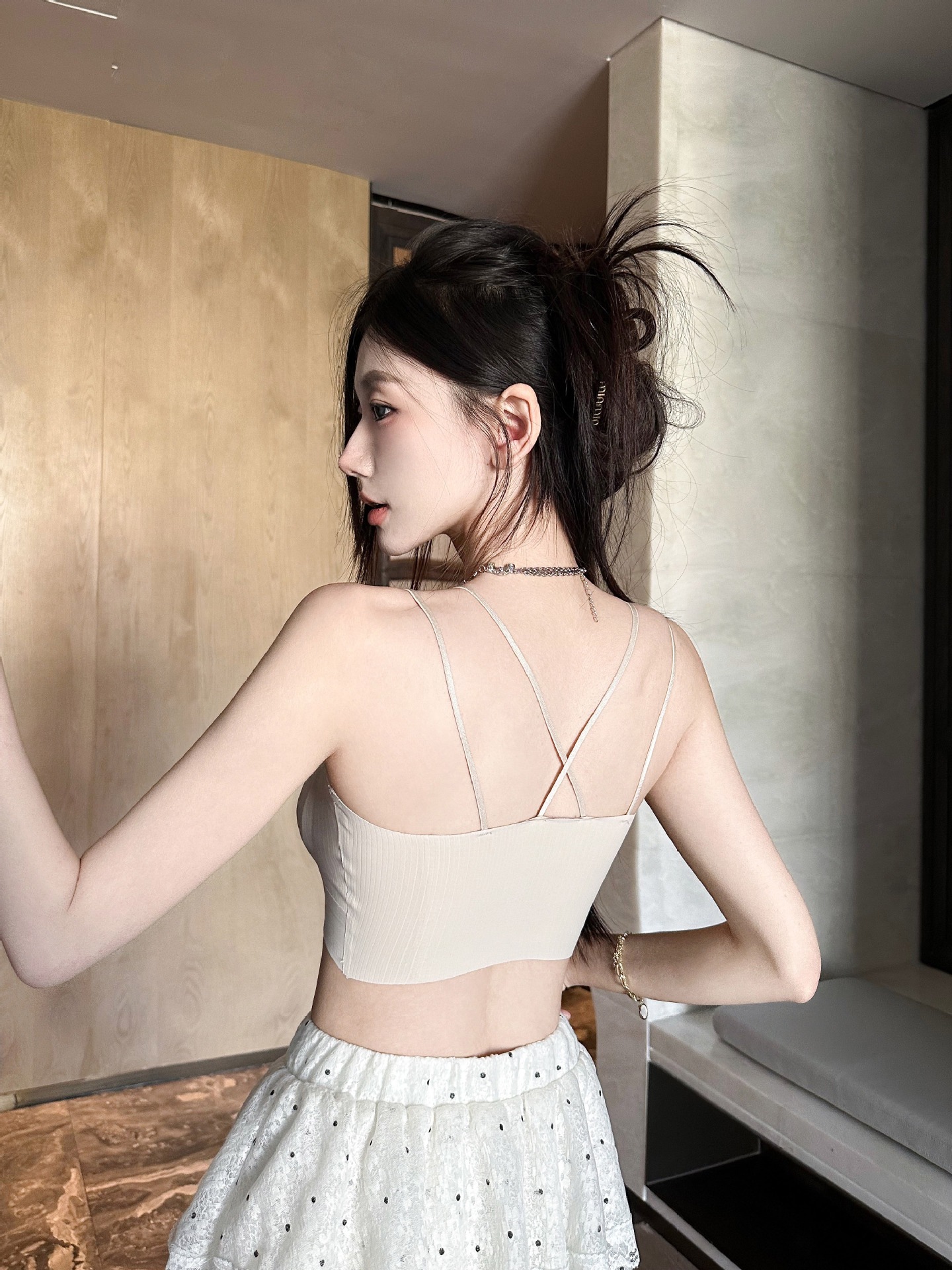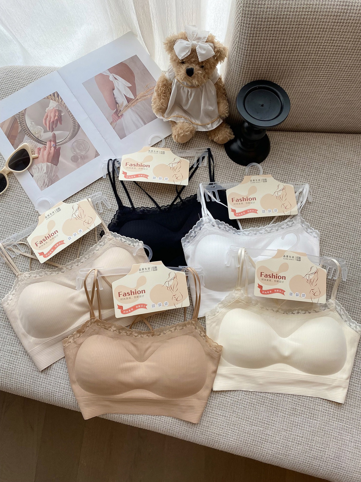 프랑스 스타일의 사틴 칼라 미끄럼 방지 마크 비 마크 아름다운 백 랩 가슴 슬링 여성의 봄과 여름 내부 브래지어 속옷 튜브스토어 가기