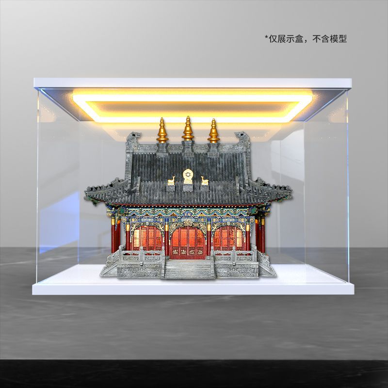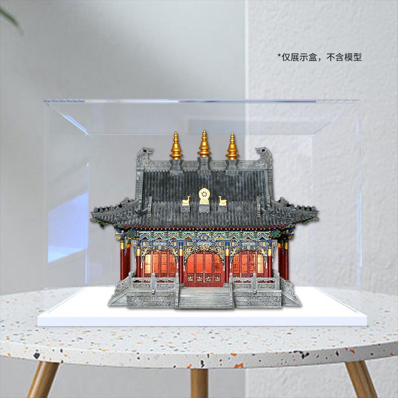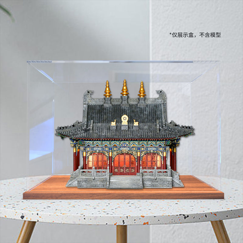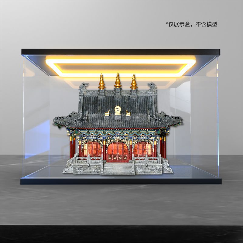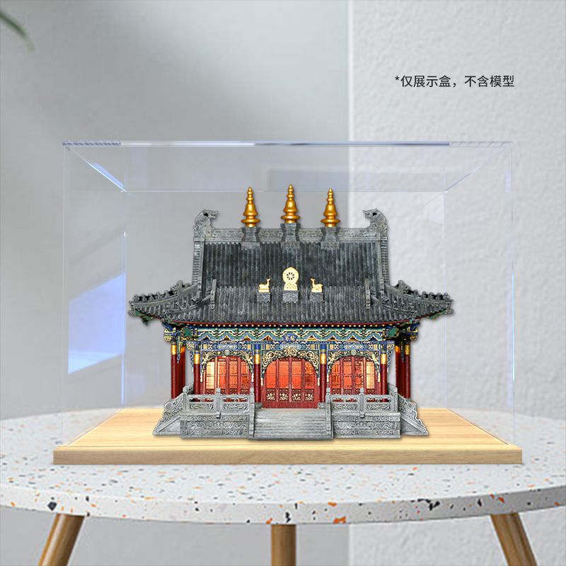 Wuye Temple Wutai Mountain Temple of Wealth Mortise 및 Tenon 빌딩 블록 고대 건물 모델 백 램프 먼지 커버 HD 저장 상자에 적합