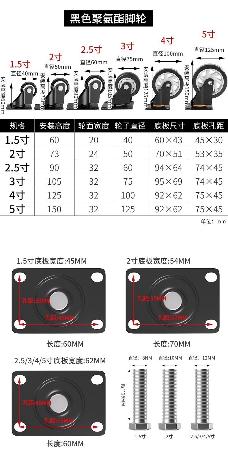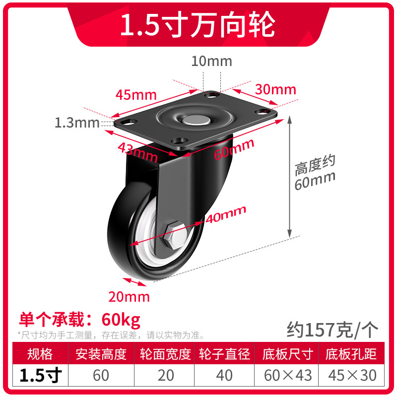 • 4팩【 1.5inch 】2 고정 + 2 브레이크