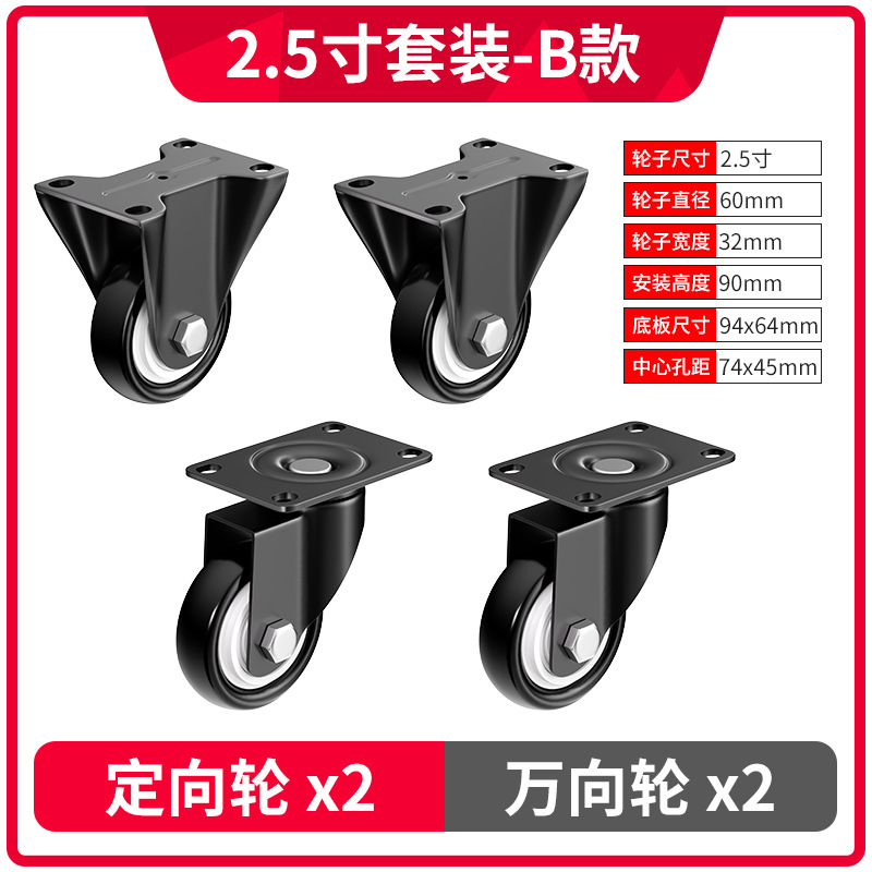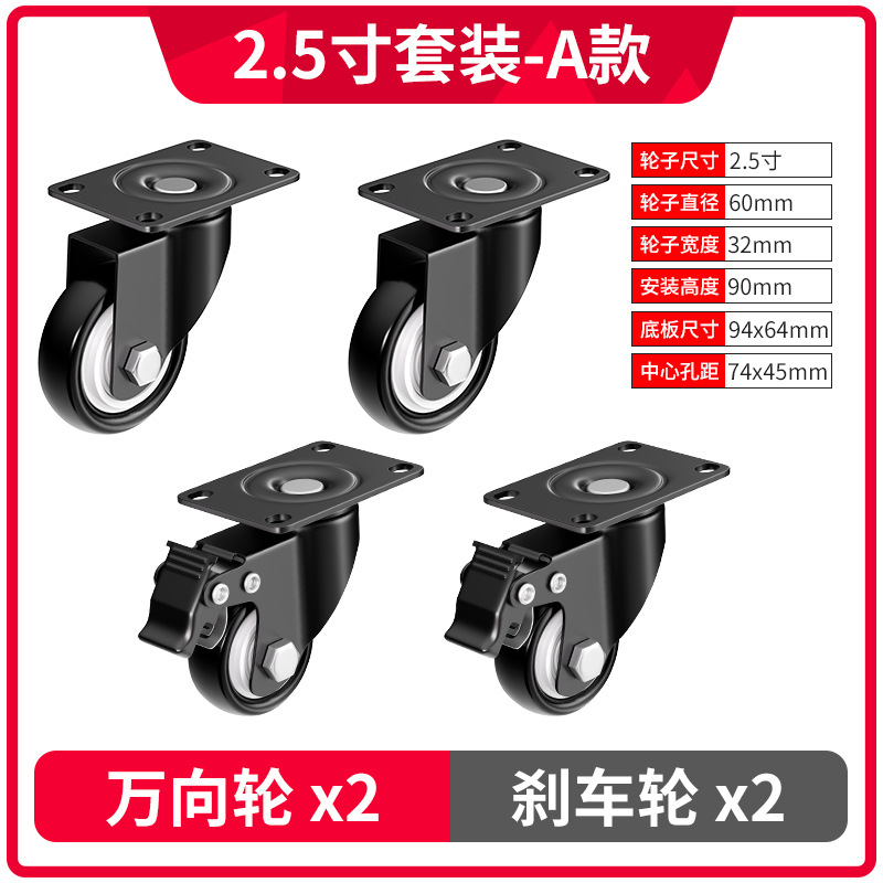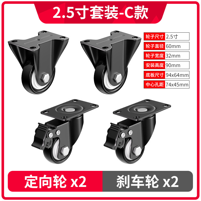 • 4팩【 2.5inch 】2 고정 + 2 브레이크
