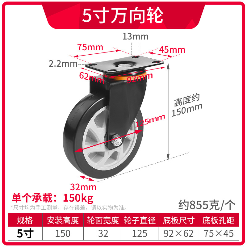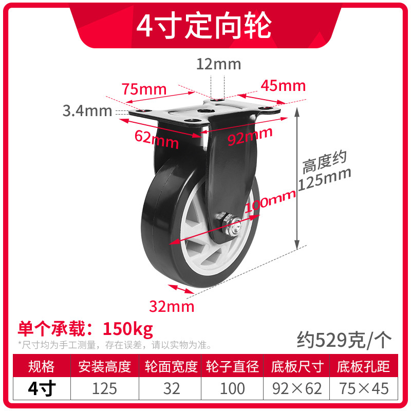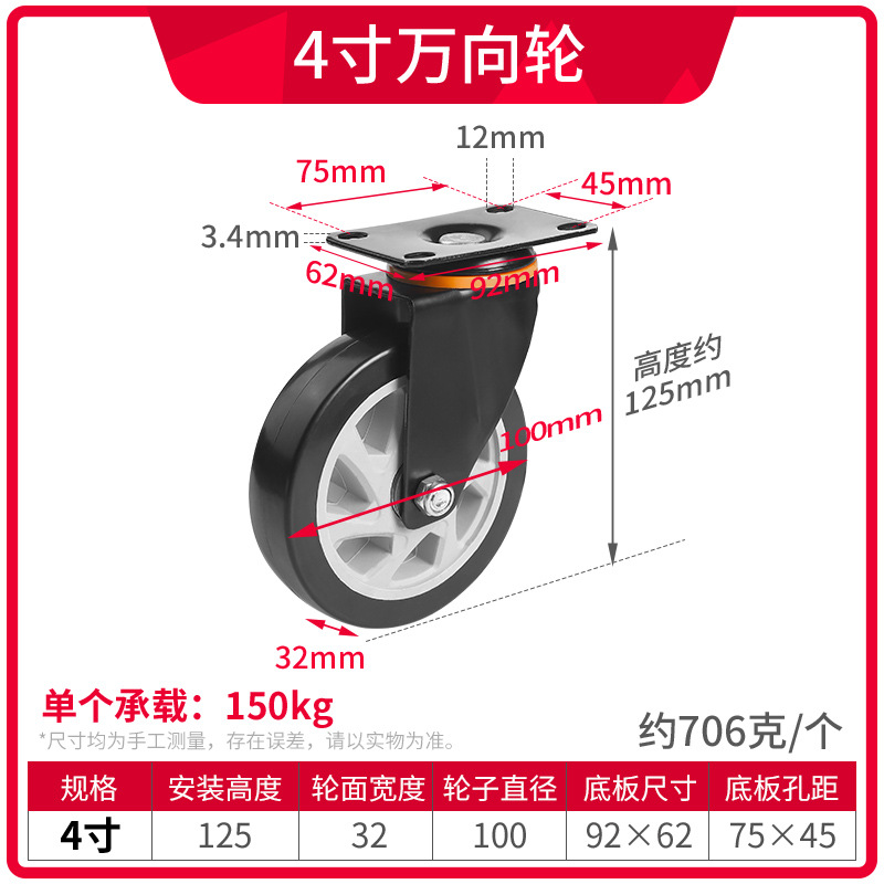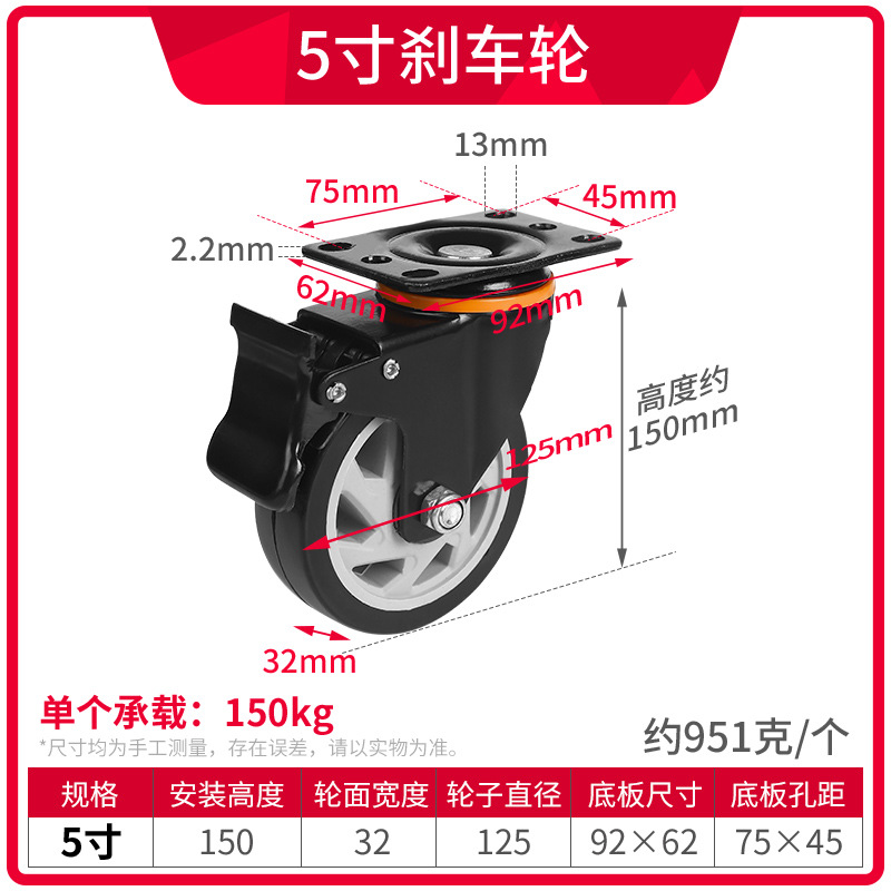 범용 휠 무거운 캐스터 자동 회전 방향 휠 34 인치 차축 브레이크 핸드 푸시 카트 작은 트레일러 풀리
