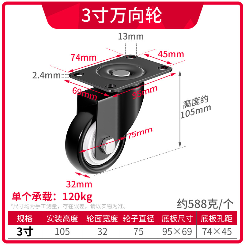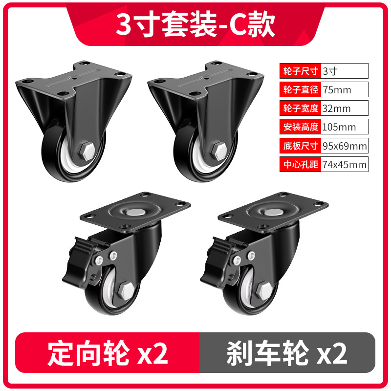 • 4팩【 3inch 】2 고정 + 2 브레이크