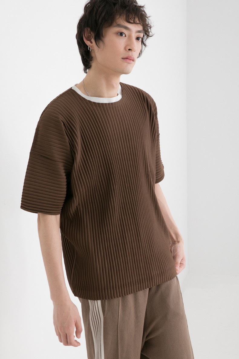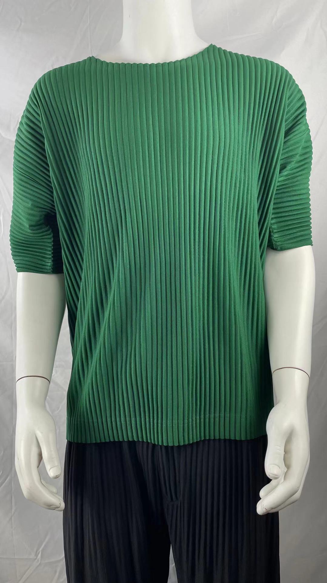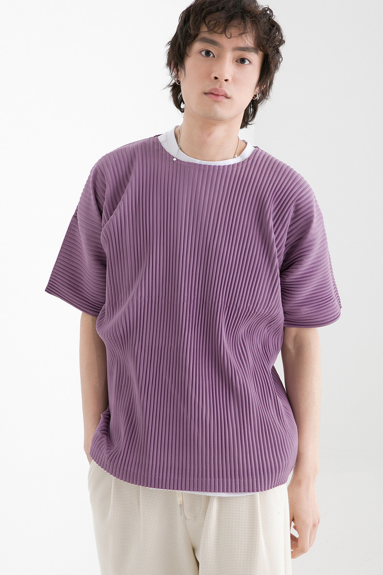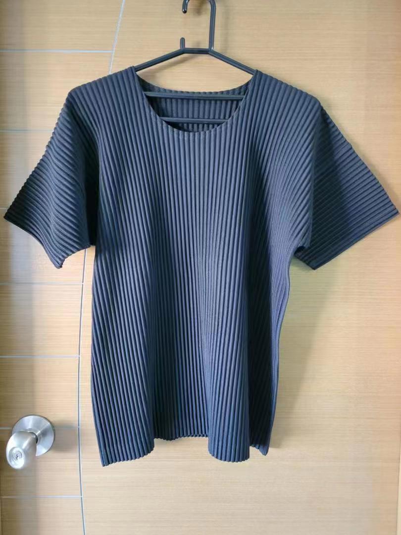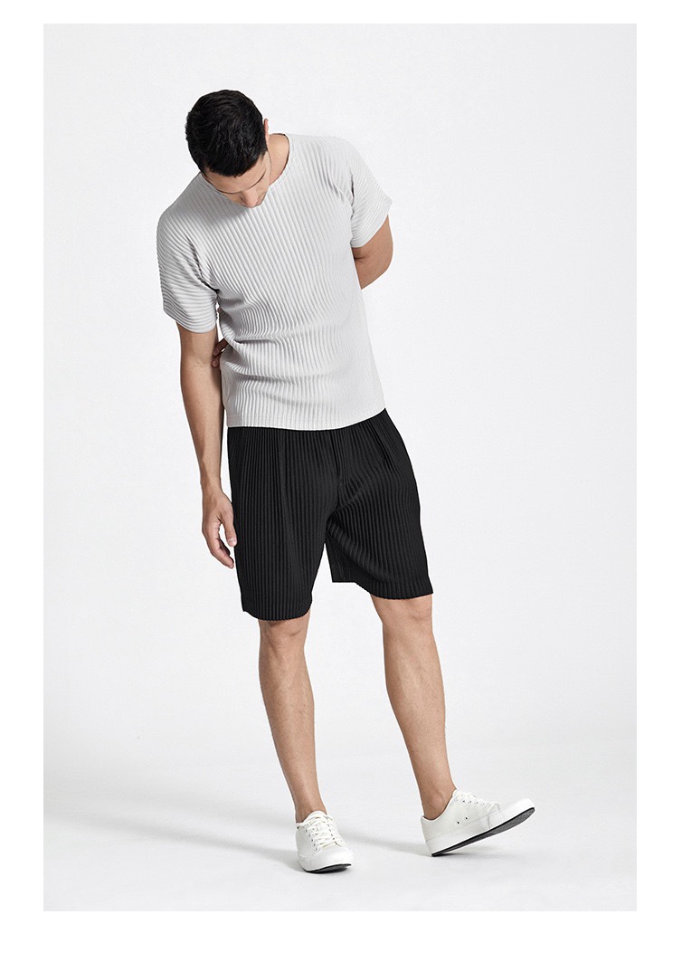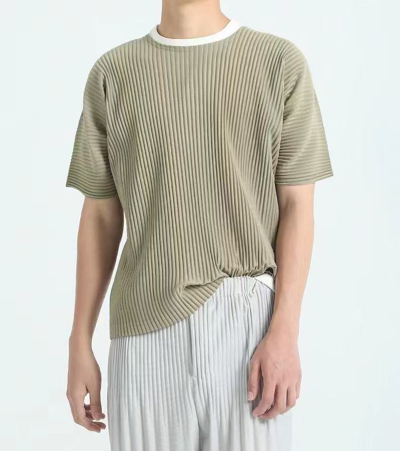미야케 의류 남성용 주름 반팔 상의 루즈핏 캐주얼 5부 소매 단색 봄 여름 티셔츠 일본식 JK0