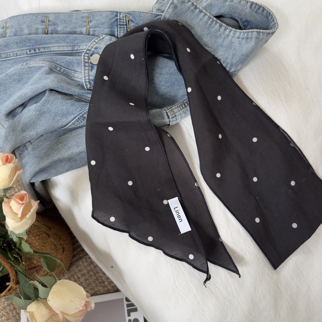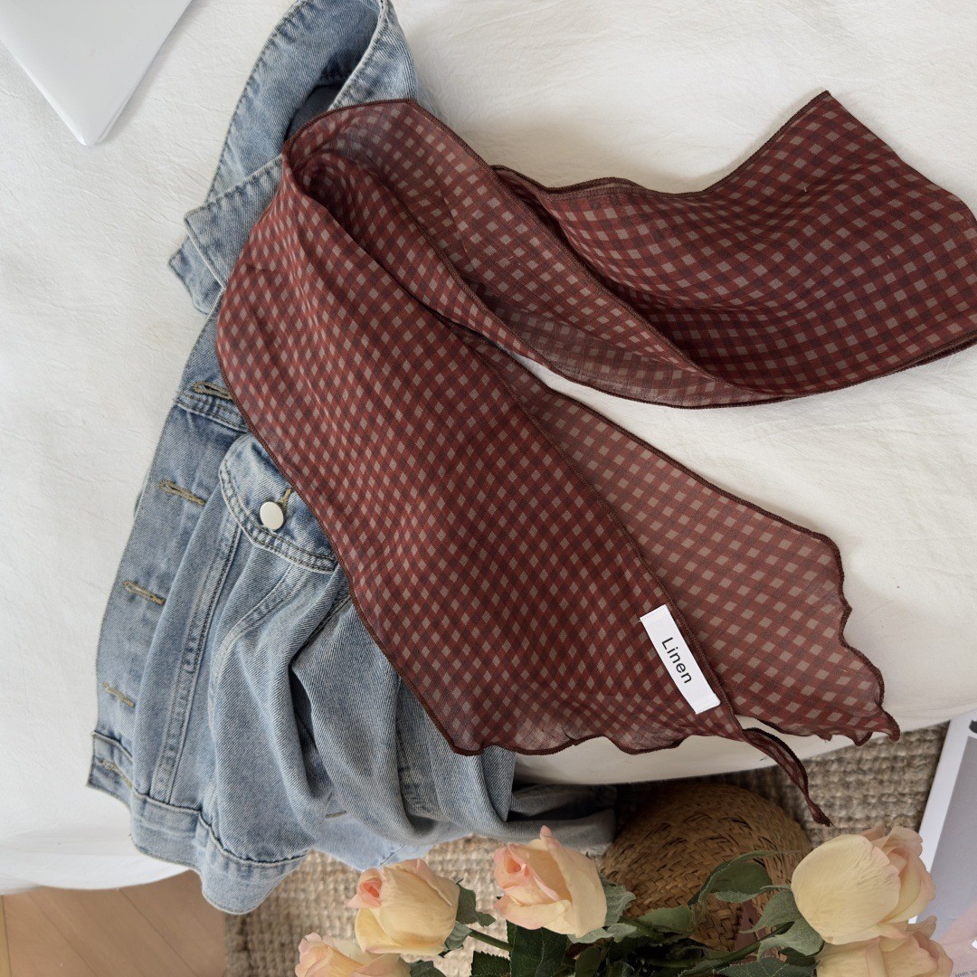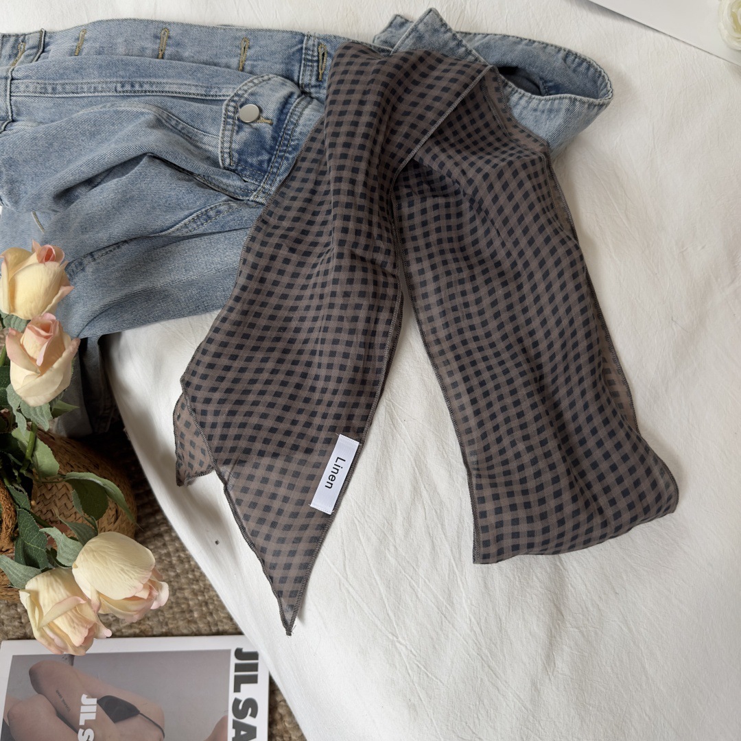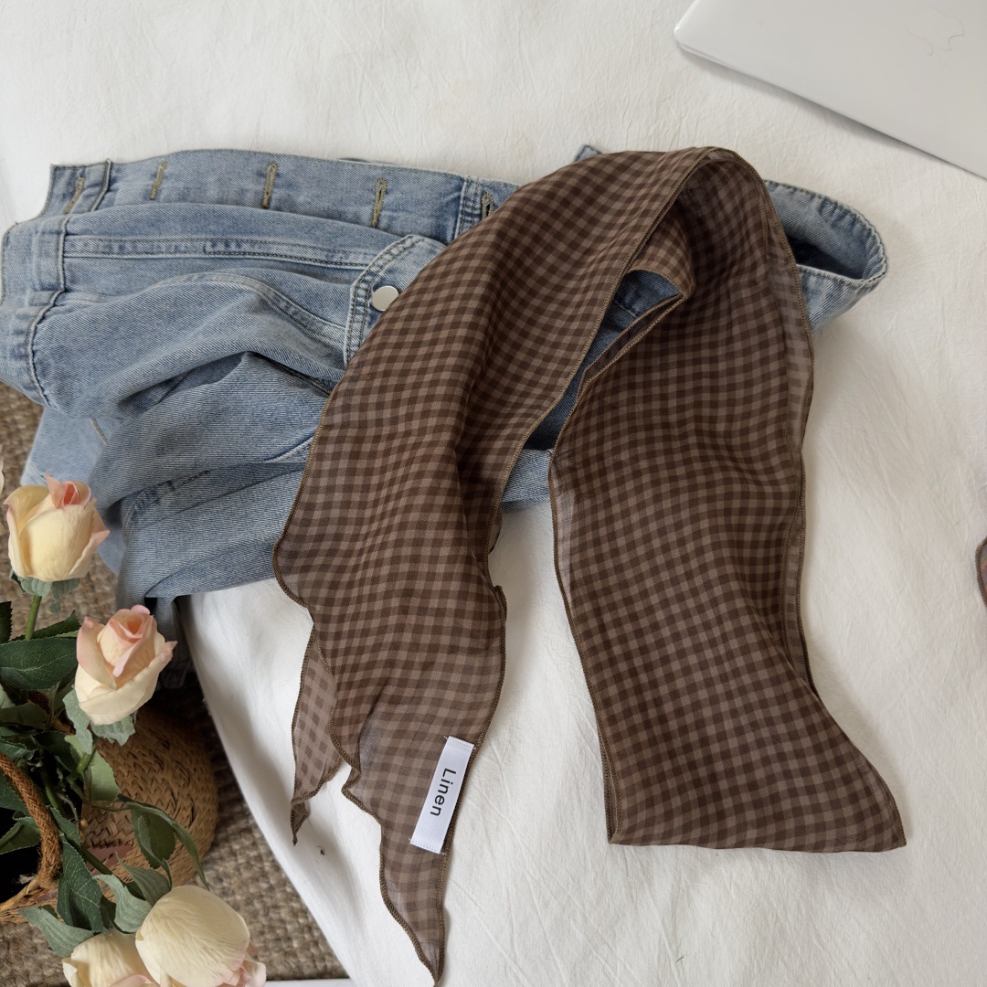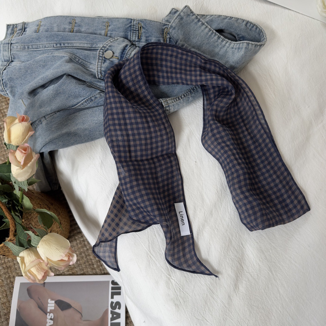 일본식 간단한 흑백 격자 무늬 스카프 빈티지 예술적 리넨 올매치 좁은 스카프 한국식 얇은 리본