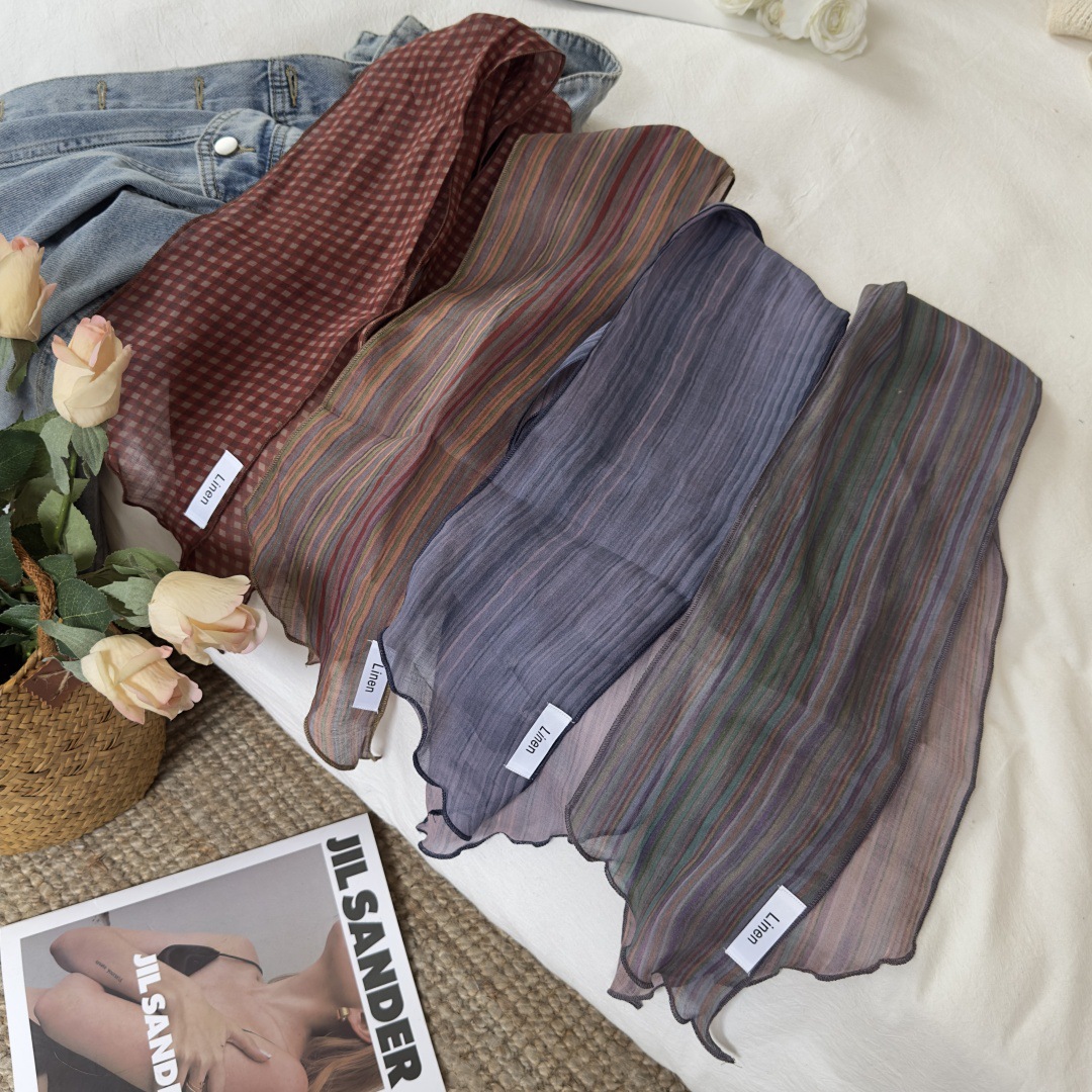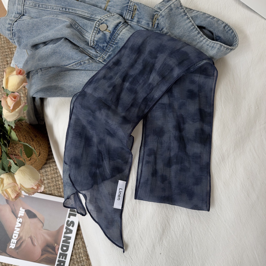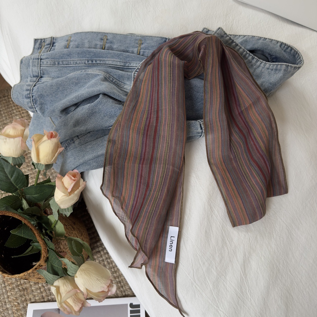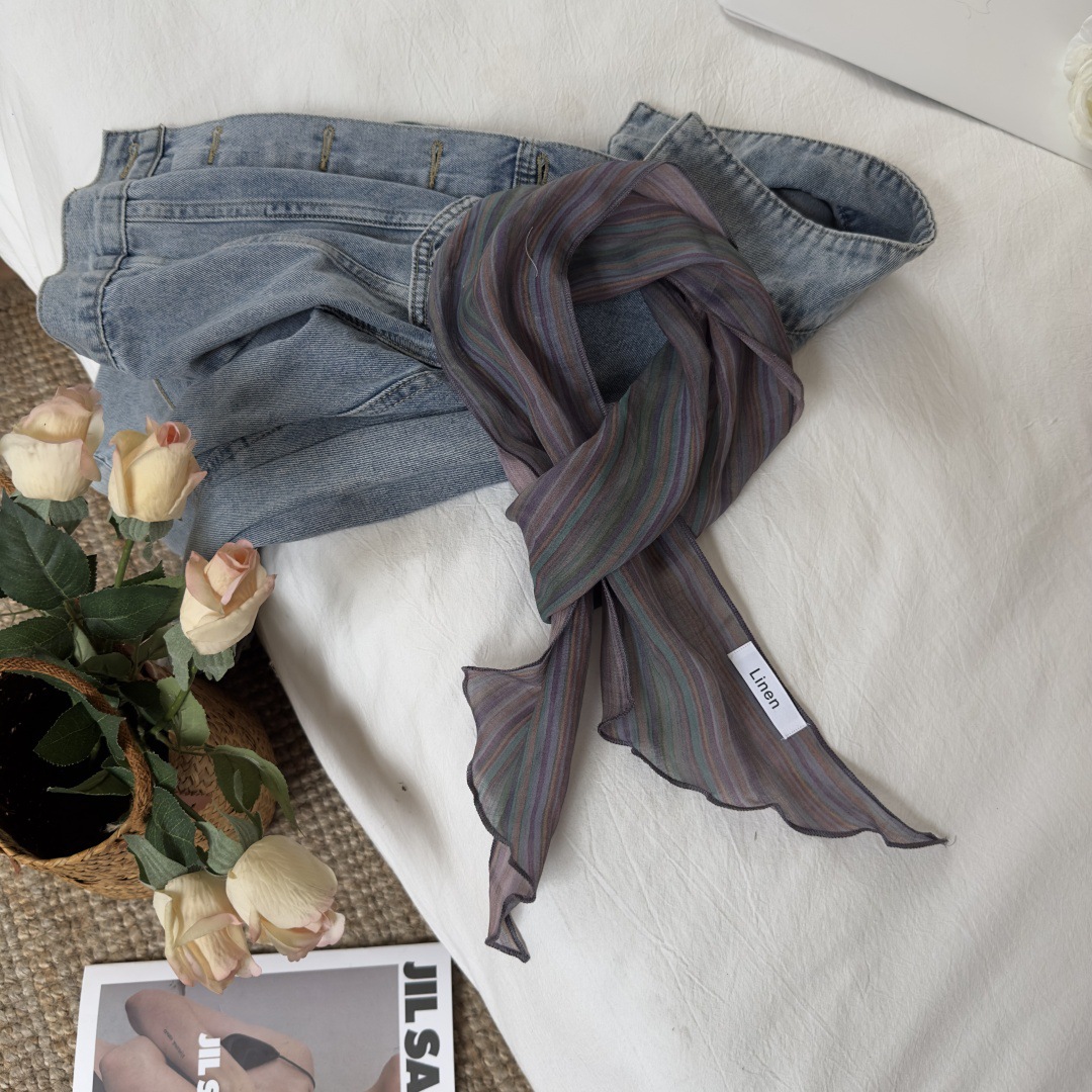 일본식 간단한 흑백 격자 무늬 스카프 빈티지 예술적 리넨 올매치 좁은 스카프 한국식 얇은 리본