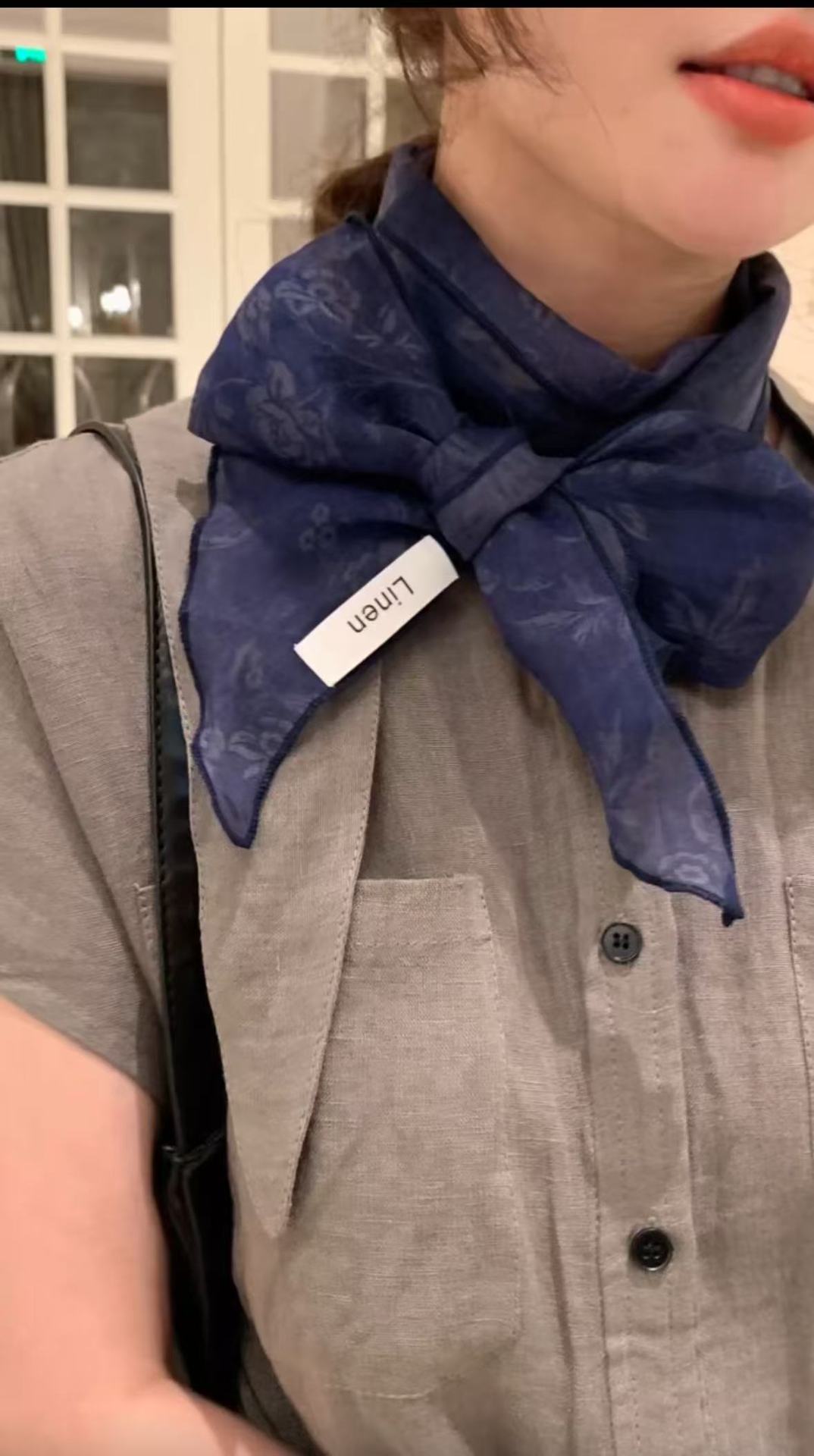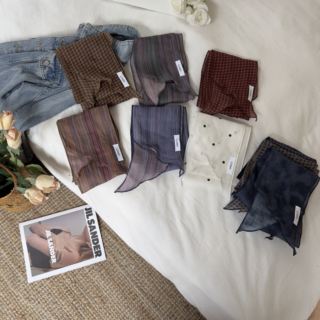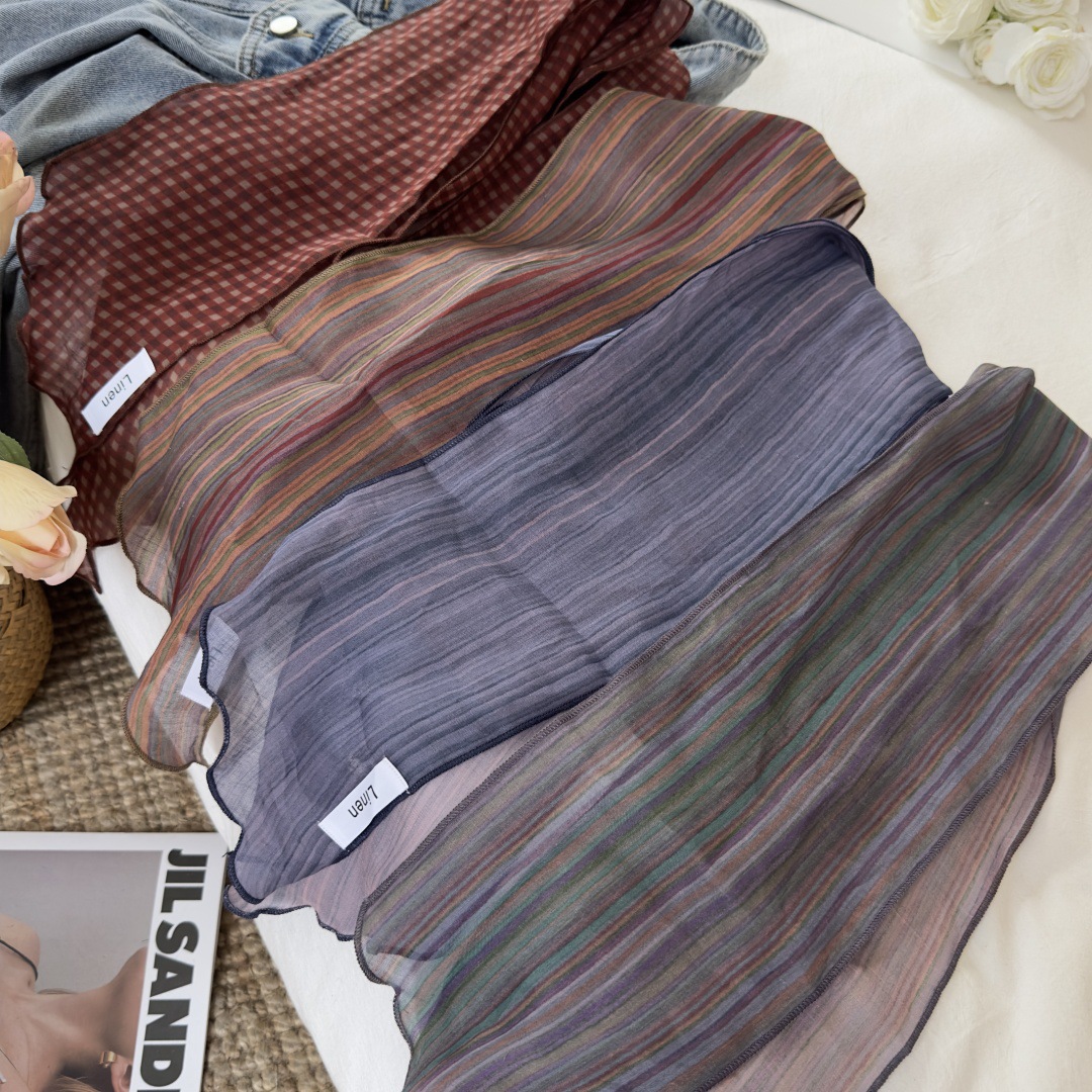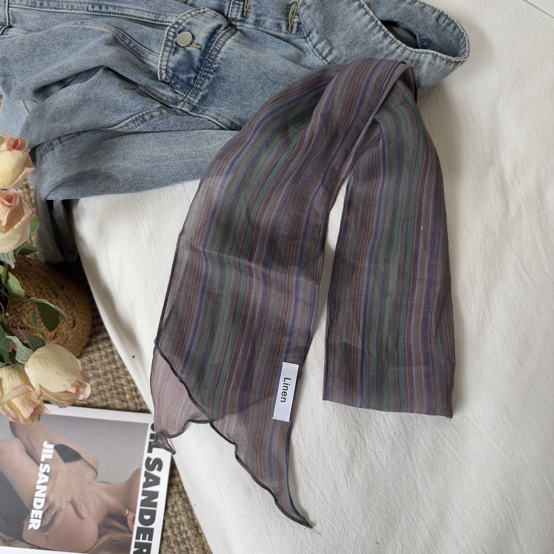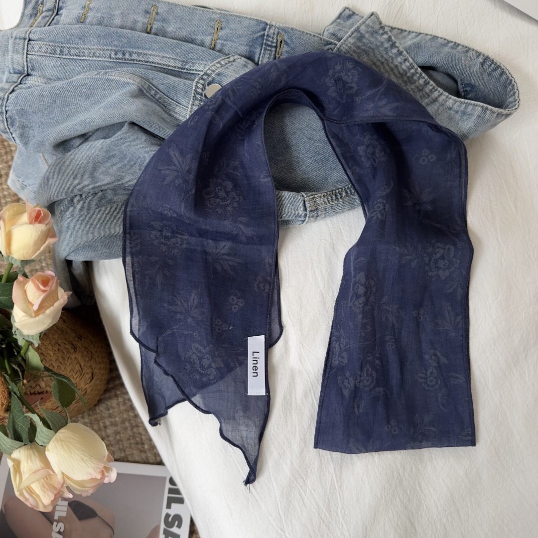 일본식 간단한 흑백 격자 무늬 스카프 빈티지 예술적 리넨 올매치 좁은 스카프 한국식 얇은 리본