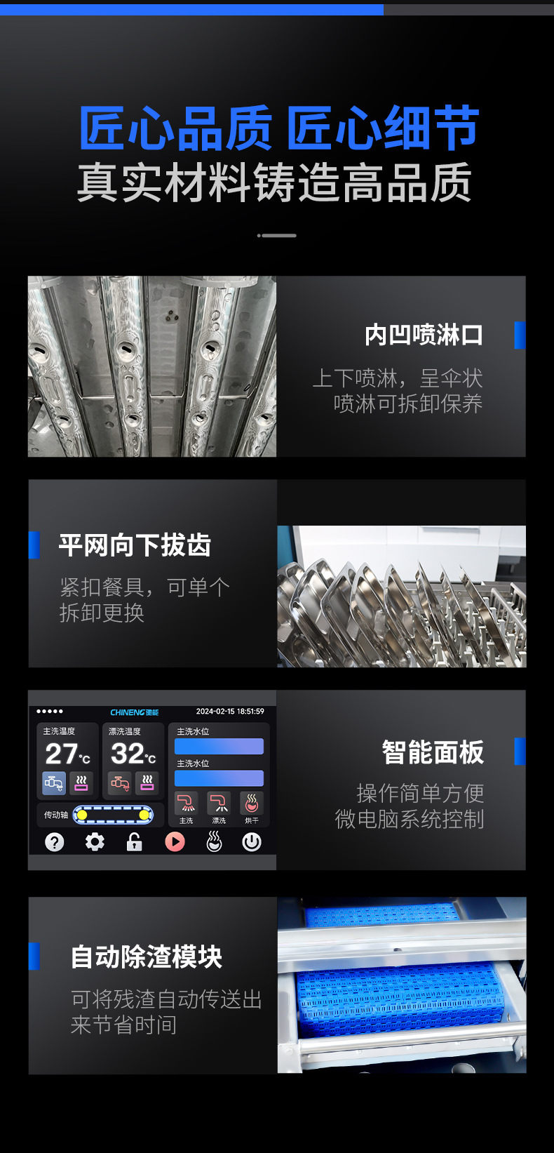 Chineng 지능형 열 회수 상업용 긴 드래곤 통합 자동 식기 세척기 학교 매점 호텔 소스 공장