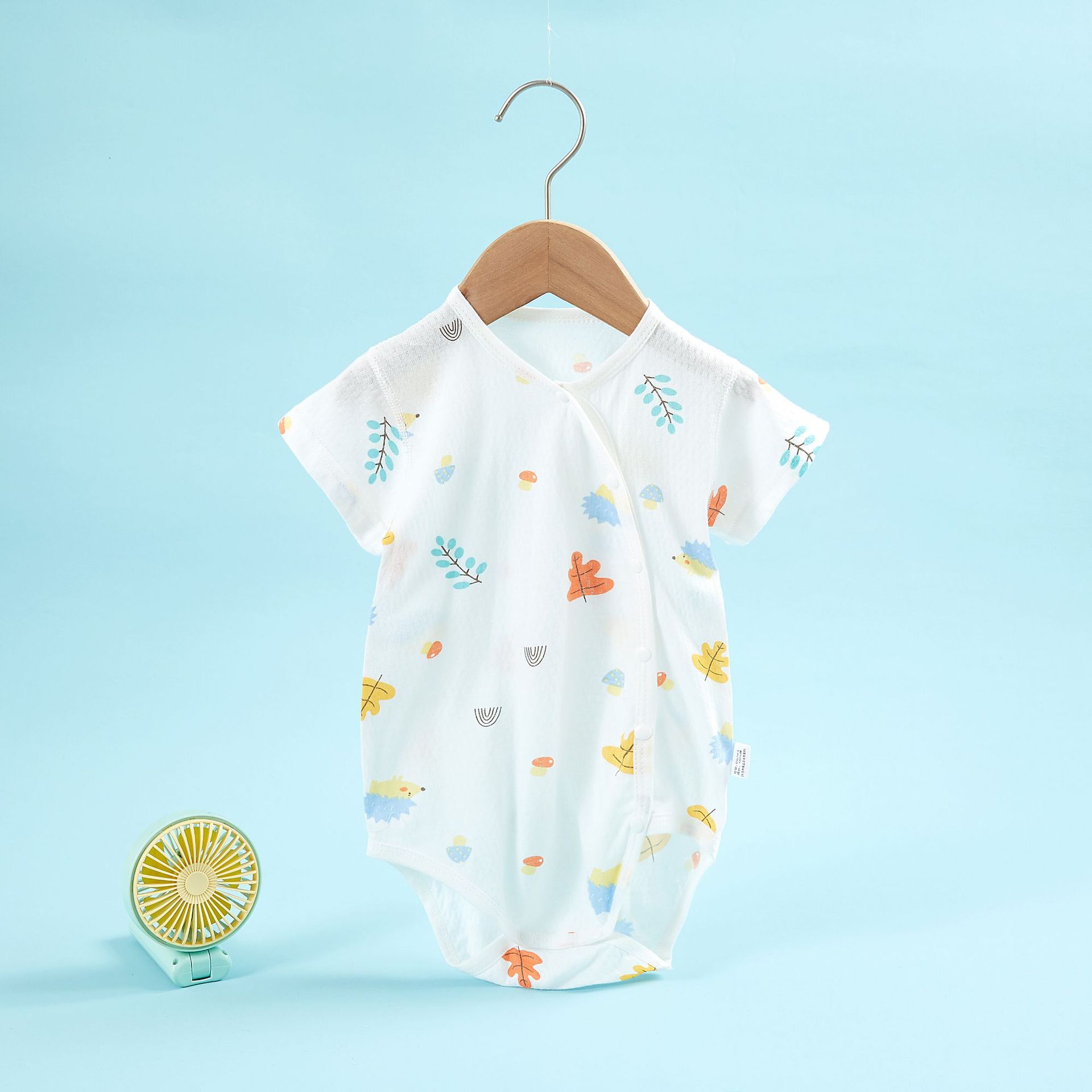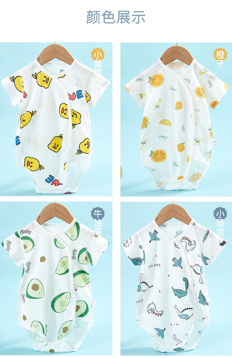 아기의 반소매 랩 패션 의류 여름 얇은 날씬한 오픈 클래스 신생아를위한 순수한면 뼈없는 아기와 여성의 여름 등반 옷스토어 가기
