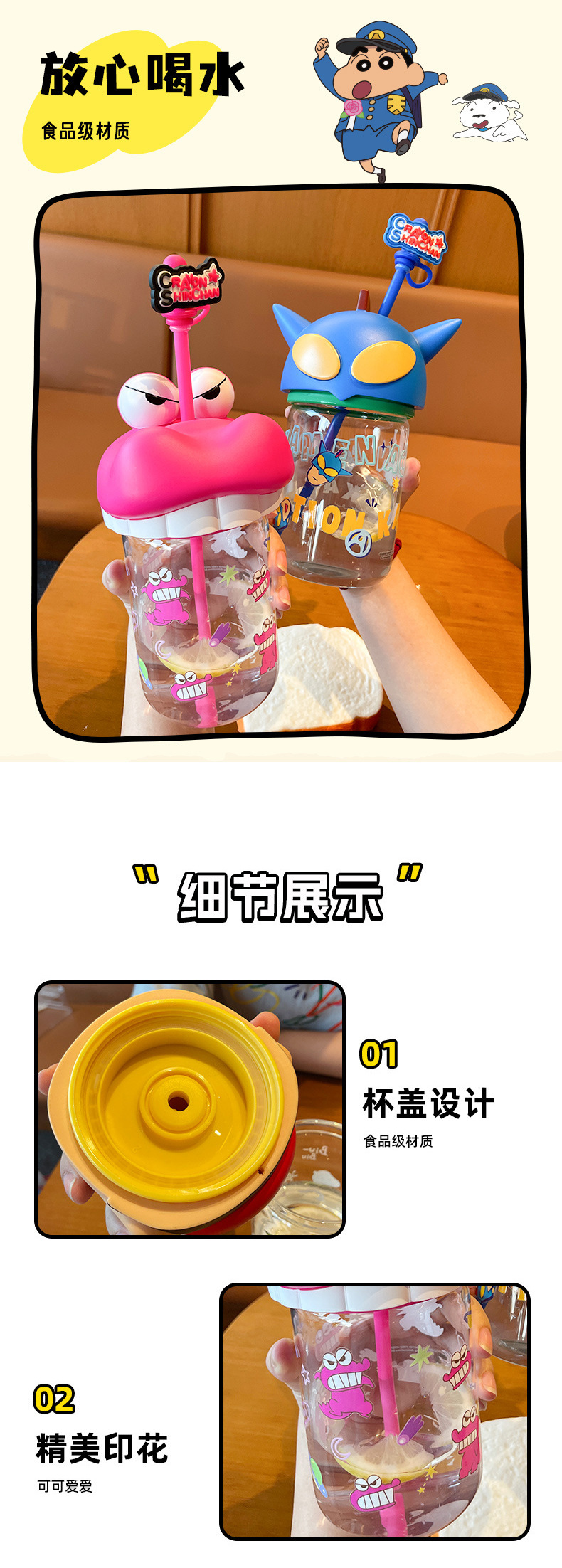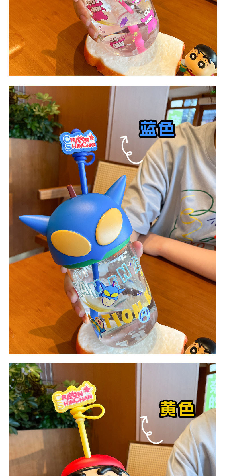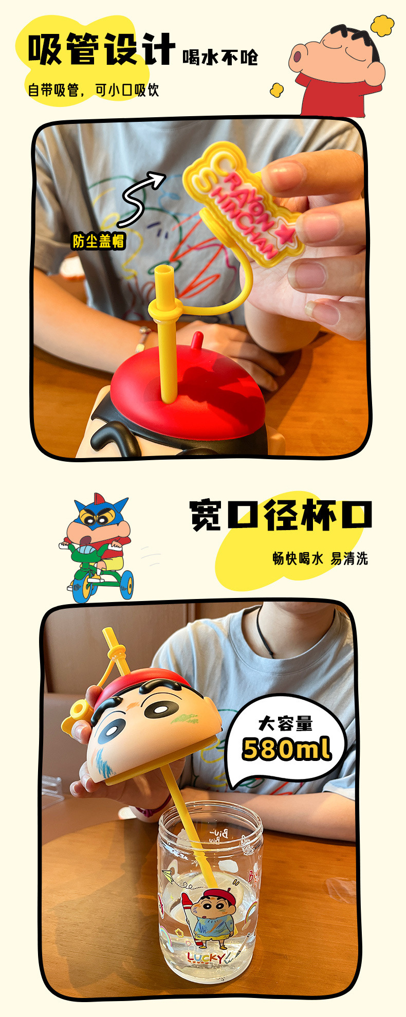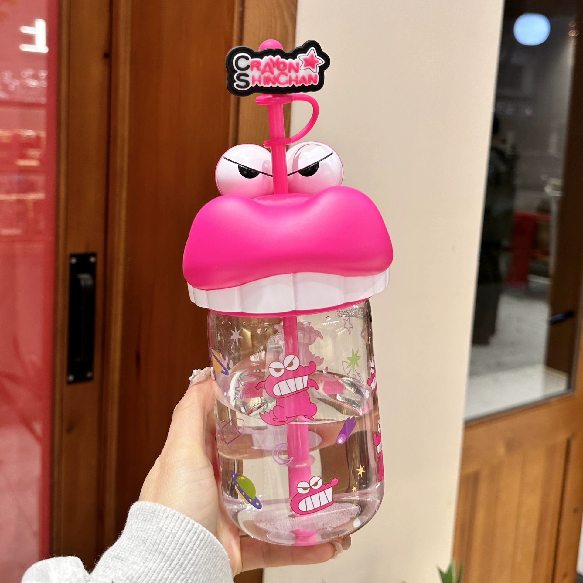 정품 크레용 작은 새로운 유리 워터 컵 2025 새로운 남성과 여성의 높은 색상 가치 귀여운 가정용 밀짚 컵 고온 저항