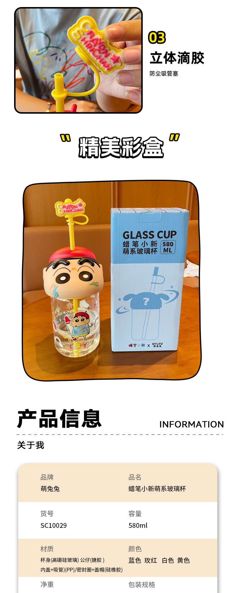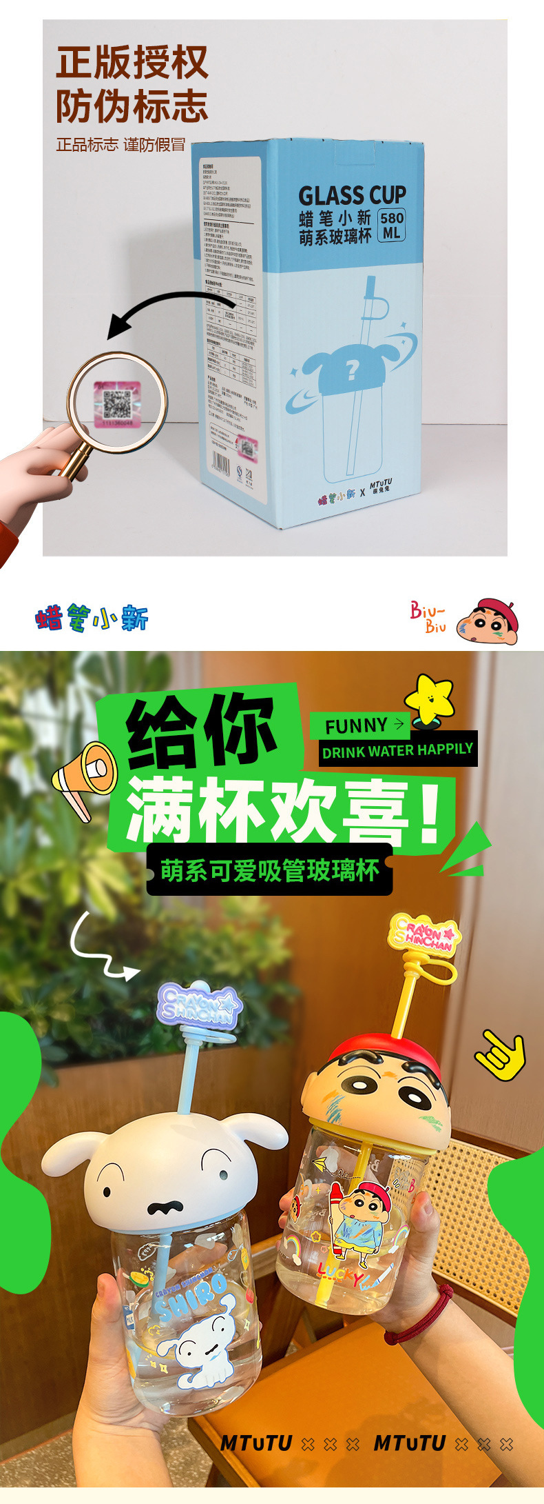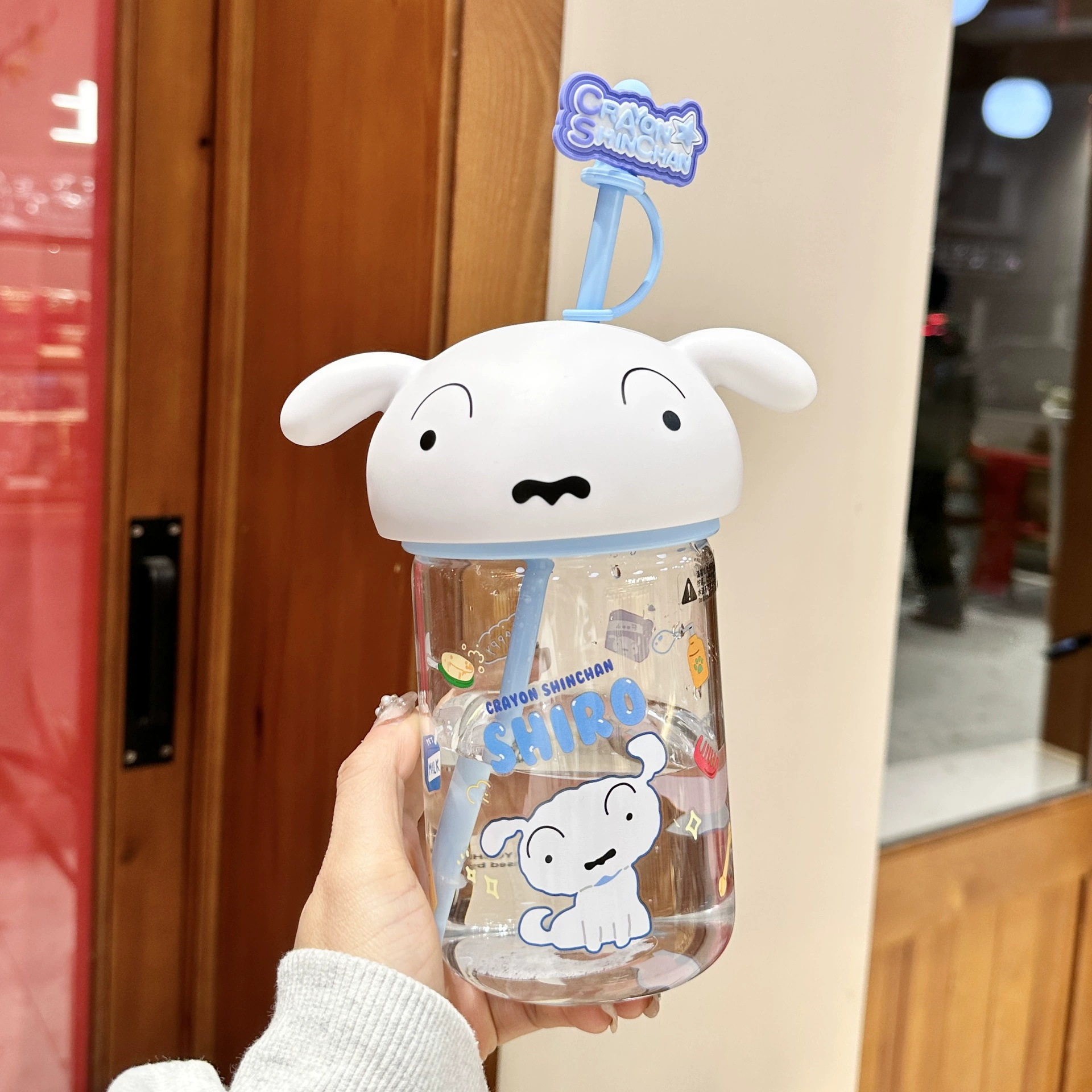 정품 크레용 작은 새로운 유리 워터 컵 2025 새로운 남성과 여성의 높은 색상 가치 귀여운 가정용 밀짚 컵 고온 저항스토어 가기