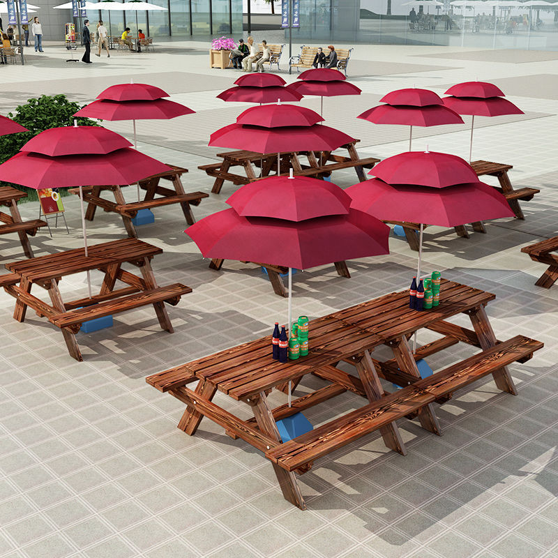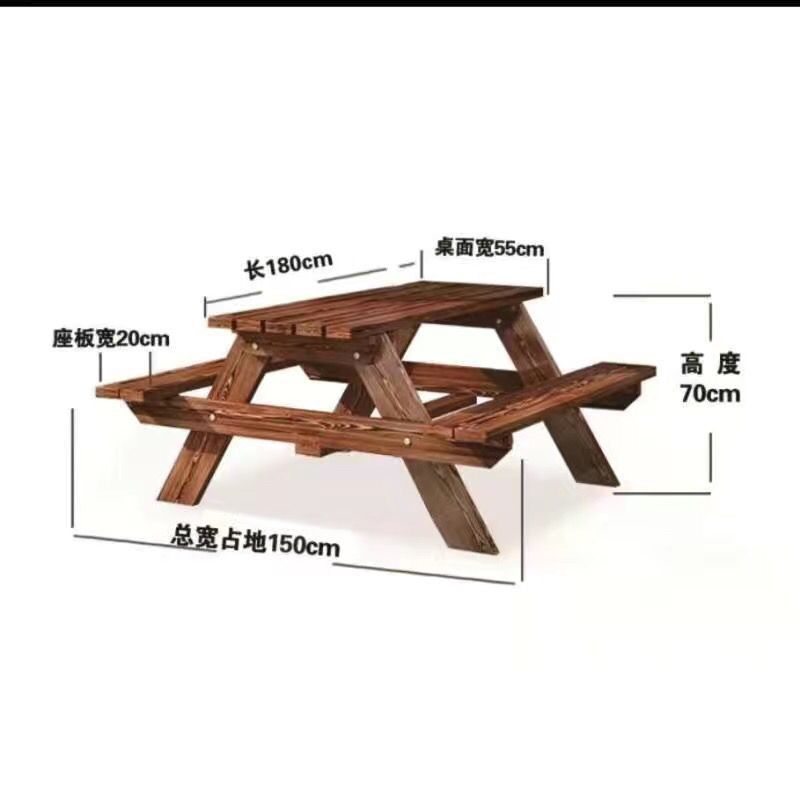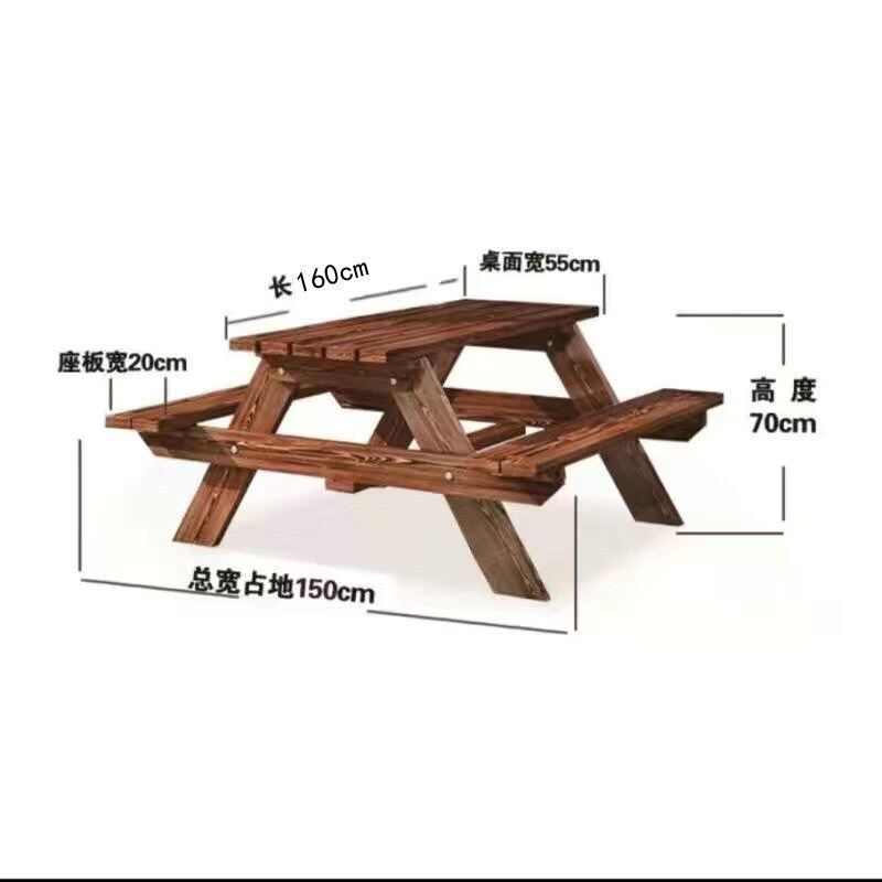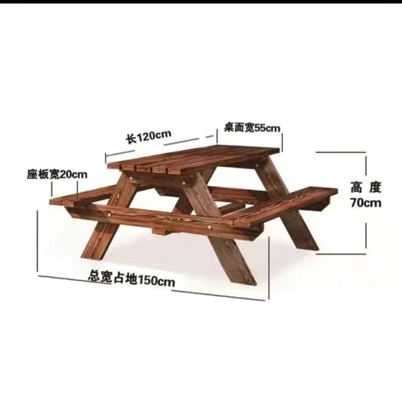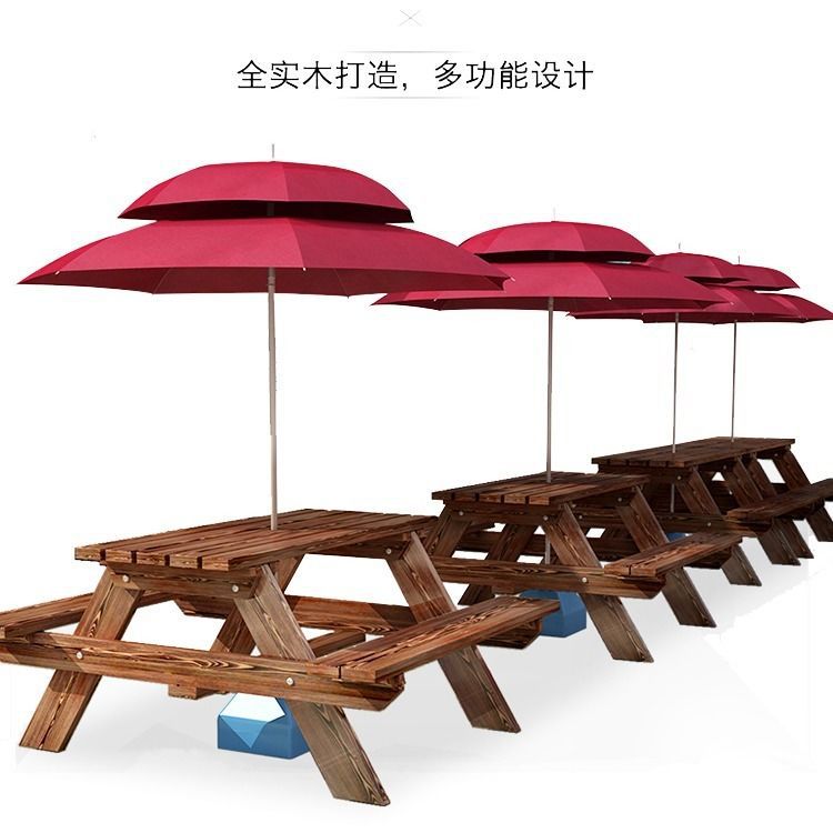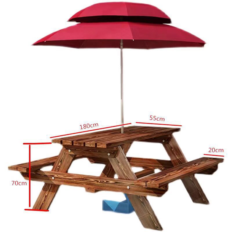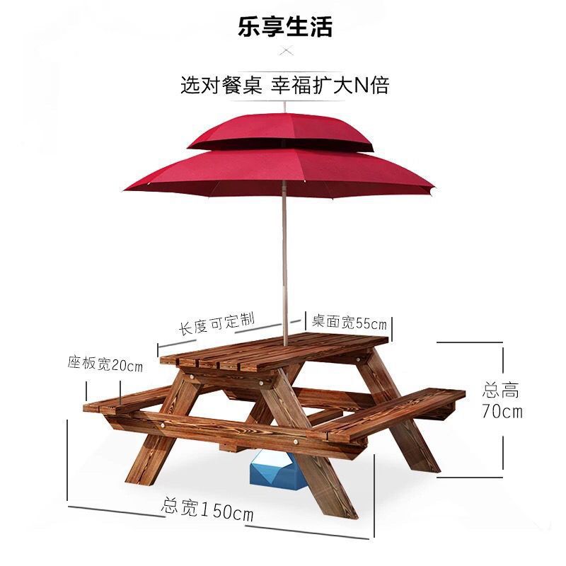 Z 야외 부식 방지 탄화 테이블 및 의자 레저 테이블 및 의자 조합 발코니 야외 테이블 및 의자 우산 공원 단단한 나무 결합 식사 L스토어 가기