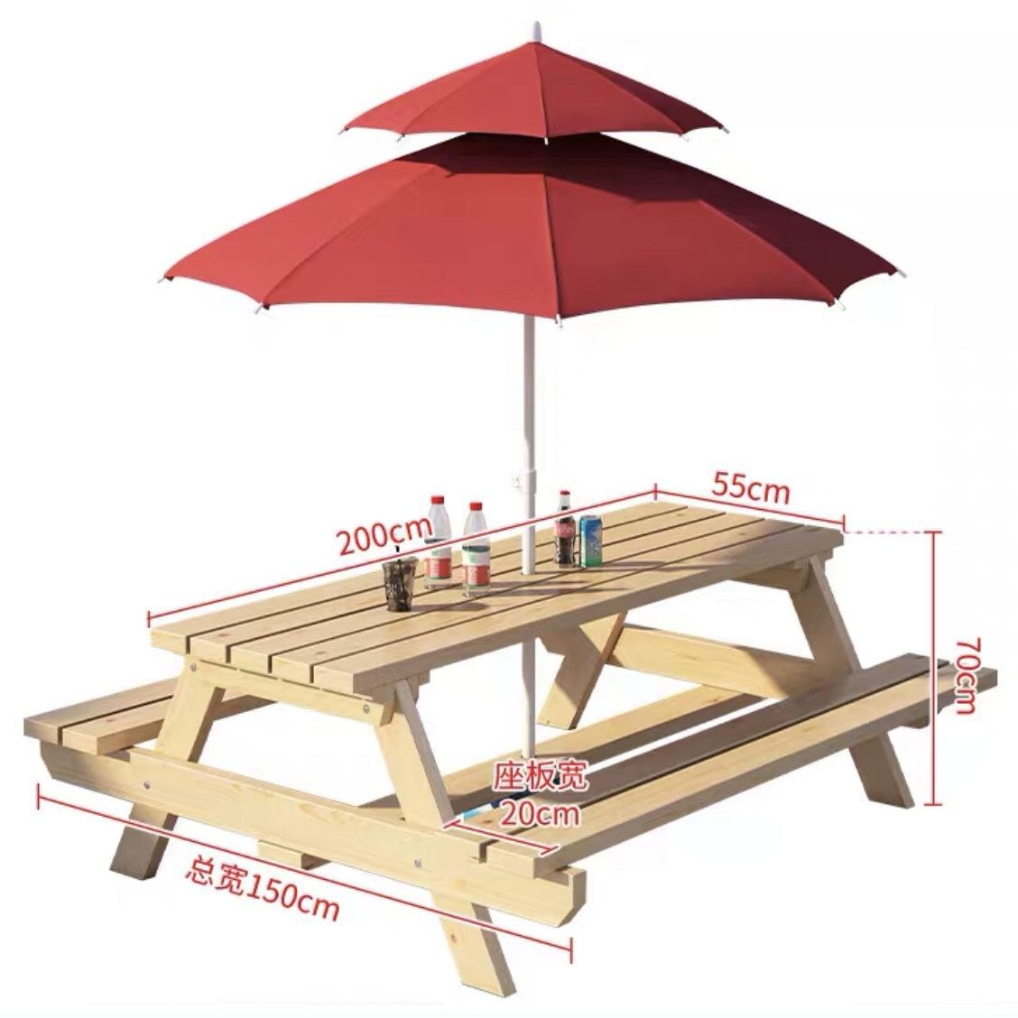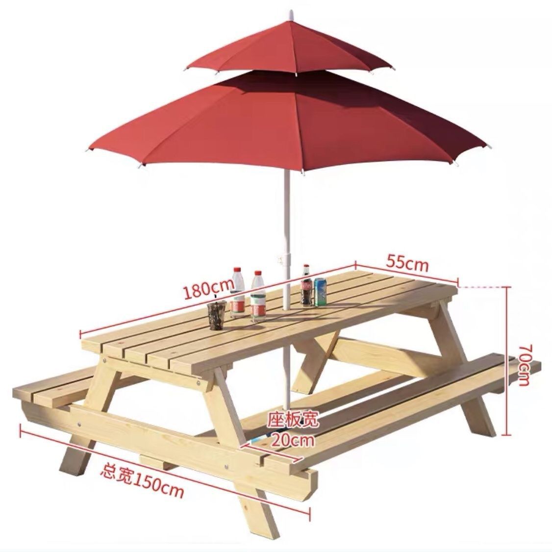 Z 야외 부식 방지 탄화 테이블 및 의자 레저 테이블 및 의자 조합 발코니 야외 테이블 및 의자 우산 공원 단단한 나무 결합 식사 L