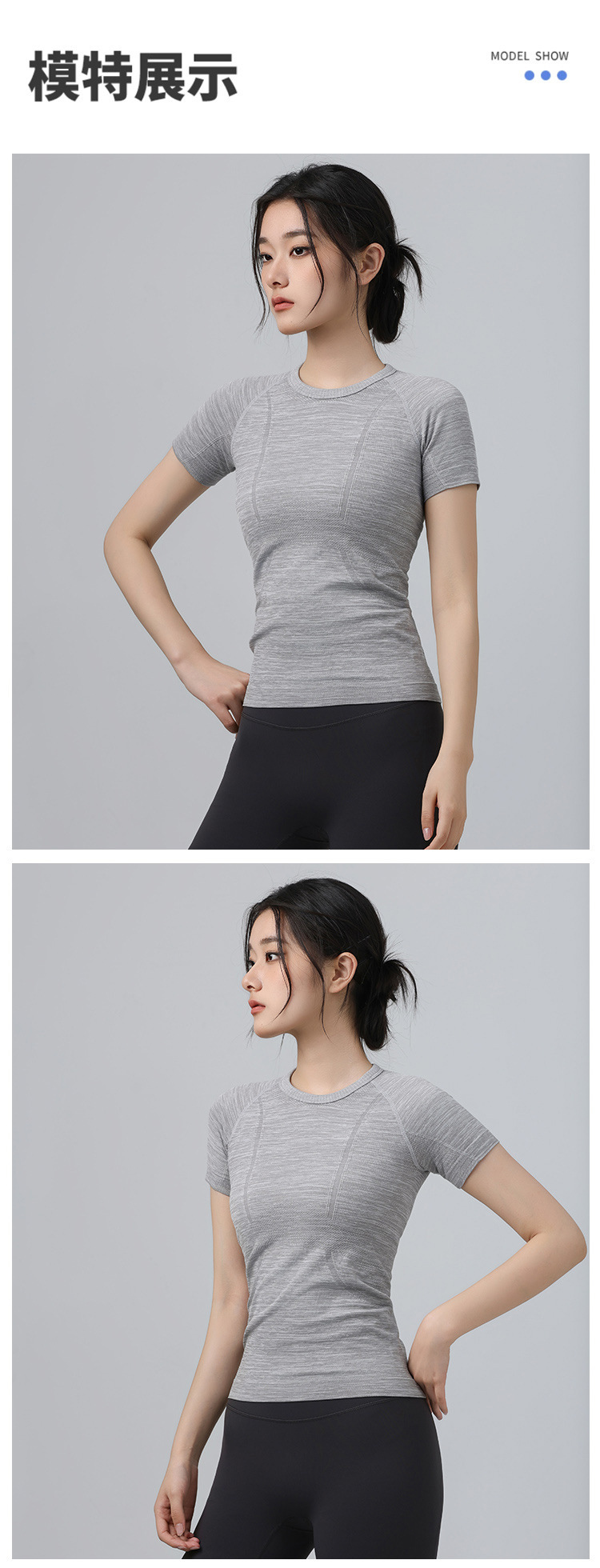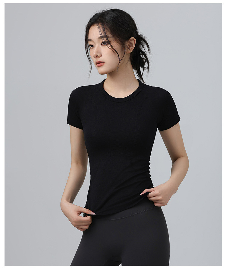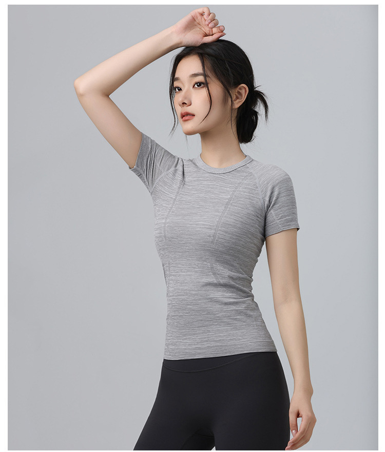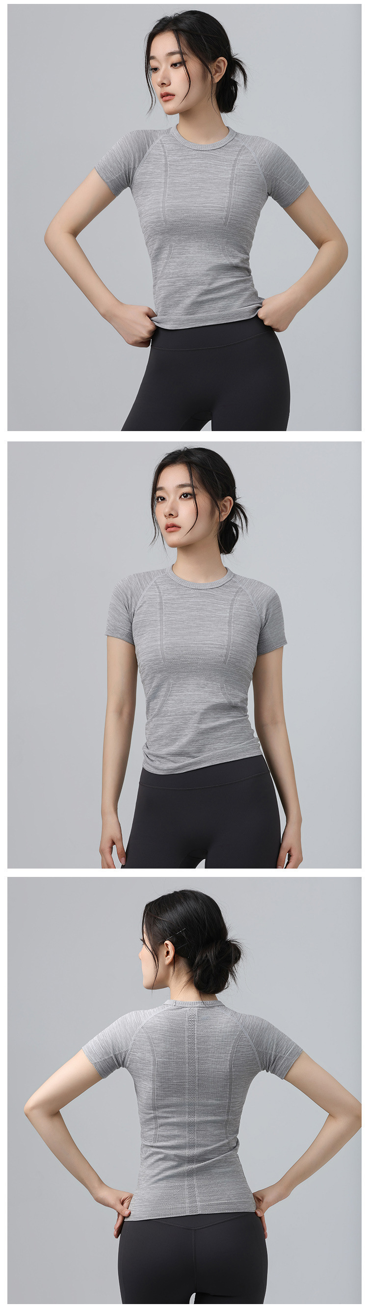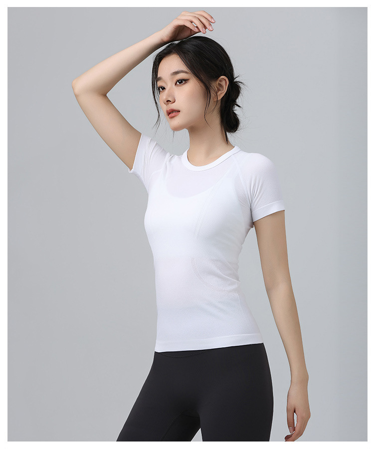 여름 꽉 슬림 요가 옷 반팔 둥근 목 빠른 건조 통기성 달리기 스포츠 티셔츠 스트레치 필라테스 탑