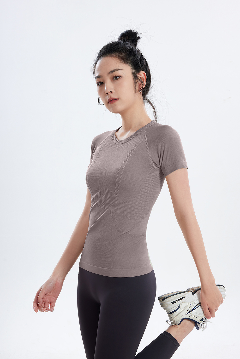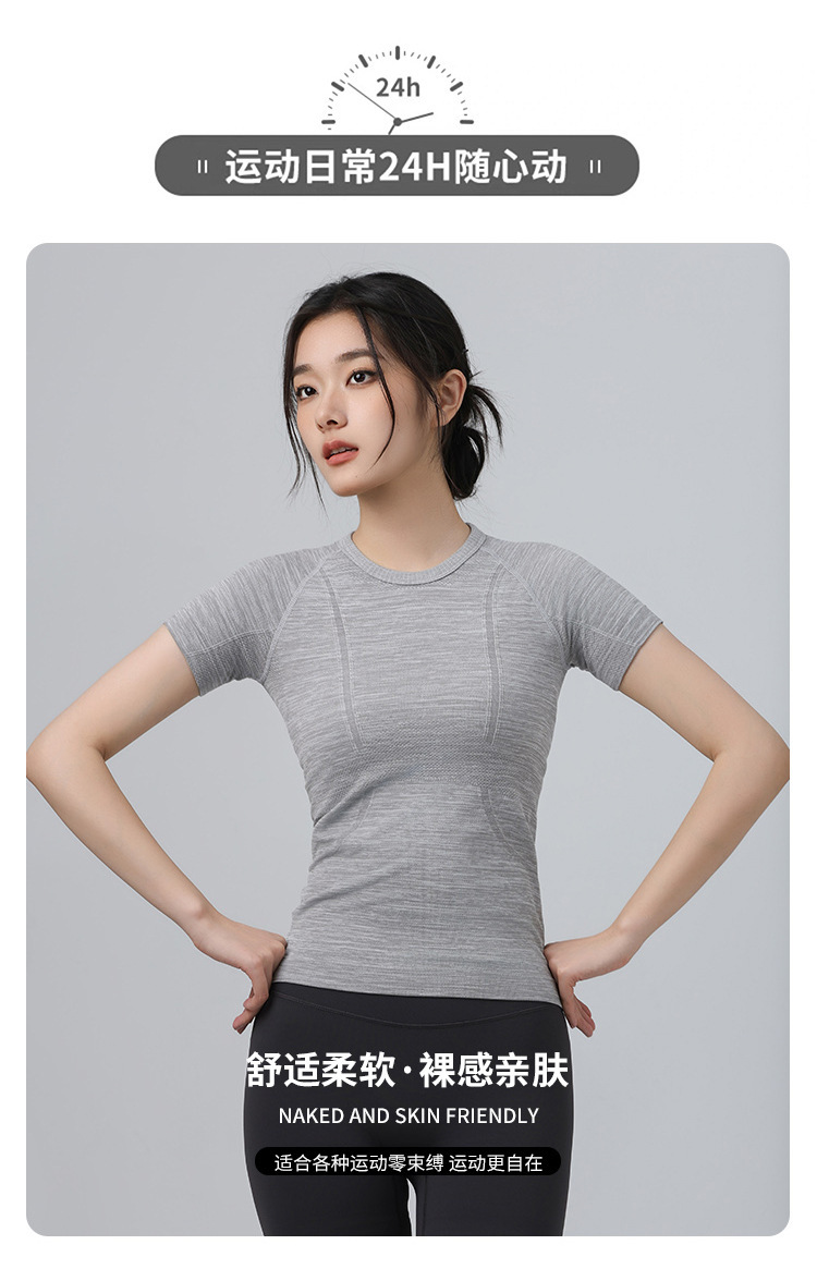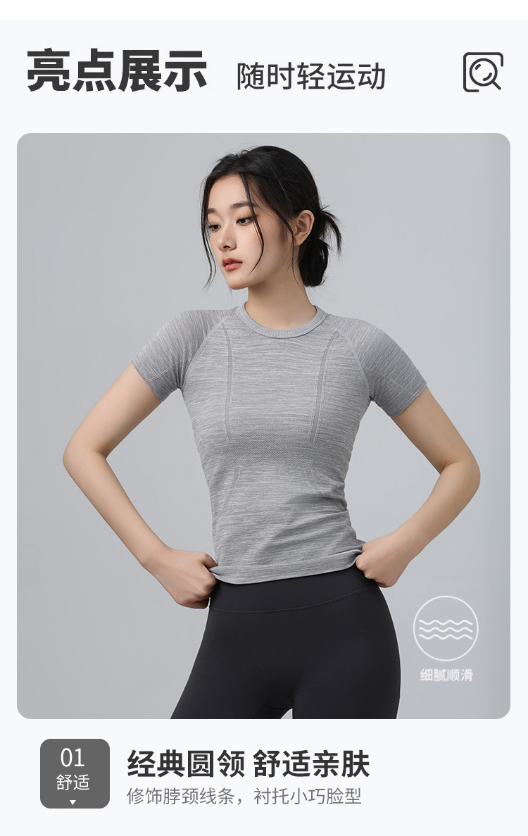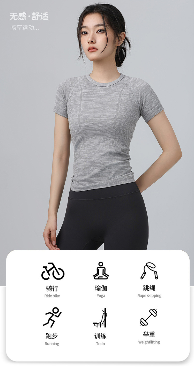여름 꽉 슬림 요가 옷 반팔 둥근 목 빠른 건조 통기성 달리기 스포츠 티셔츠 스트레치 필라테스 탑