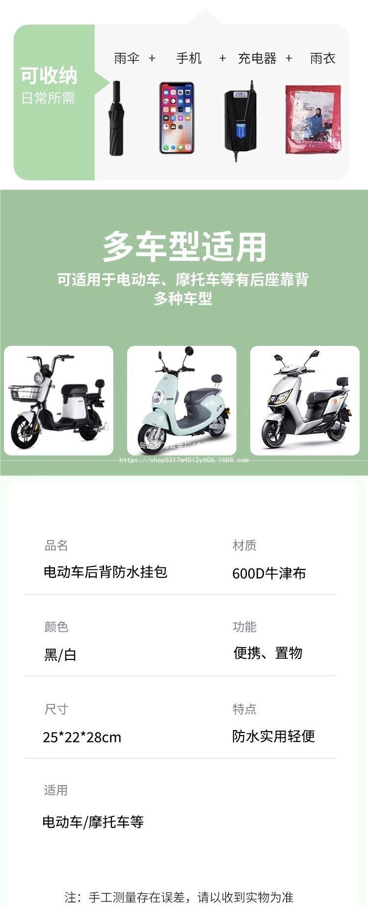 • 대용량 [뒷면 걸이백] + 헬멧 레인코트 + 화이트