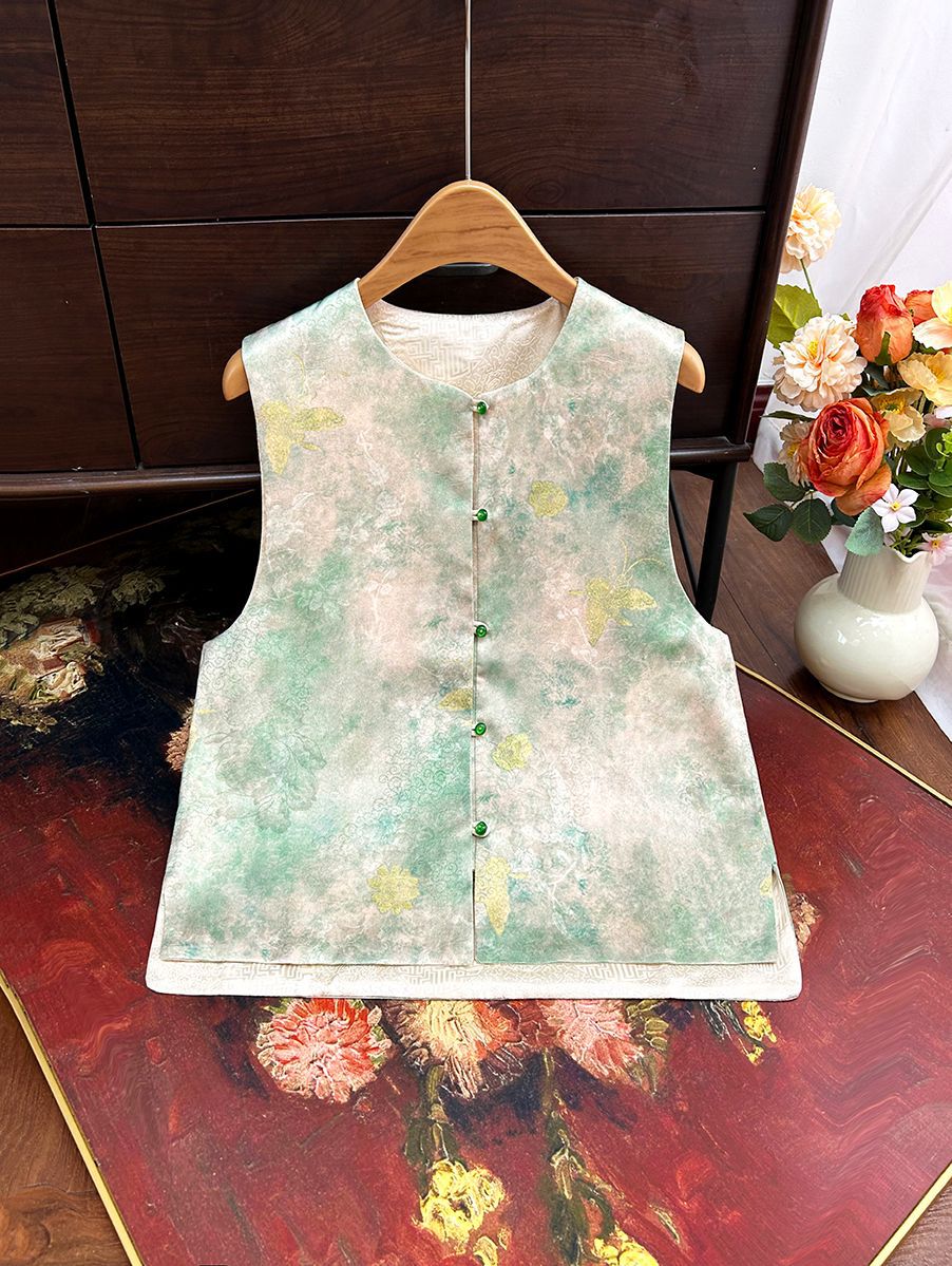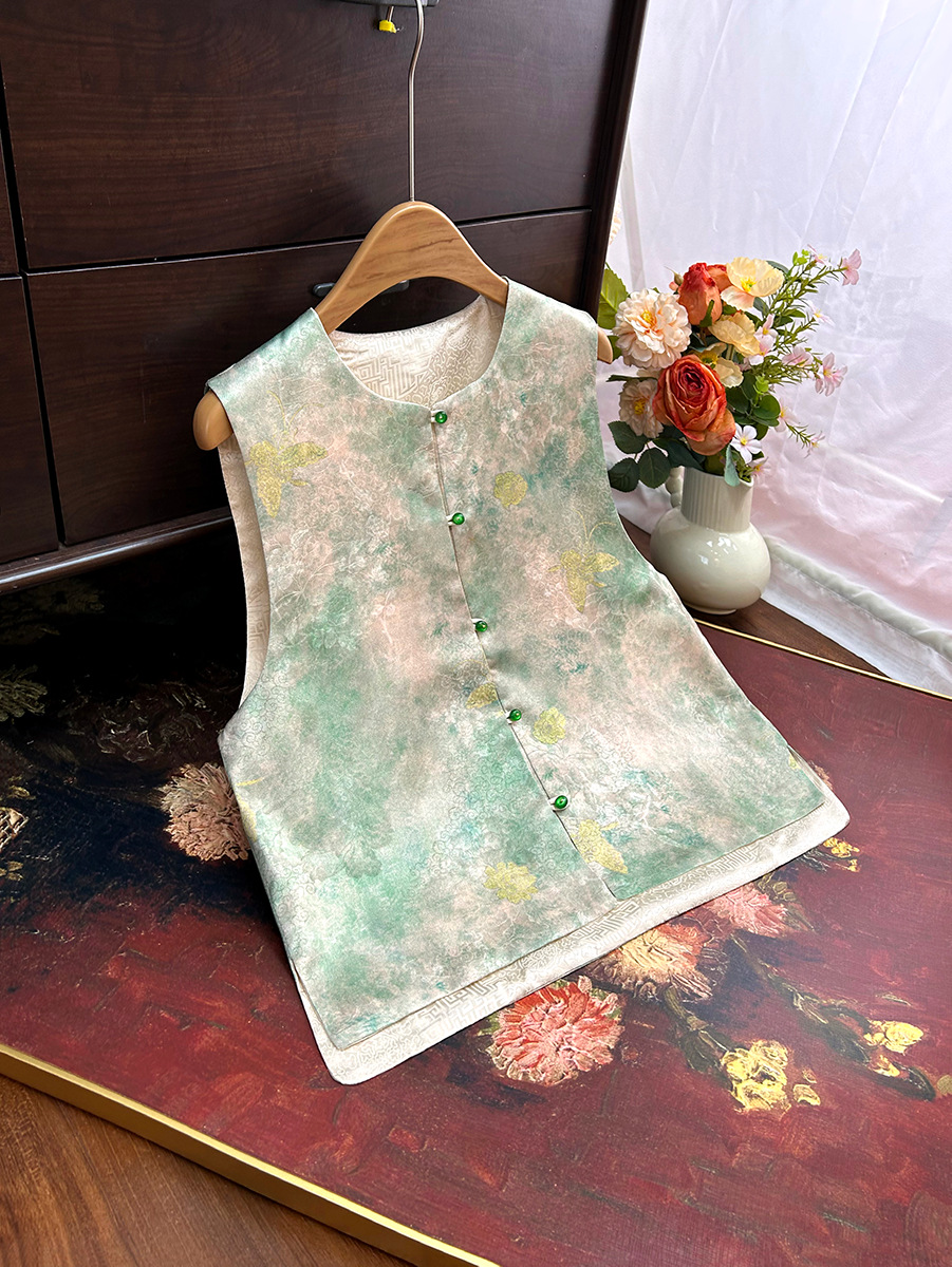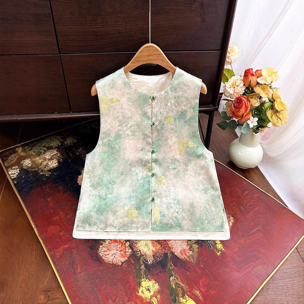 빈티지 새로운 중국 스타일 국가 스타일 염료 양면 조끼 여성 2025 봄 새로운 우아한 자카드 조끼스토어 가기