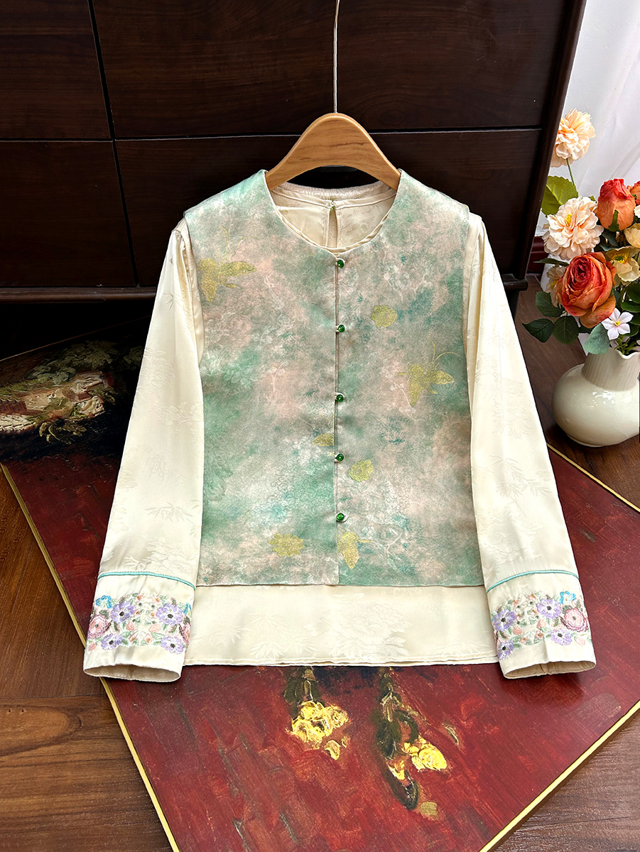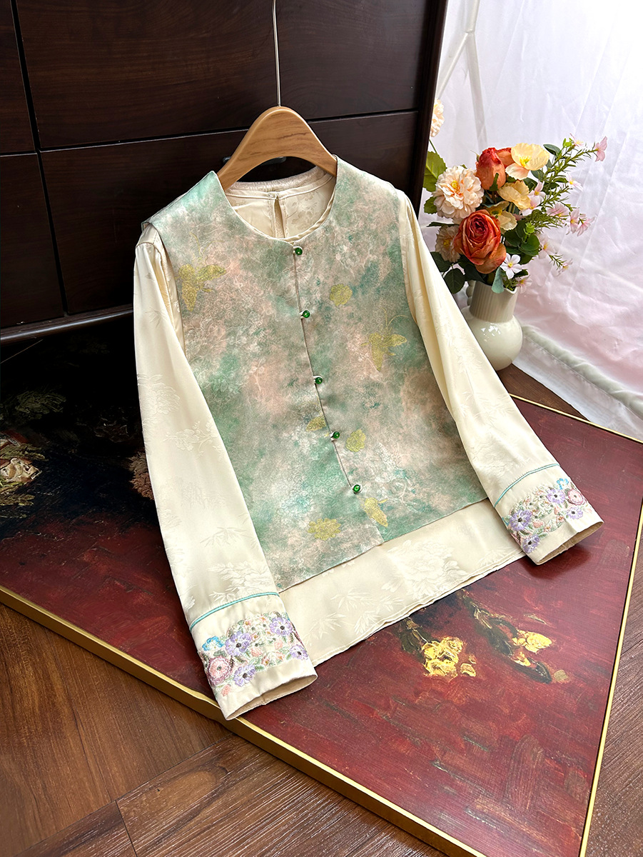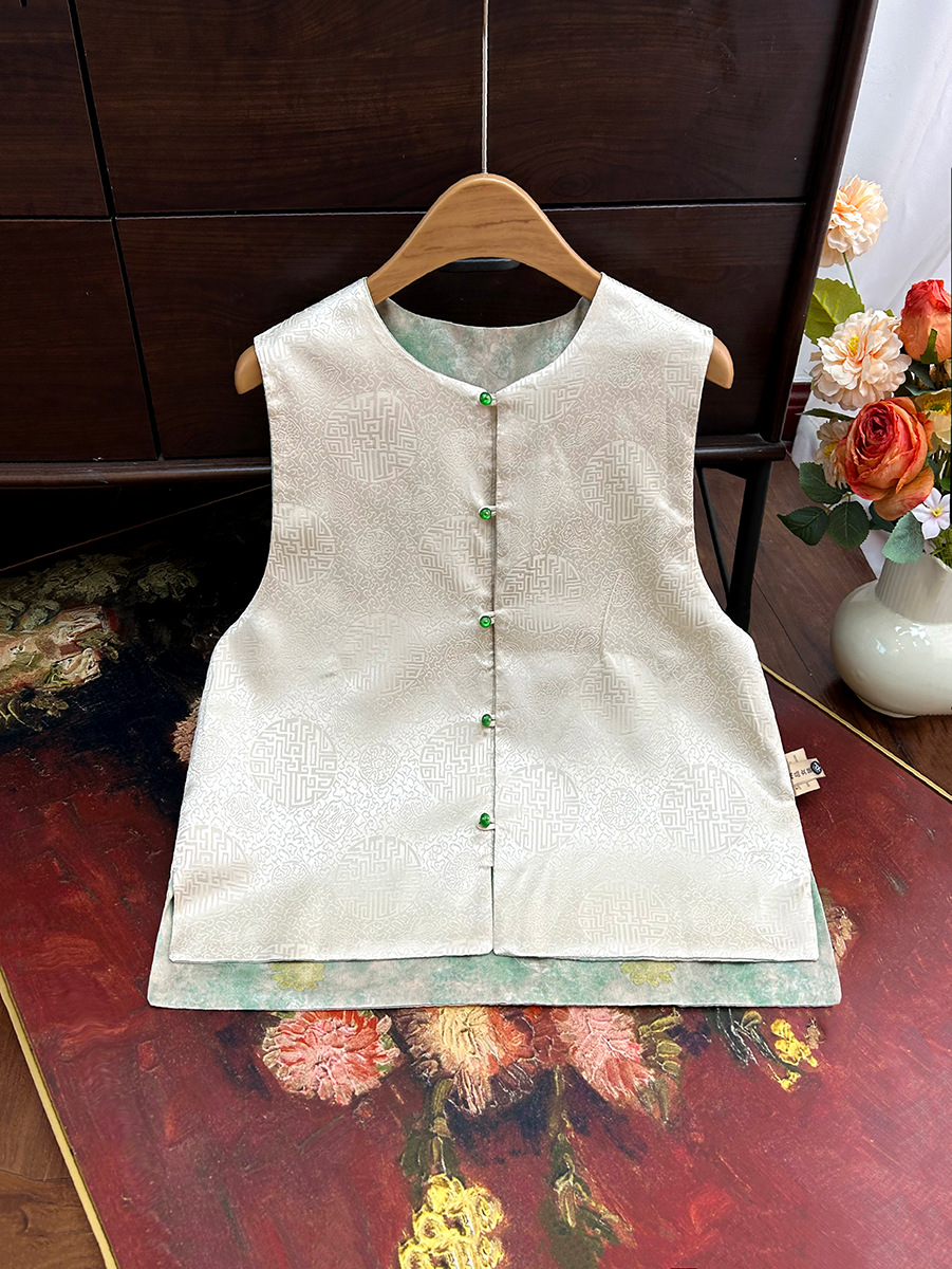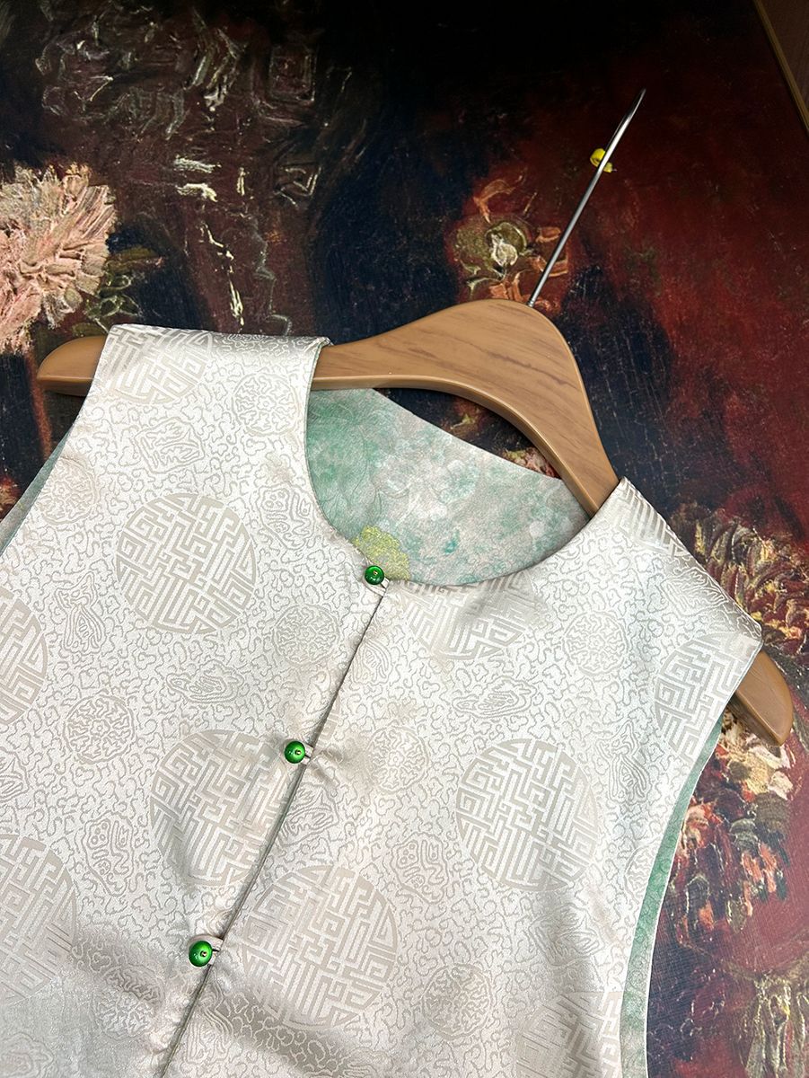 빈티지 새로운 중국 스타일 국가 스타일 염료 양면 조끼 여성 2025 봄 새로운 우아한 자카드 조끼스토어 가기