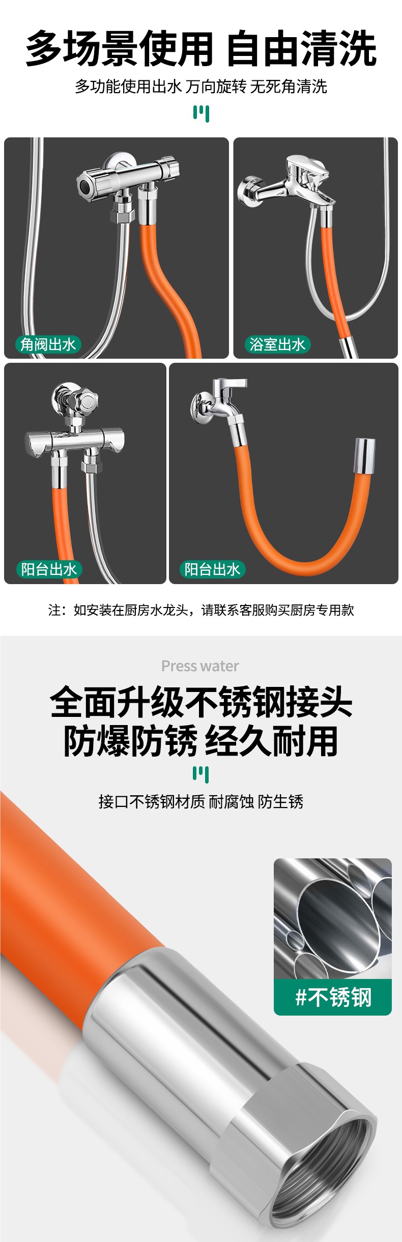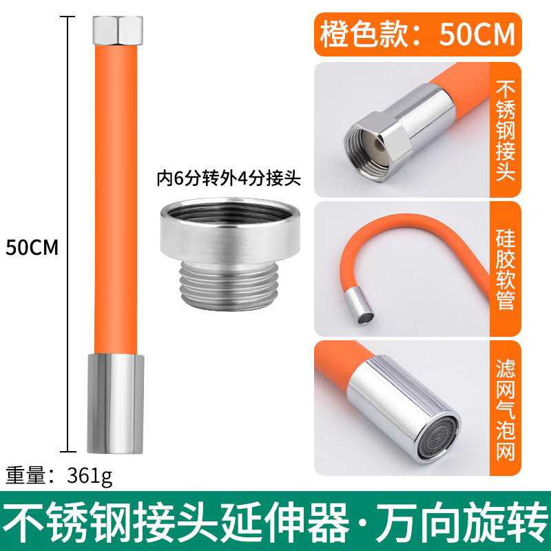 • 스테인레스 스틸 [50cm] 수전 확장기 + (변환 헤드◆주황색)