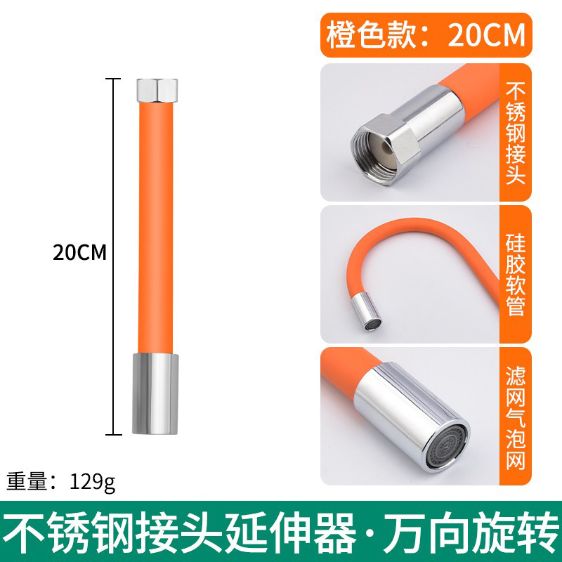 • 스테인레스 스틸 [20cm] 수전 확장기 + (변환 헤드◆주황색)