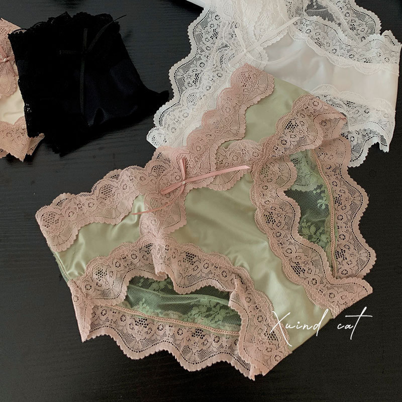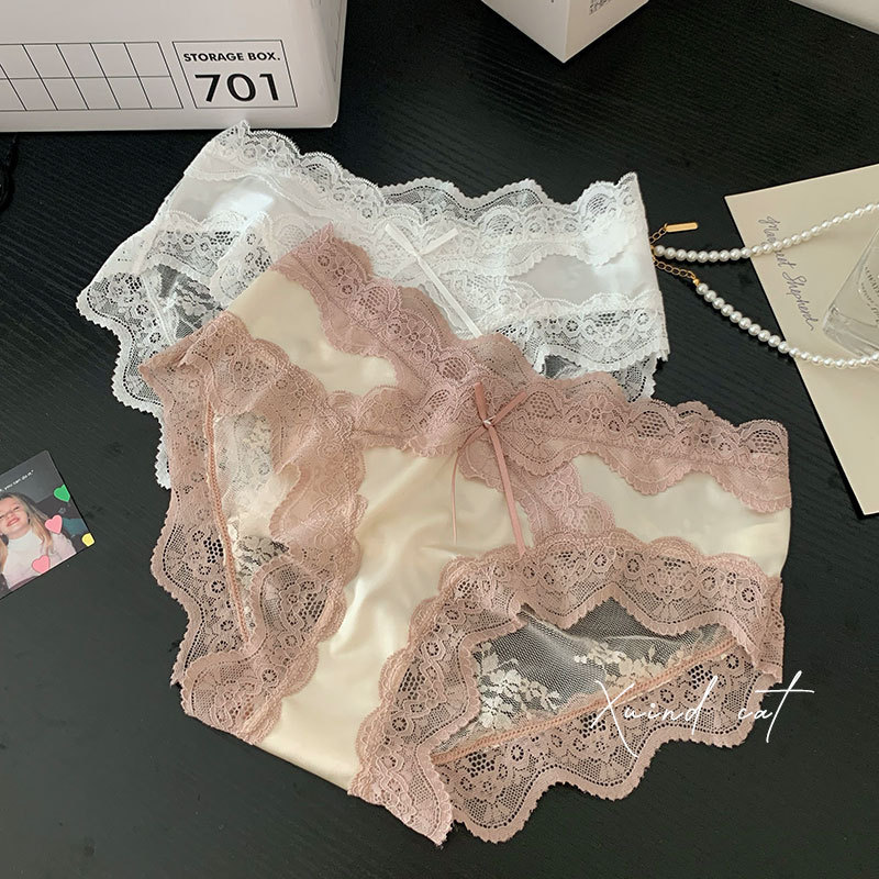 새로운 섹시한 미드 웨이스트 퓨어 코튼 레이스 엣지 통기성 비 마킹 바디 모양 경량 여성용 하이 엔드 센스 속옷 삼각형 배치
