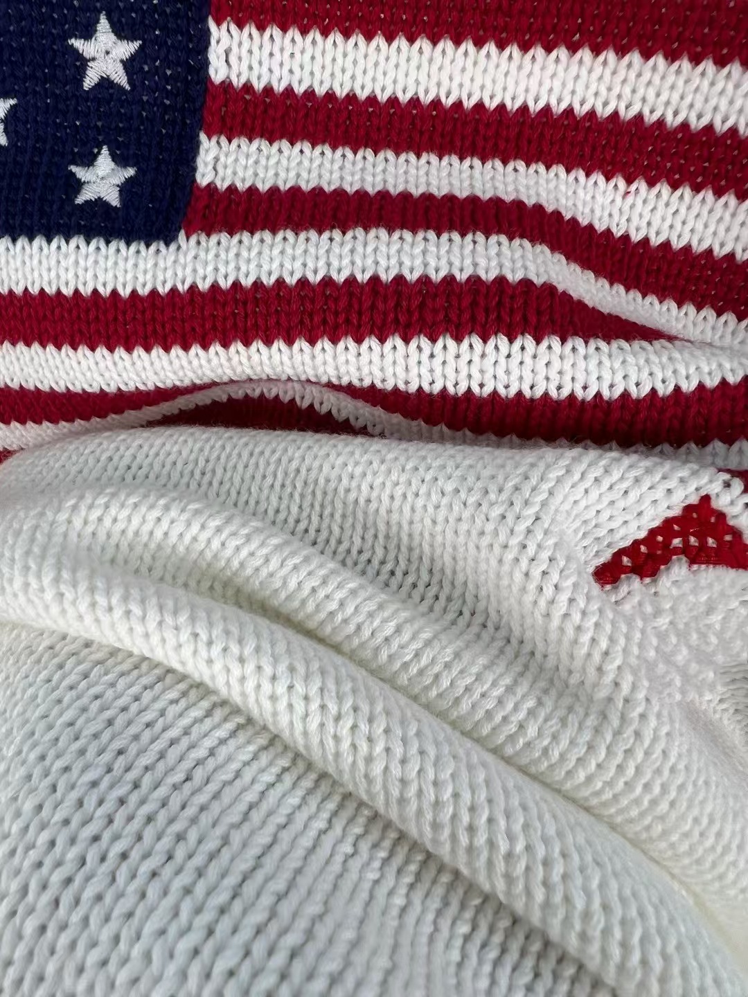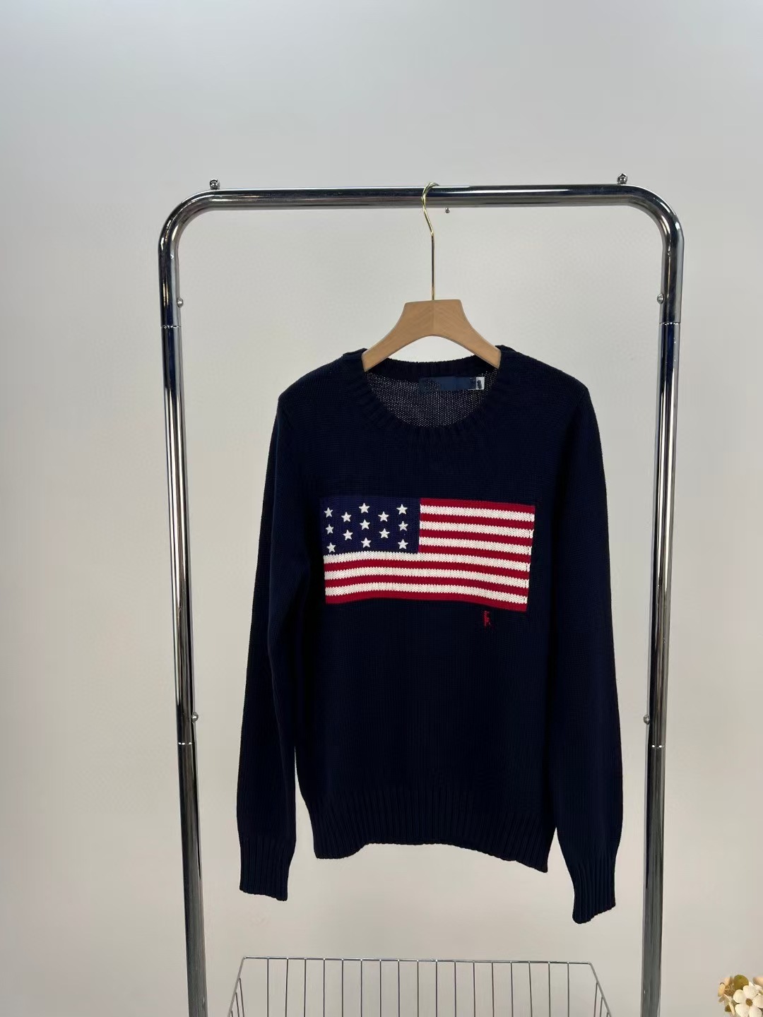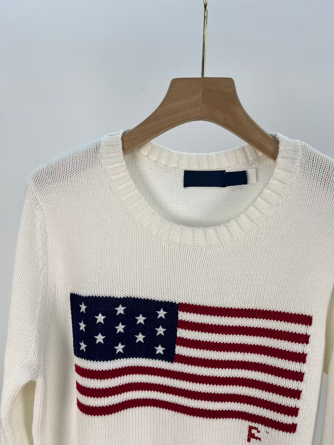 가을과 겨울 2025 새로운 RL 중공업 다섯개 별 자수 줄무늬 깃발 풀오버 라운드 넥 니트 여성용 스웨터스토어 가기