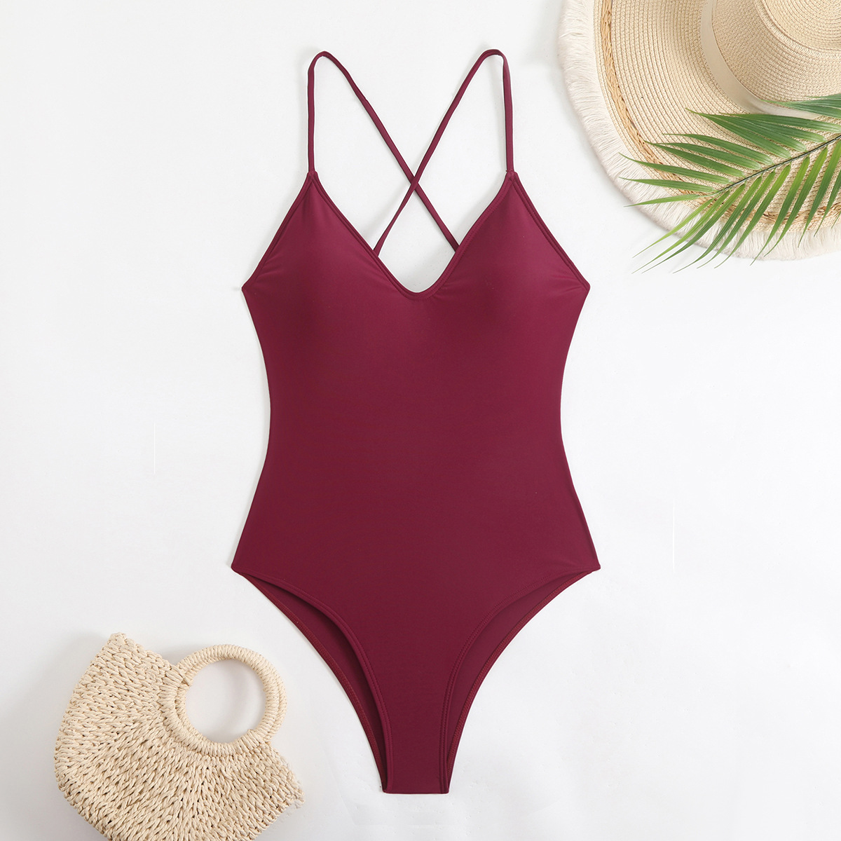 원피스 단색 수영복 유럽과 미국 국경 대외 무역 비키니 섹시한 등이없는 가슴은 레저 휴가 수영복 여성을 모았습니다.