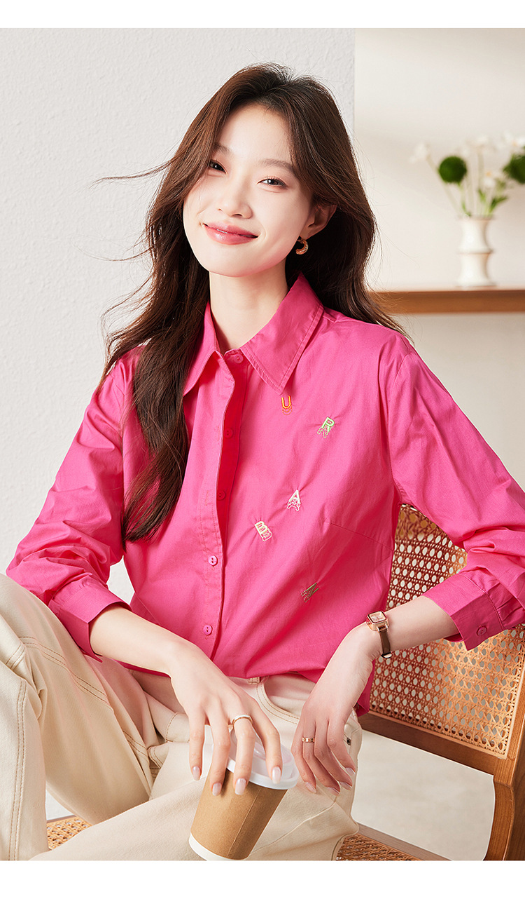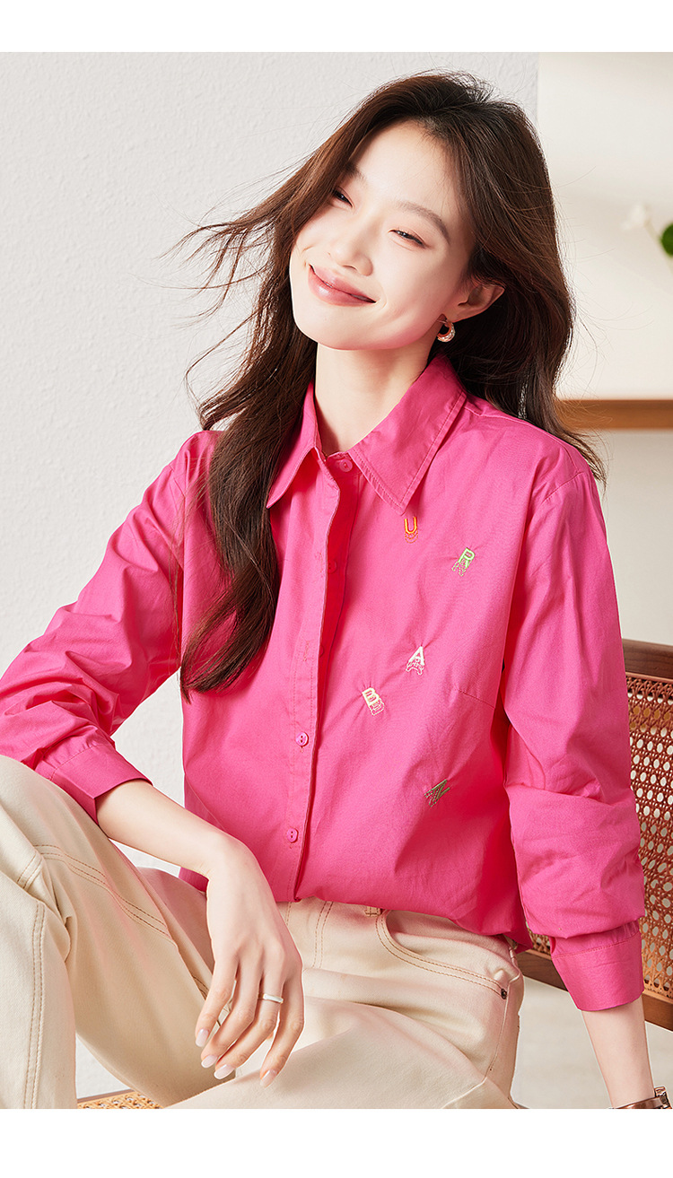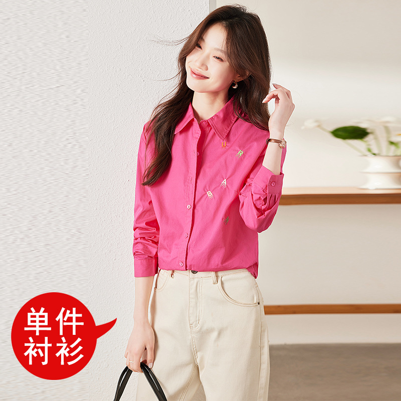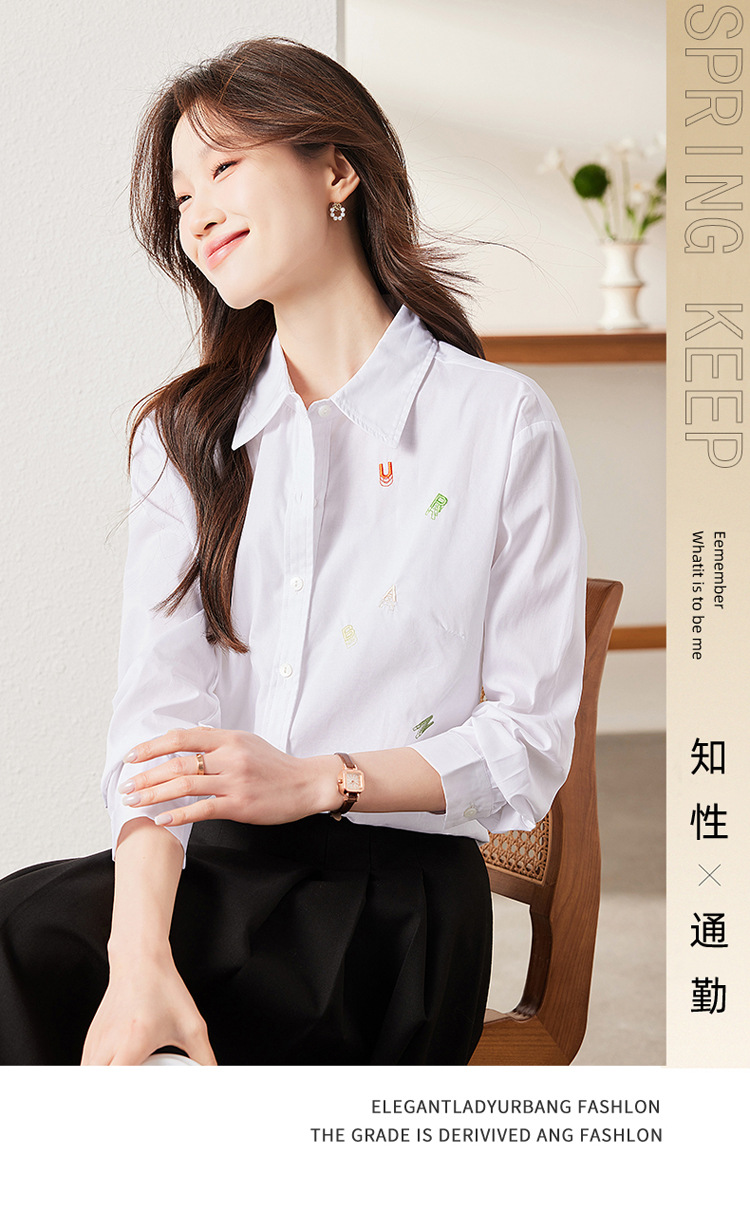 하이 퀄리티 화이트 셔츠 여성의 봄과 가을 편지 자수 디자인 틈새 셔츠 세련된 연령 감소 비즈니스 착용 여성 탑 코튼스토어 가기