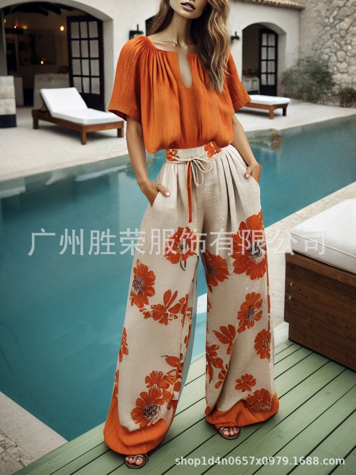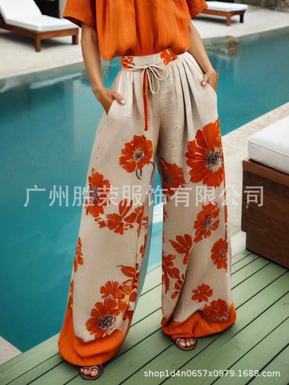 2025 새로운 국경 대외 무역 유럽 코드 여성 재고 모조 면화 및 린넨 디지털 인쇄 포켓 느슨한 넓은 다리 캐주얼 바지스토어 가기