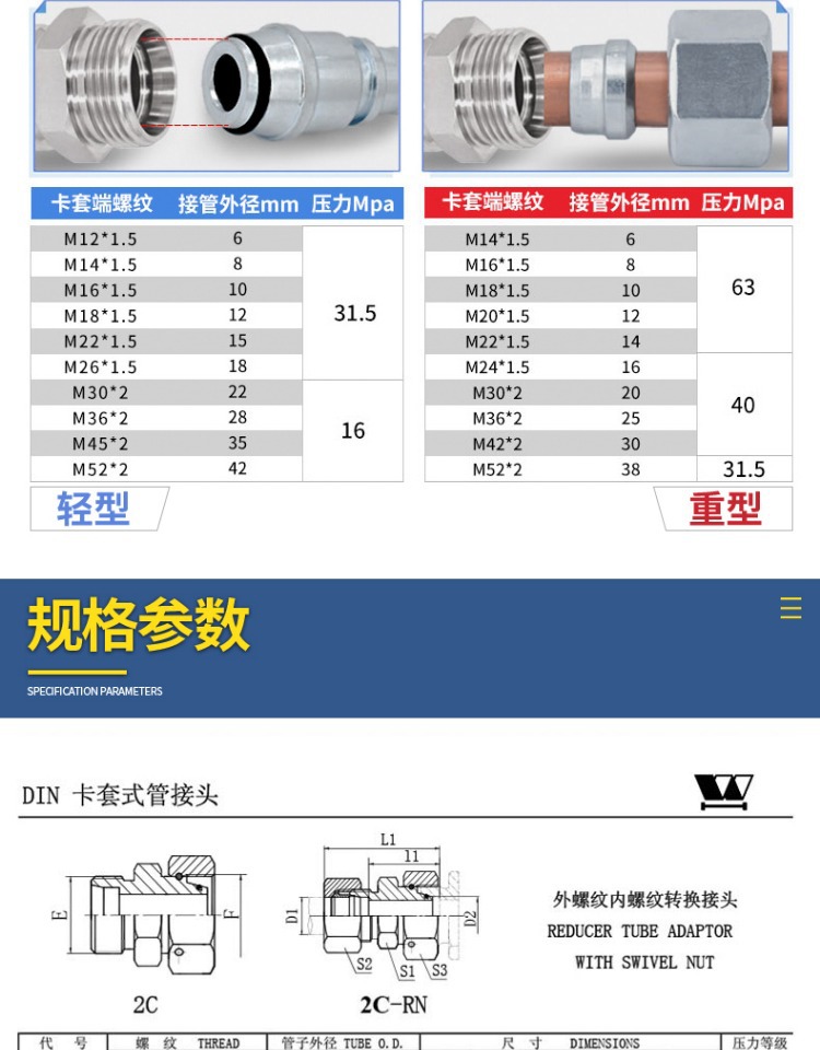 유압 튜브 오버 페룰 조인트 2C 시리즈 외부 스레드 페룰 타입 로터리 와이어 유니온 라이트 파이프 조인트스토어 가기