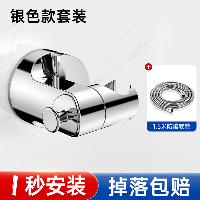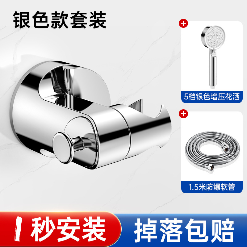 • [전기도금 실버 세트 3] 흡착컵 브라켓 + 1.5m 방폭 호스 + 5단 실버 슈퍼차저 샤워기