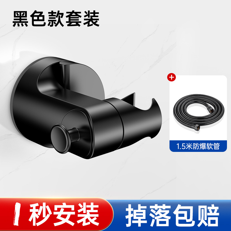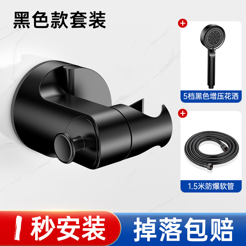 • [옵시디언 블랙 세트 3] 흡착컵 브래킷 + 1.5m 방폭 호스 + 5단 블랙 슈퍼차저 샤워 헤드