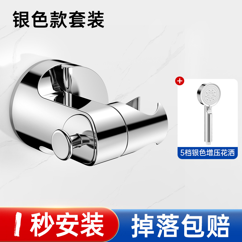 • [전기도금 실버세트 1] 흡착컵 브라켓 + 5단 실버 슈퍼차저 샤워헤드